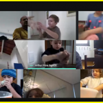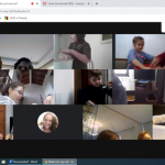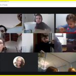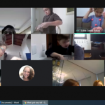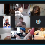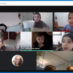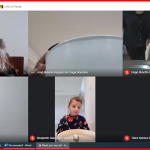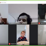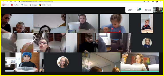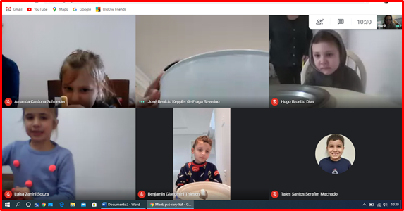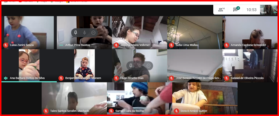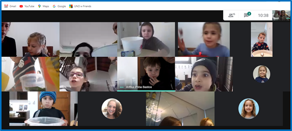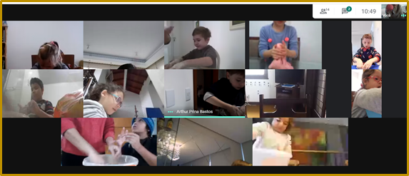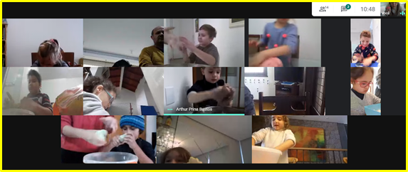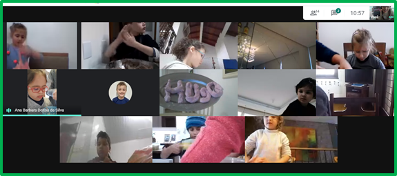 Para trabalhar o traçado da letra script minúscula, colocamos as mãos na massa. Fizemos em nossa videoconferência, massinha de modelar caseira.