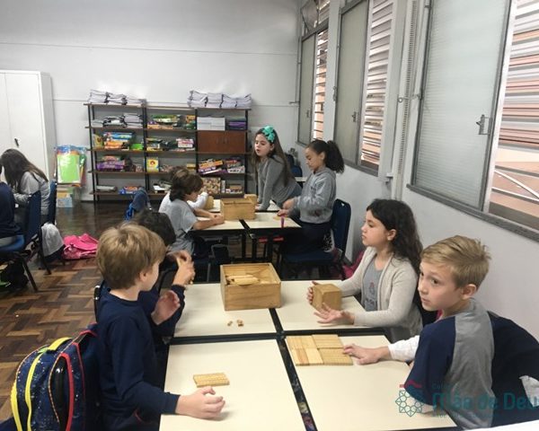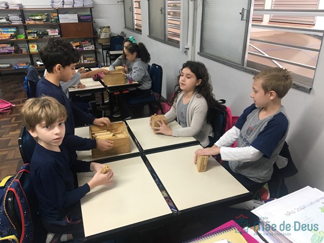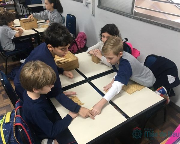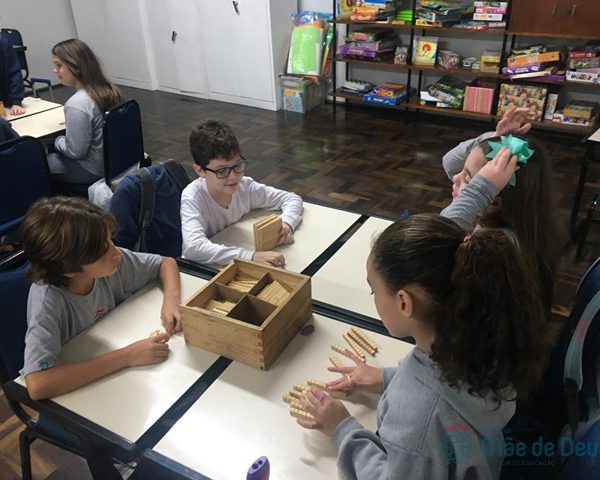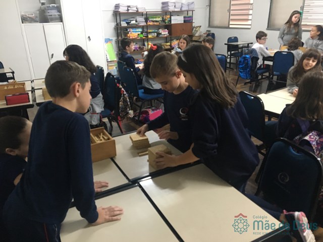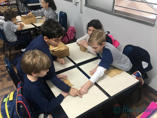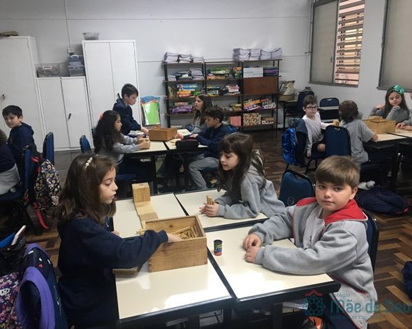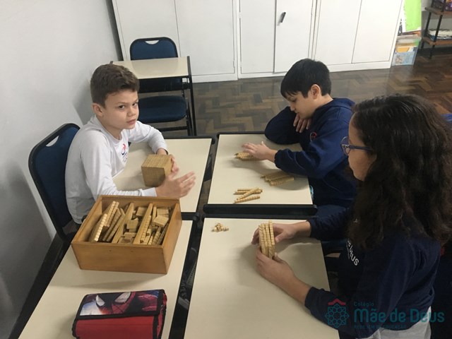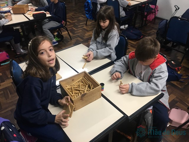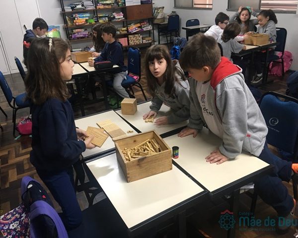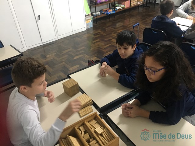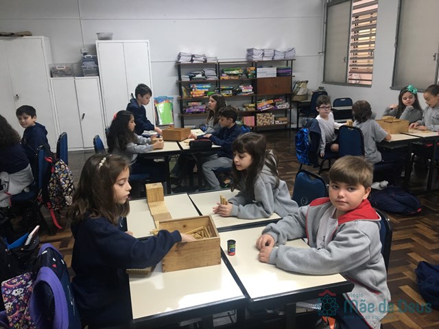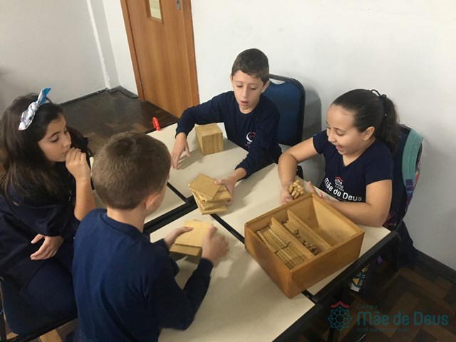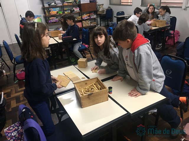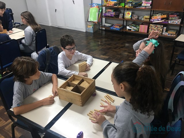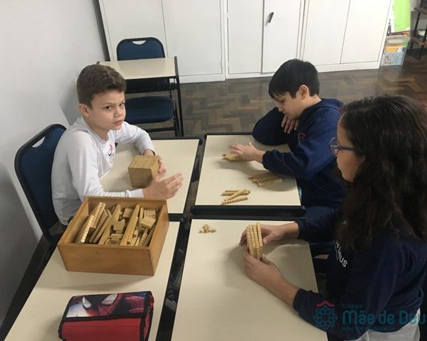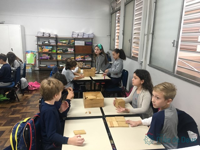 A turma 31 teve uma manhã de muita prática e ludicidade. Ao introduzir a Unidade de Milhar os alunos puderam trabalhar com o material dourado, realizando, na prática, os cálculos propostos.