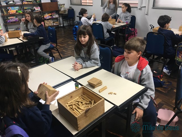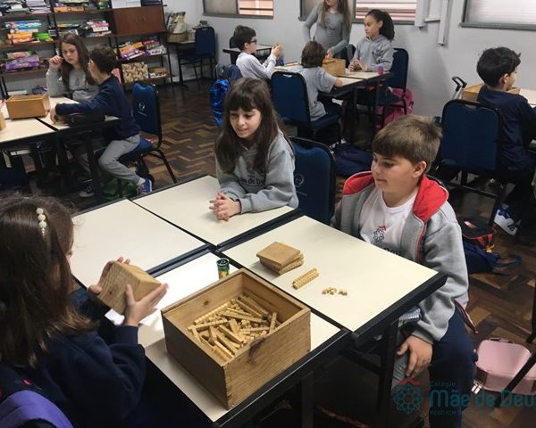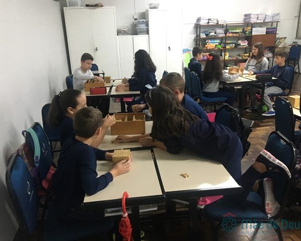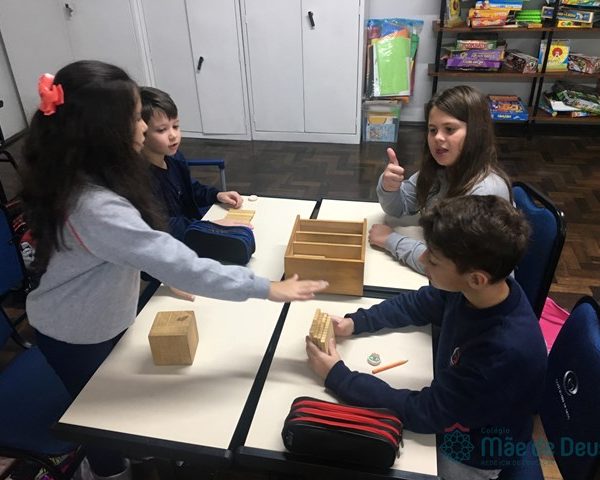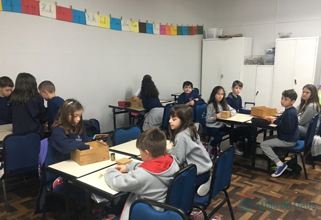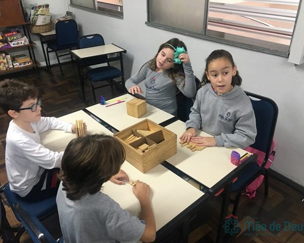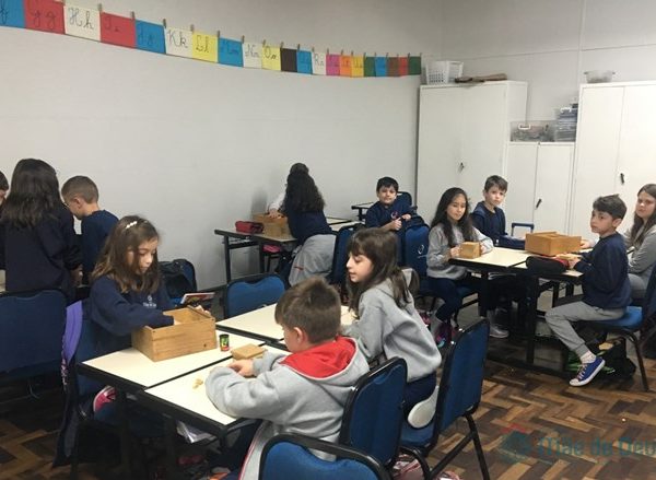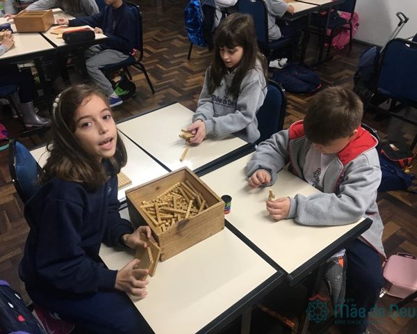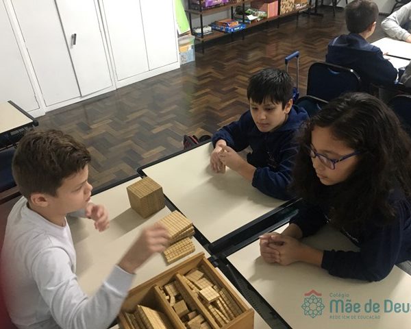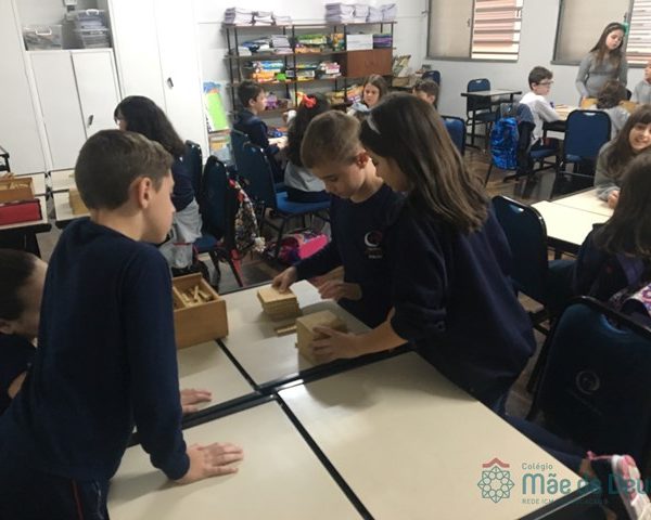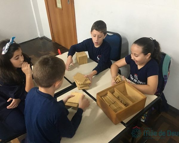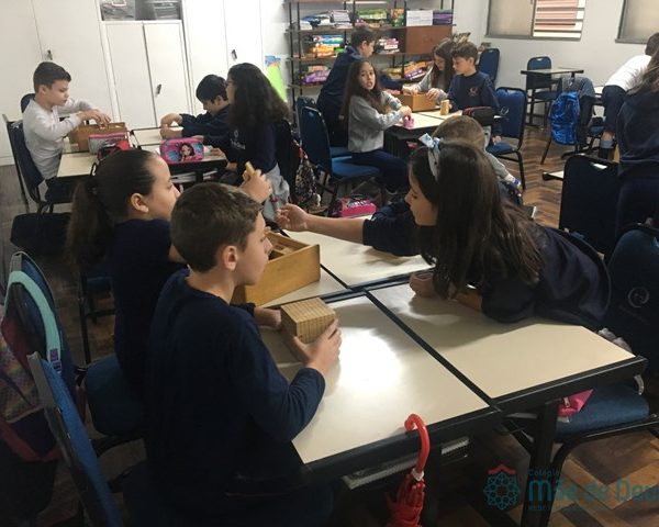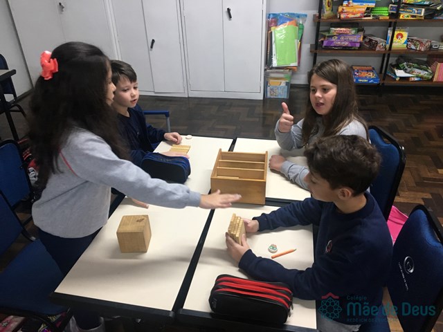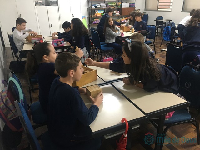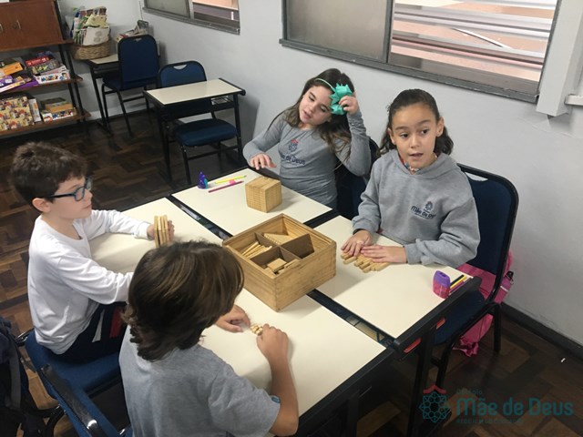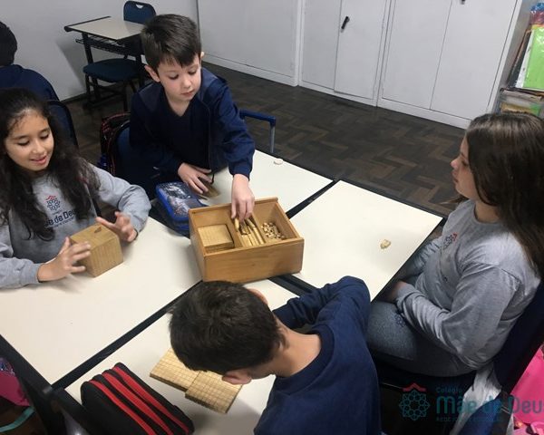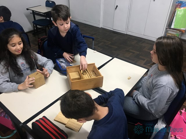 A turma 31 teve uma manhã de muita prática e ludicidade. Ao introduzir a Unidade de Milhar os alunos puderam trabalhar com o material dourado, realizando, na prática, os cálculos propostos.