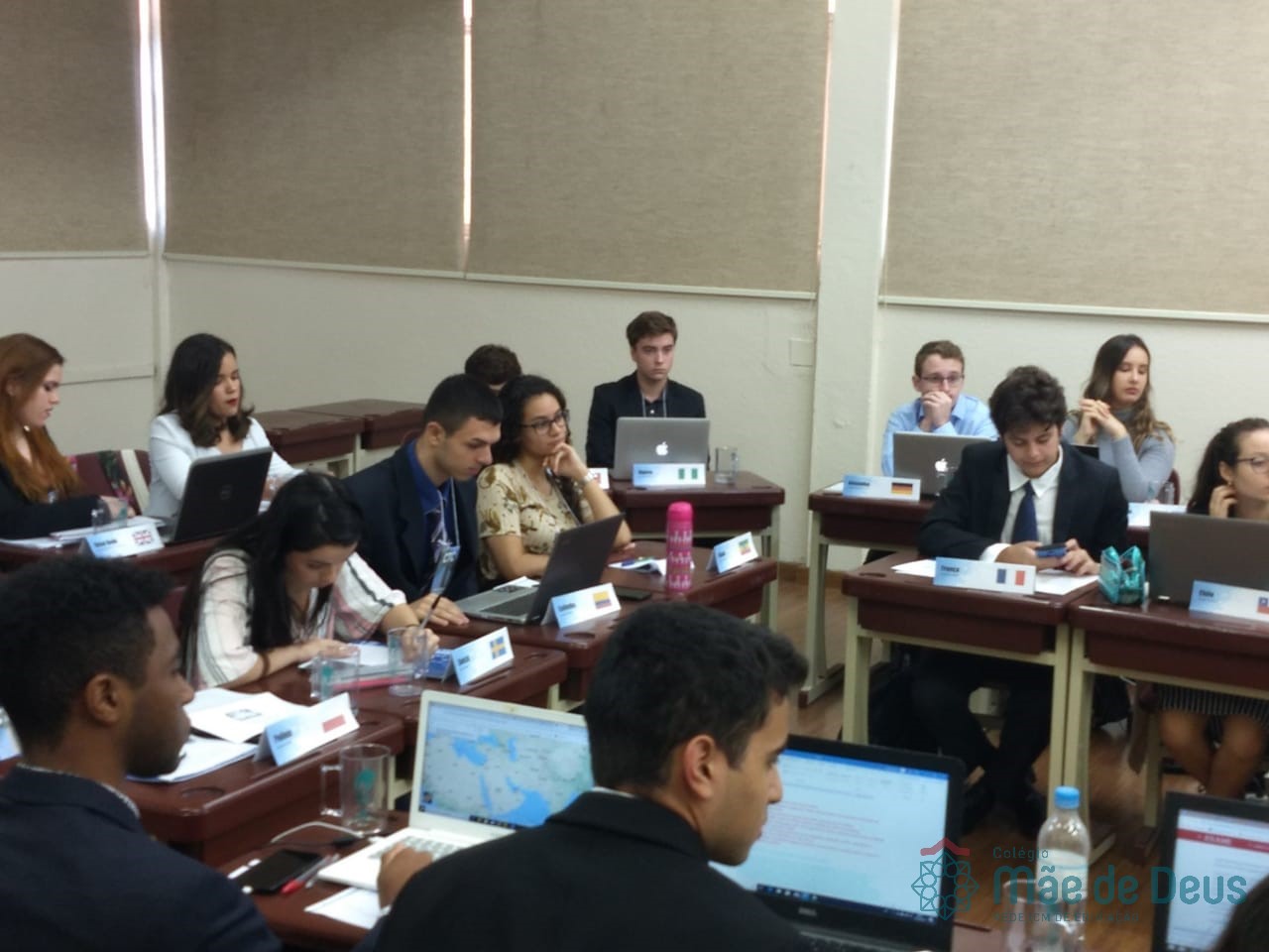 Ao final dos dois dias, os alunos aprovaram resoluções nos moldes dos respectivos organismos internacionais. O principal objetivo foi buscar soluções para às temáticas propostas. O aluno Henrique Dutra e Silva da turma 201 foi destaque em seu comitê.