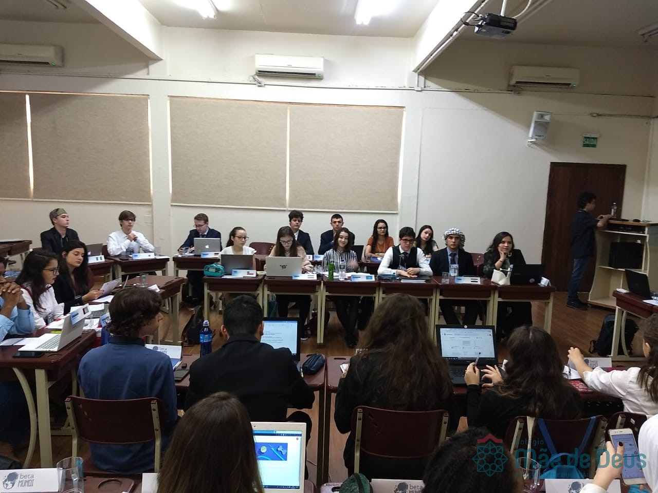 Os alunos do Ensino Médio (membros do NEA – RI) participaram do II Beta Mundi no colégio Leonardo da Vinci Beta no último final de semana (15 e 16/06). Os alunos simularam os seguintes comitês: