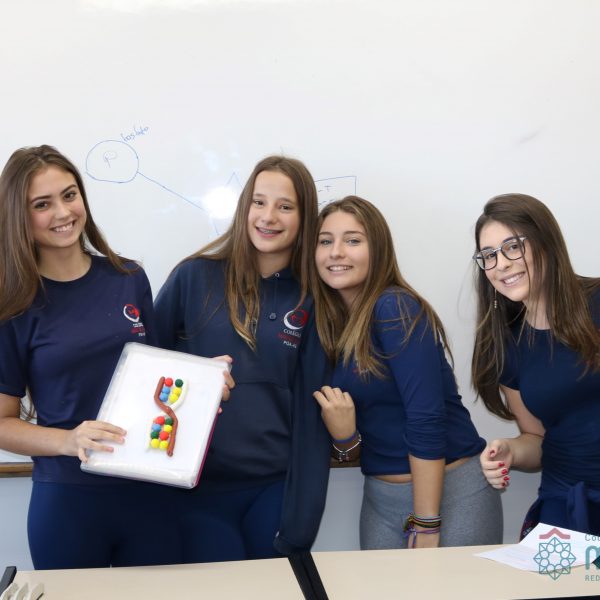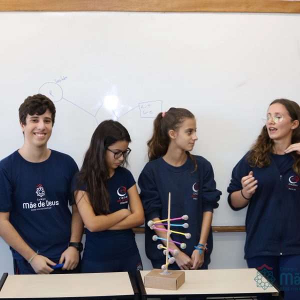Nos dias 17 e 18 do mês de abril, os alunos das turmas 91 e 92, orientados pela professora Carolina Bossle, realizaram o projeto pedagógico: “Réplica de uma molécula de DNA”. O projeto teve como objetivo possibilitar que o conhecimento, fosse mediado a partir de uma prática que instiga os estudantes a criar e a participar ativamente do seu processo de aprendizagem.