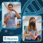 As turmas 91 e 92, do 9º Ano do Ensino Fundamental, elaboraram durante a aula de biologia, um protótipo de uma molécula de DNA em 3D, com materiais reciclados ou comestíveis.
