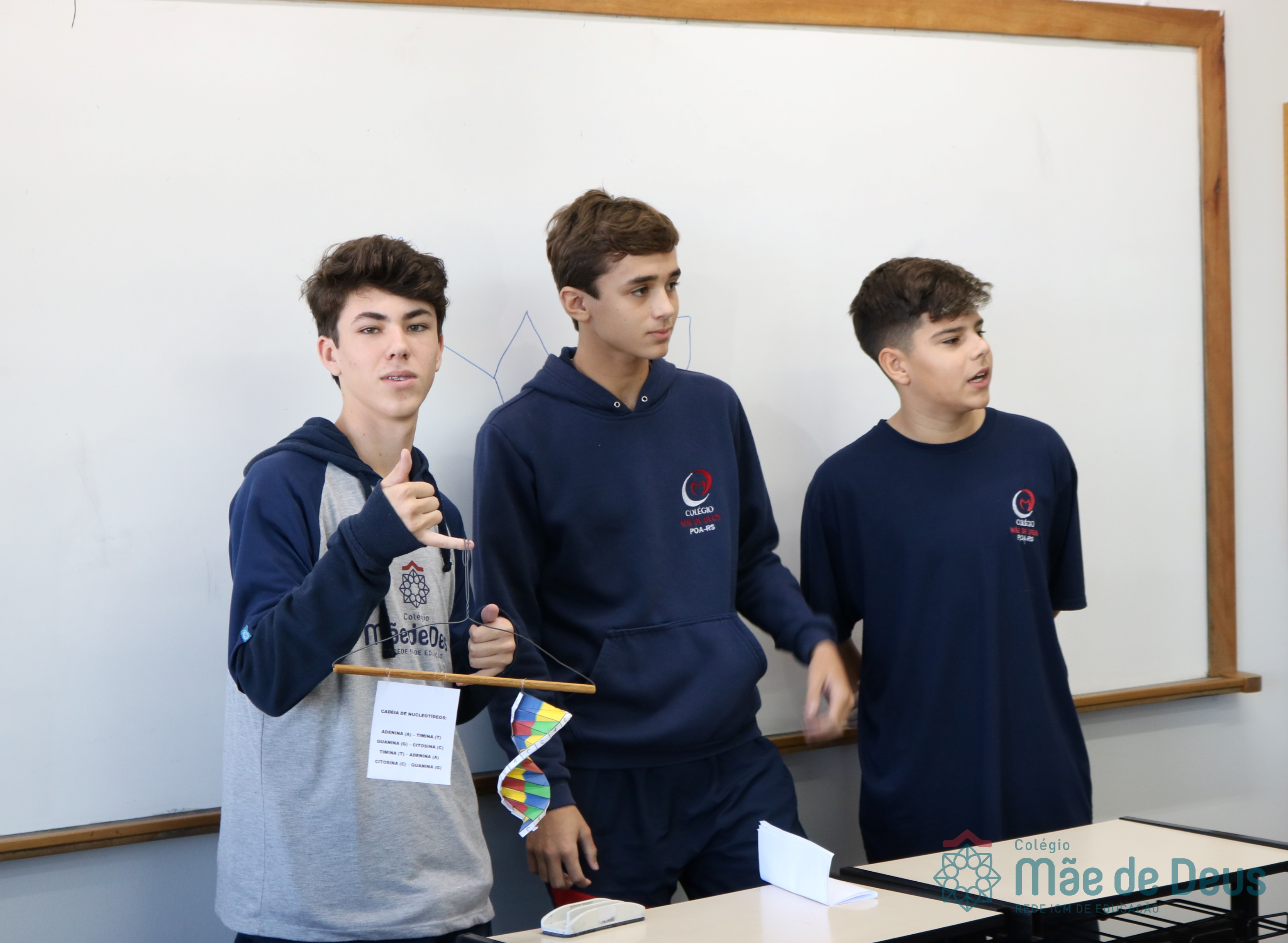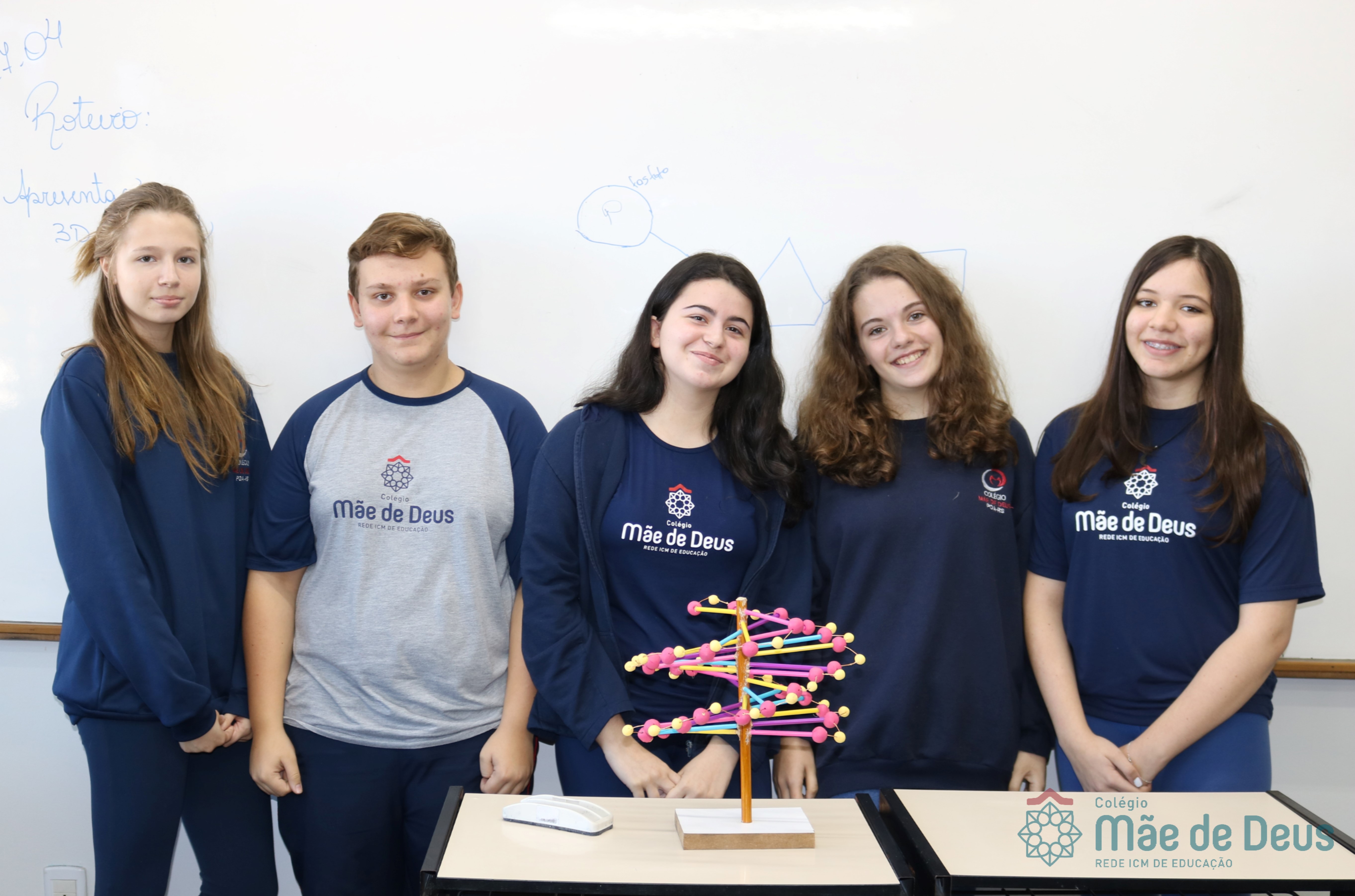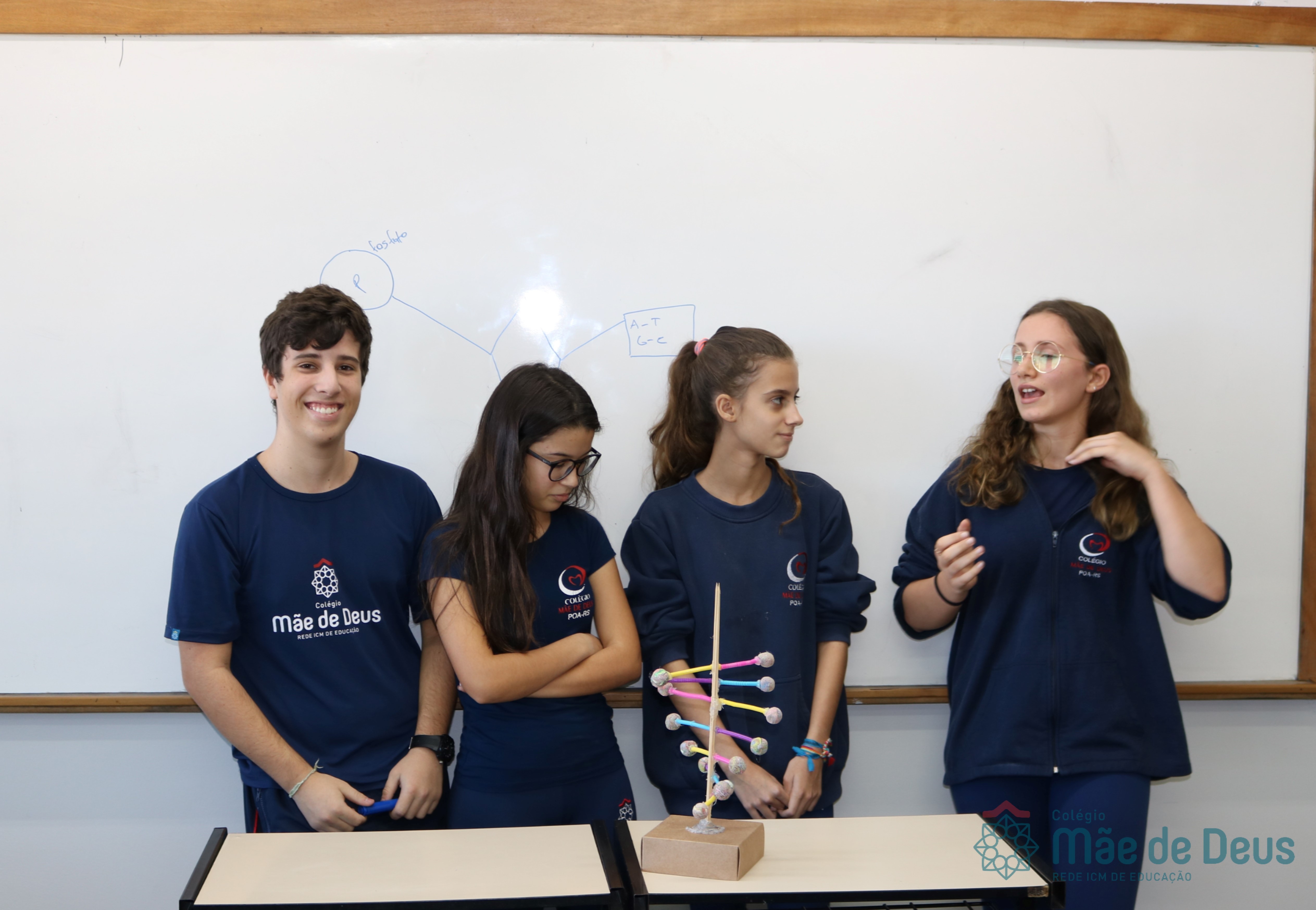 Nos dias 17 e 18 do mês de abril, os alunos das turmas 91 e 92, orientados pela professora Carolina Bossle, realizaram o projeto pedagógico: “Réplica de uma molécula de DNA”. O projeto teve como objetivo possibilitar que o conhecimento, fosse mediado a partir de uma prática que instiga os estudantes a criar e a participar ativamente do seu processo de aprendizagem.
