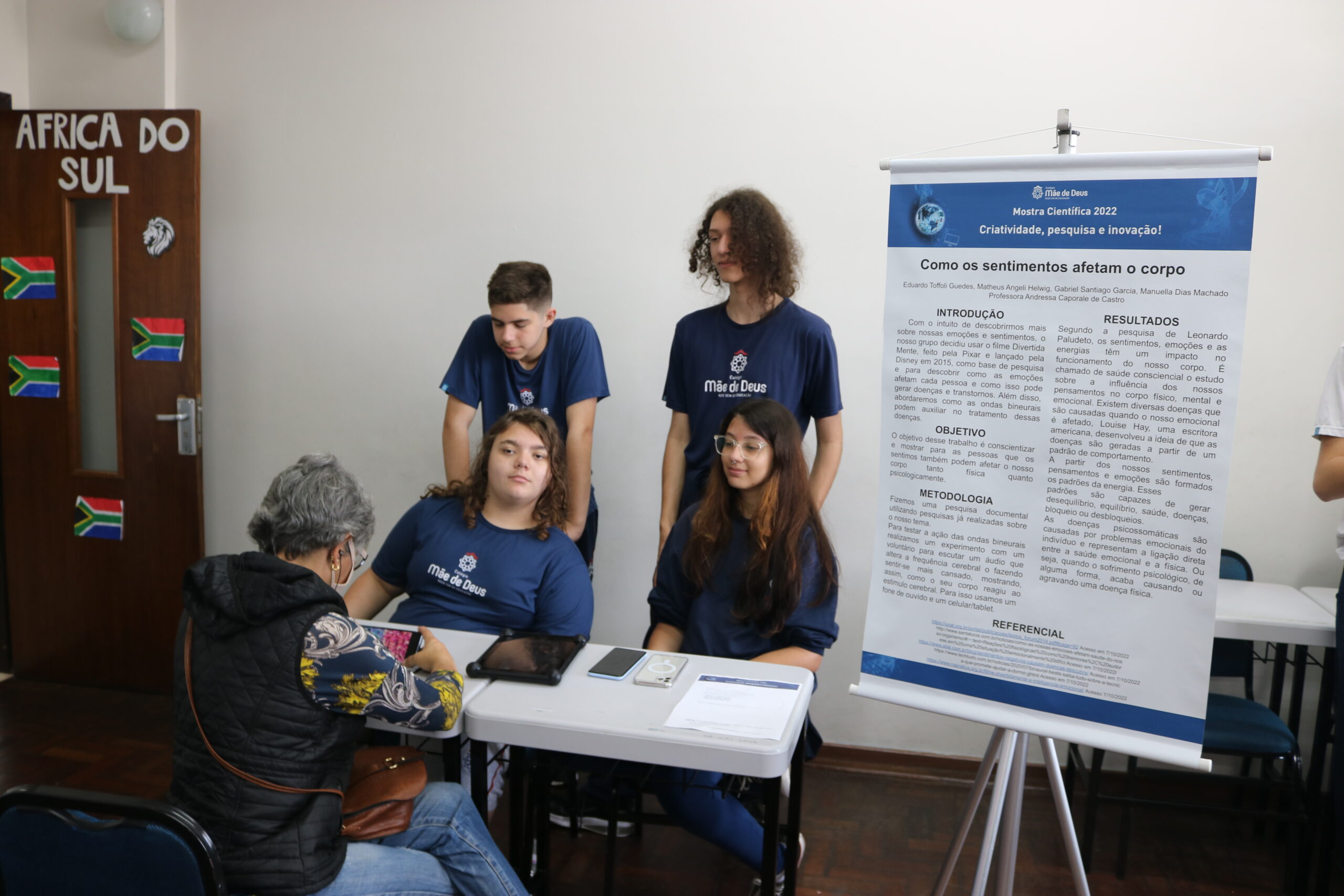 No dia 21 de outubro, foi realizada a Mostra Científica do Colégio Mãe de Deus, com o tema central “Criatividade, pesquisa e inovação”. Os temas apresentados foram escolhidos de acordo com os conteúdos que os alunos estão explorando em sala de aula.