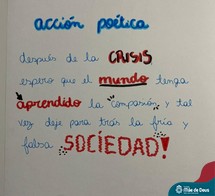 Na volta às aulas, pretendemos expor as poesias na escola, mas, no momento, compartilhamos nossos textos aqui na rede, num grande abraço virtual (e poético). Essa atividade, além de mobilizar nossa criatividade e o gênero de texto “Acción Poética”, também permitiu que nossas turmas revisassem conteúdos linguísticos importantes, como o tempo verbal Presente do Subjuntivo e as palavras “heterogenéricas”. Dessa forma, aprendemos a língua estrangeira de maneira ativa, em uso, em contexto.