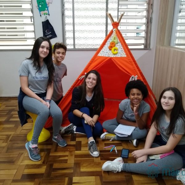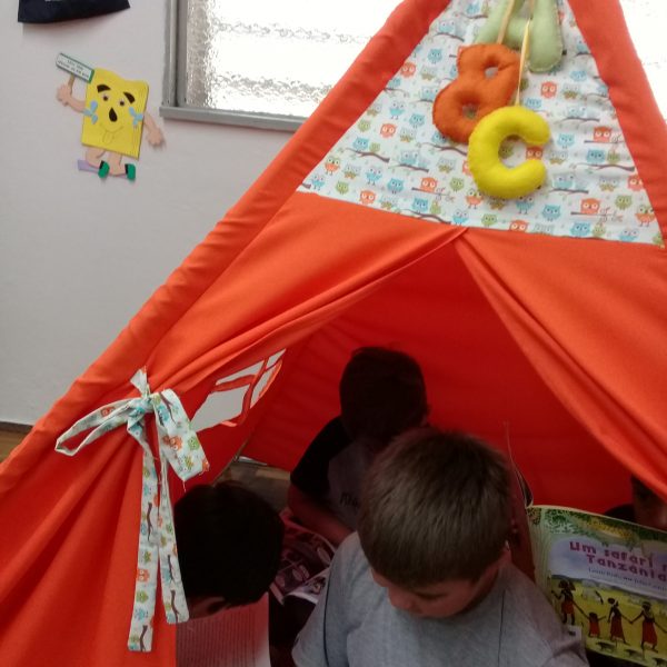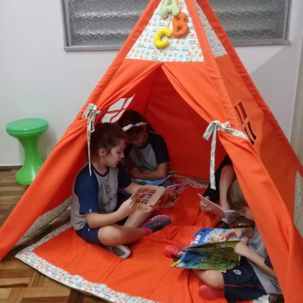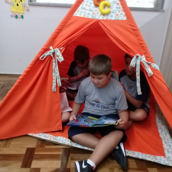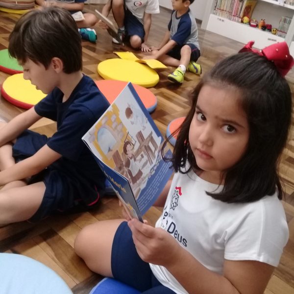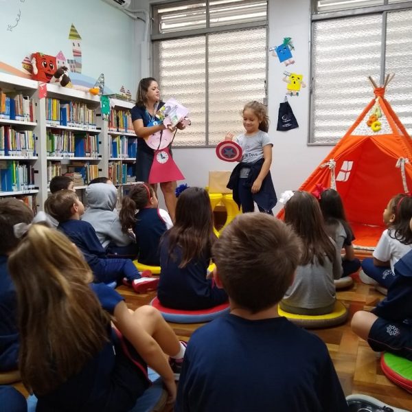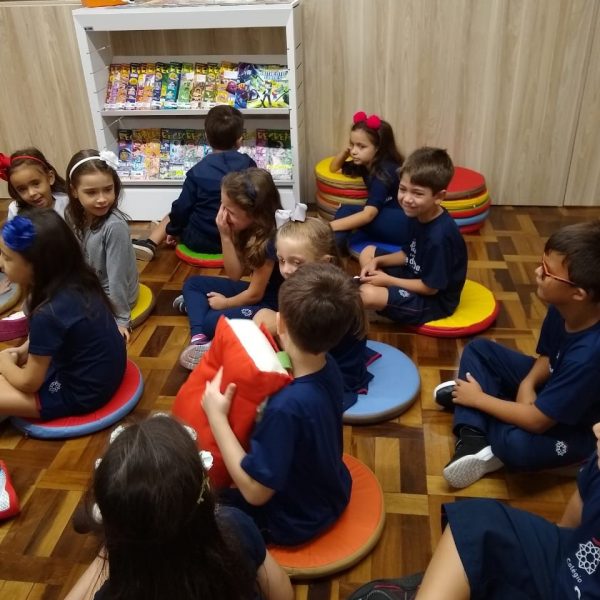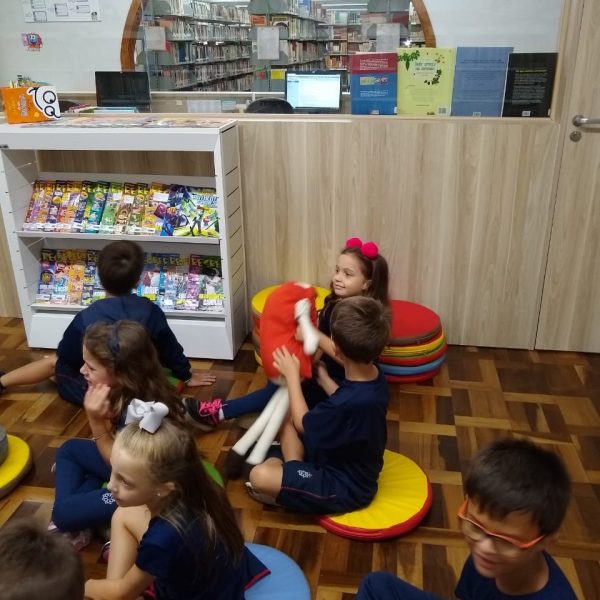 A Biblioteca Monteiro Lobato recebeu os alunos em 2019 com muitas novidades. O ambiente está mais colorido e acolhedor. No setor infantil, ganhamos um adesivo decorando a parede, deixando o espaço ainda mais lúdico e inspirador. Compondo o ambiente, foi montada uma linda barraca onde os pequenos podem interagir e brincar. O acervo recebe constante atualização: novas literaturas, lançamentos, curiosidades, novas revistas e também livros que contemplam o tema da Campanha da Fraternidade deste ano. O mascote da biblioteca, “Leiturino”, representado por um fantoche de pano, recebeu as crianças com muita alegria, participando da contação de histórias do livro “Julinha relógio na biblioteca”. Julinha conta suas descobertas em sua visita à biblioteca, vivendo com o amigo Murilo as incríveis e mágicas aventuras que só os livros podem proporcionar, ensinando as crianças que sempre é hora de aprender e se divertir quando se tem o hábito da leitura.