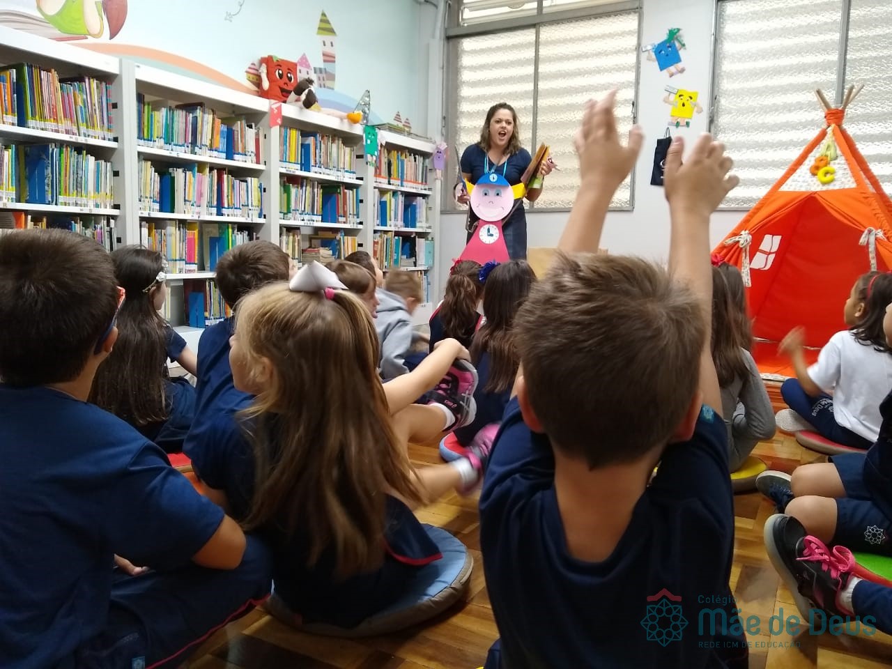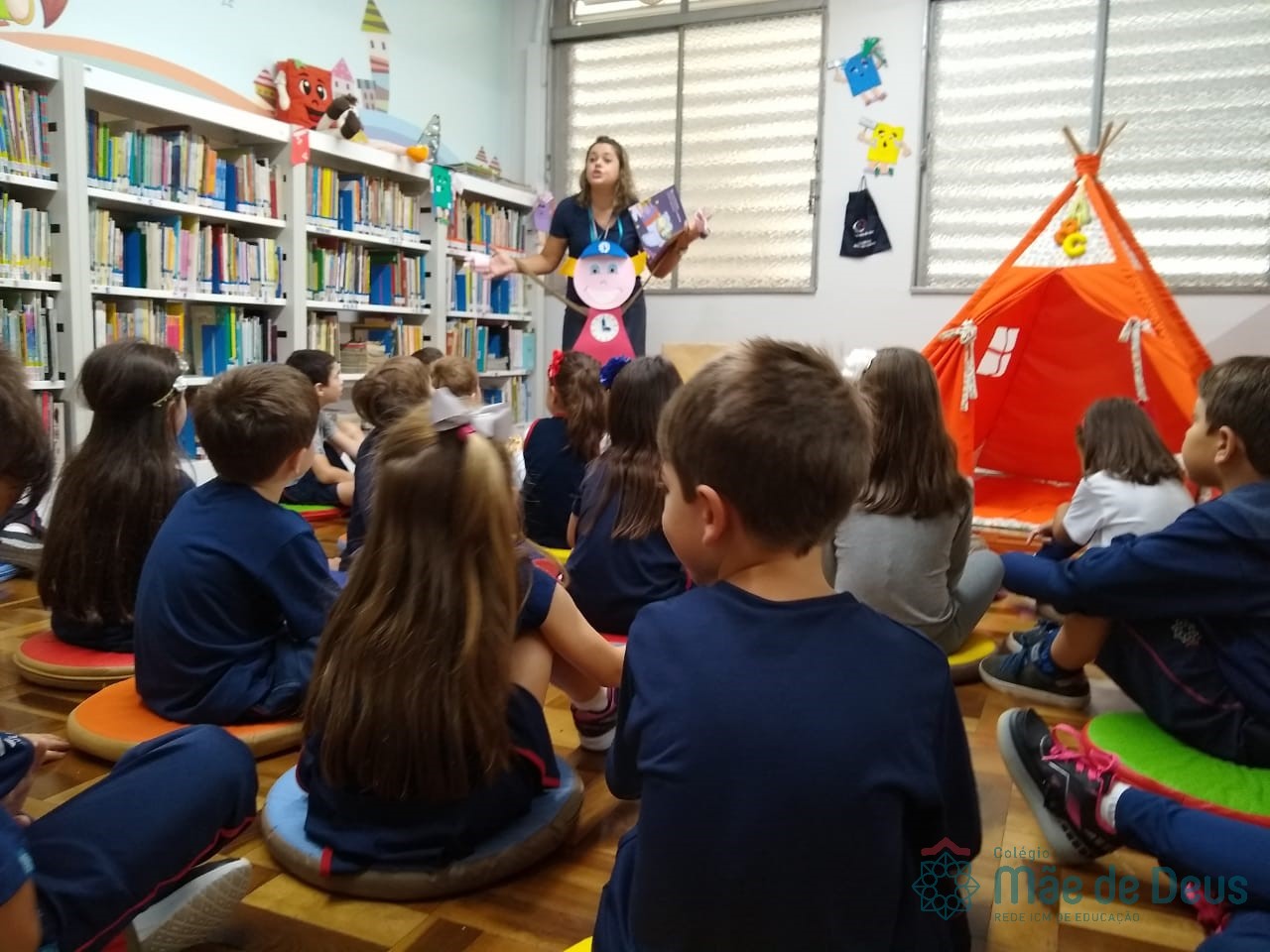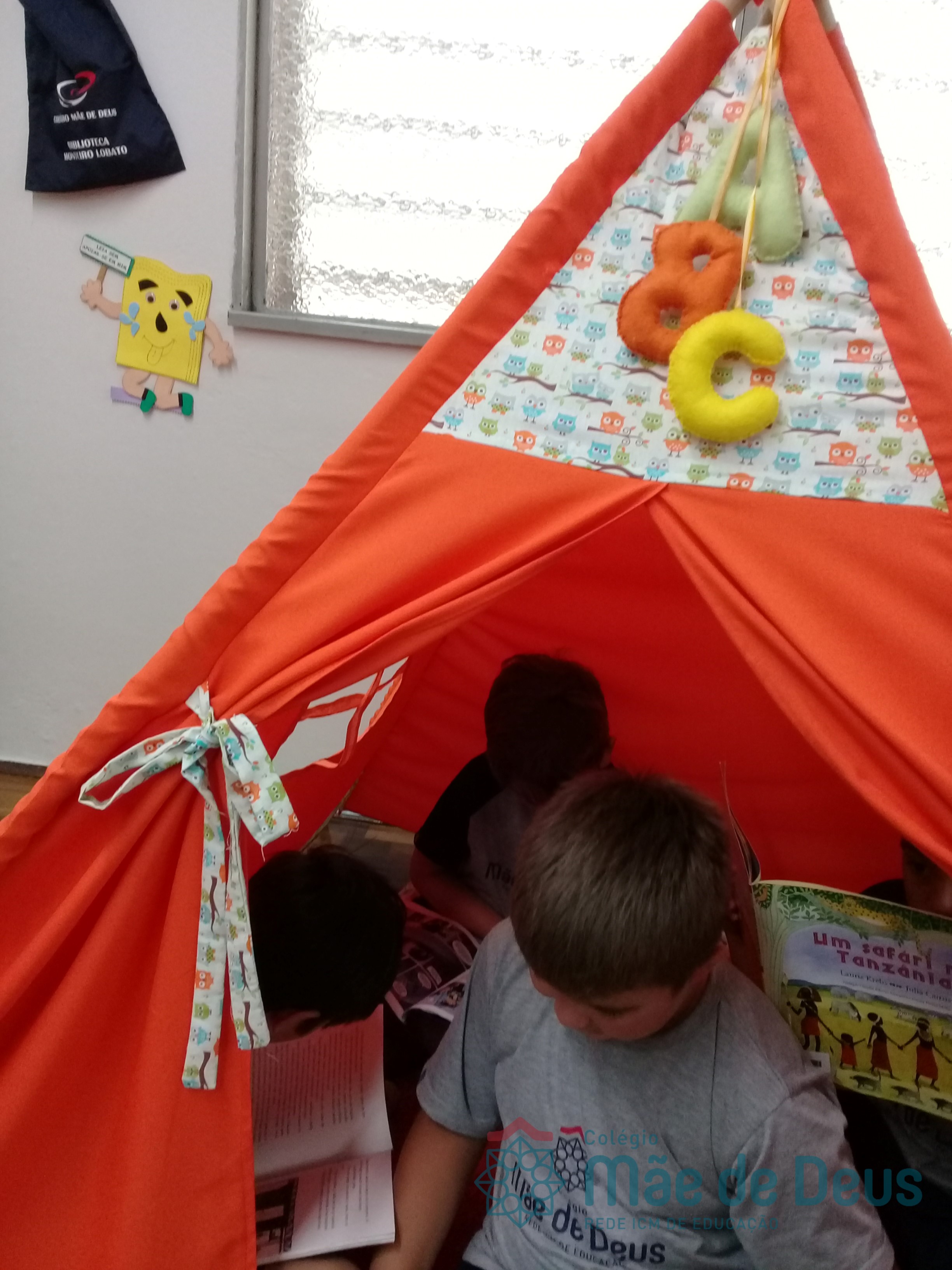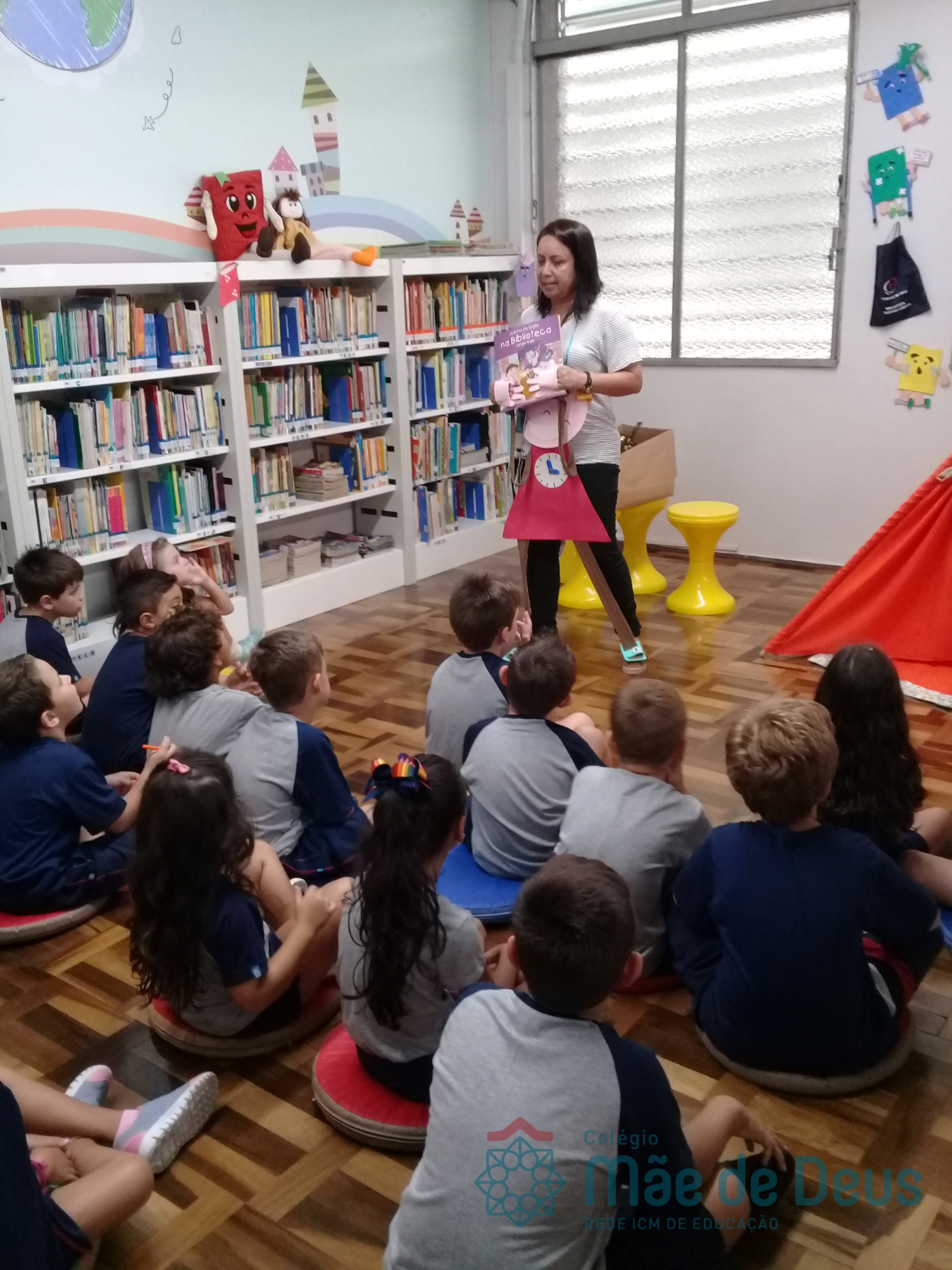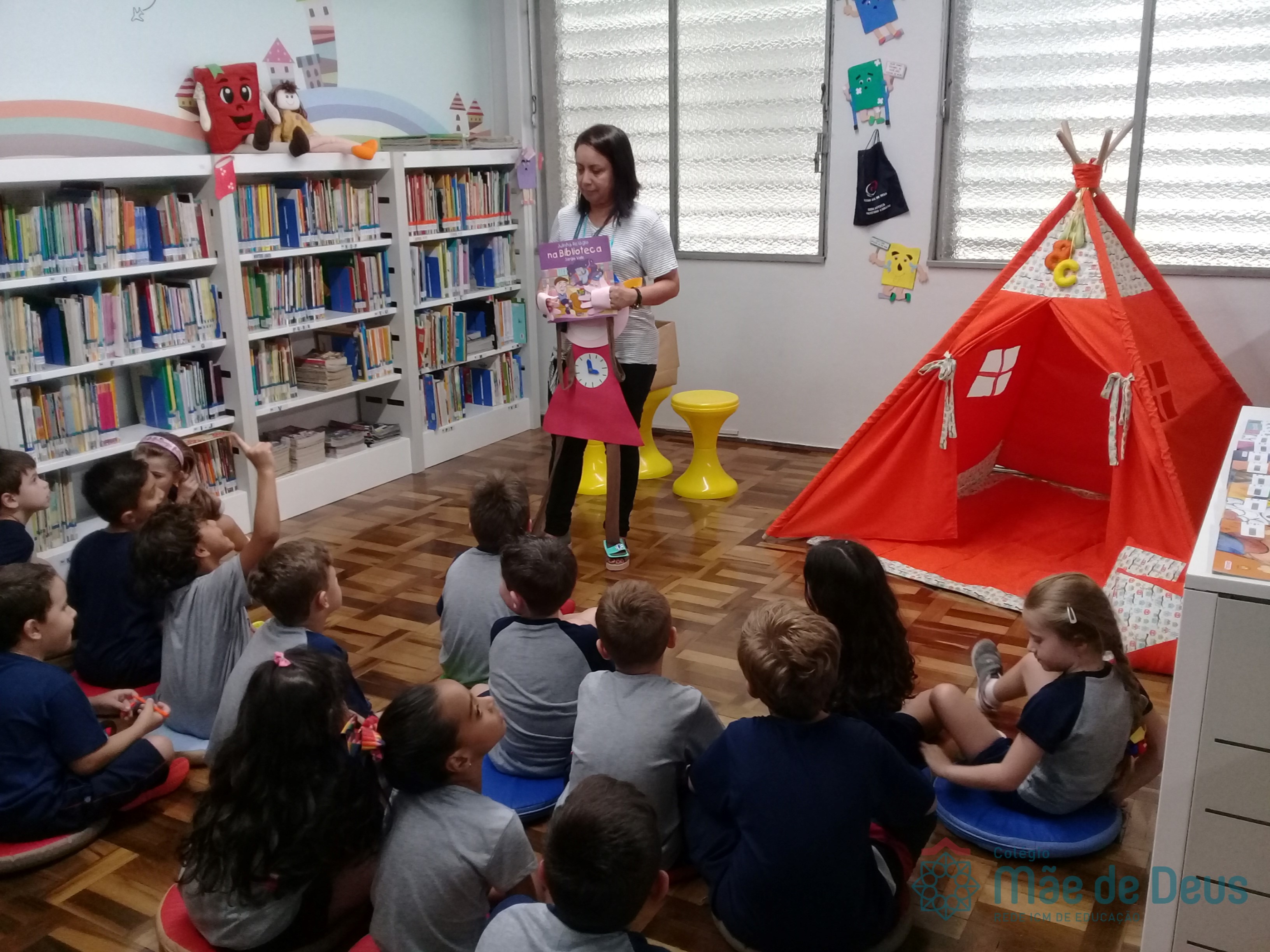 A Biblioteca Monteiro Lobato recebeu os alunos em 2019 com muitas novidades. O ambiente está mais colorido e acolhedor. No setor infantil, ganhamos um adesivo decorando a parede, deixando o espaço ainda mais lúdico e inspirador. Compondo o ambiente, foi montada uma linda barraca onde os pequenos podem interagir e brincar. O acervo recebe constante atualização: novas literaturas, lançamentos, curiosidades, novas revistas e também livros que contemplam o tema da Campanha da Fraternidade deste ano. O mascote da biblioteca, “Leiturino”, representado por um fantoche de pano, recebeu as crianças com muita alegria, participando da contação de histórias do livro “Julinha relógio na biblioteca”. Julinha conta suas descobertas em sua visita à biblioteca, vivendo com o amigo Murilo as incríveis e mágicas aventuras que só os livros podem proporcionar, ensinando as crianças que sempre é hora de aprender e se divertir quando se tem o hábito da leitura.