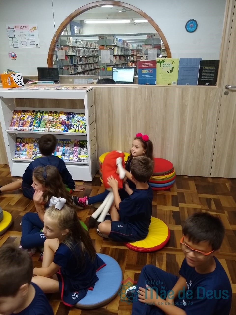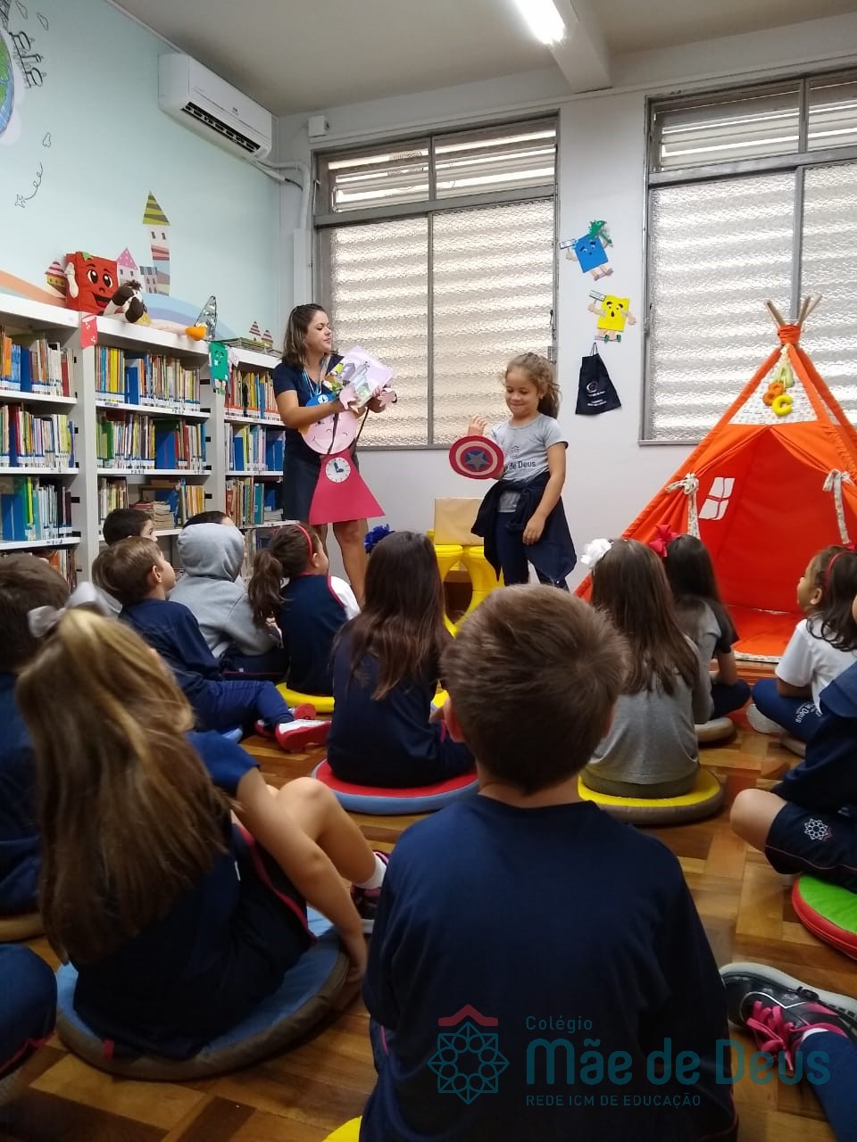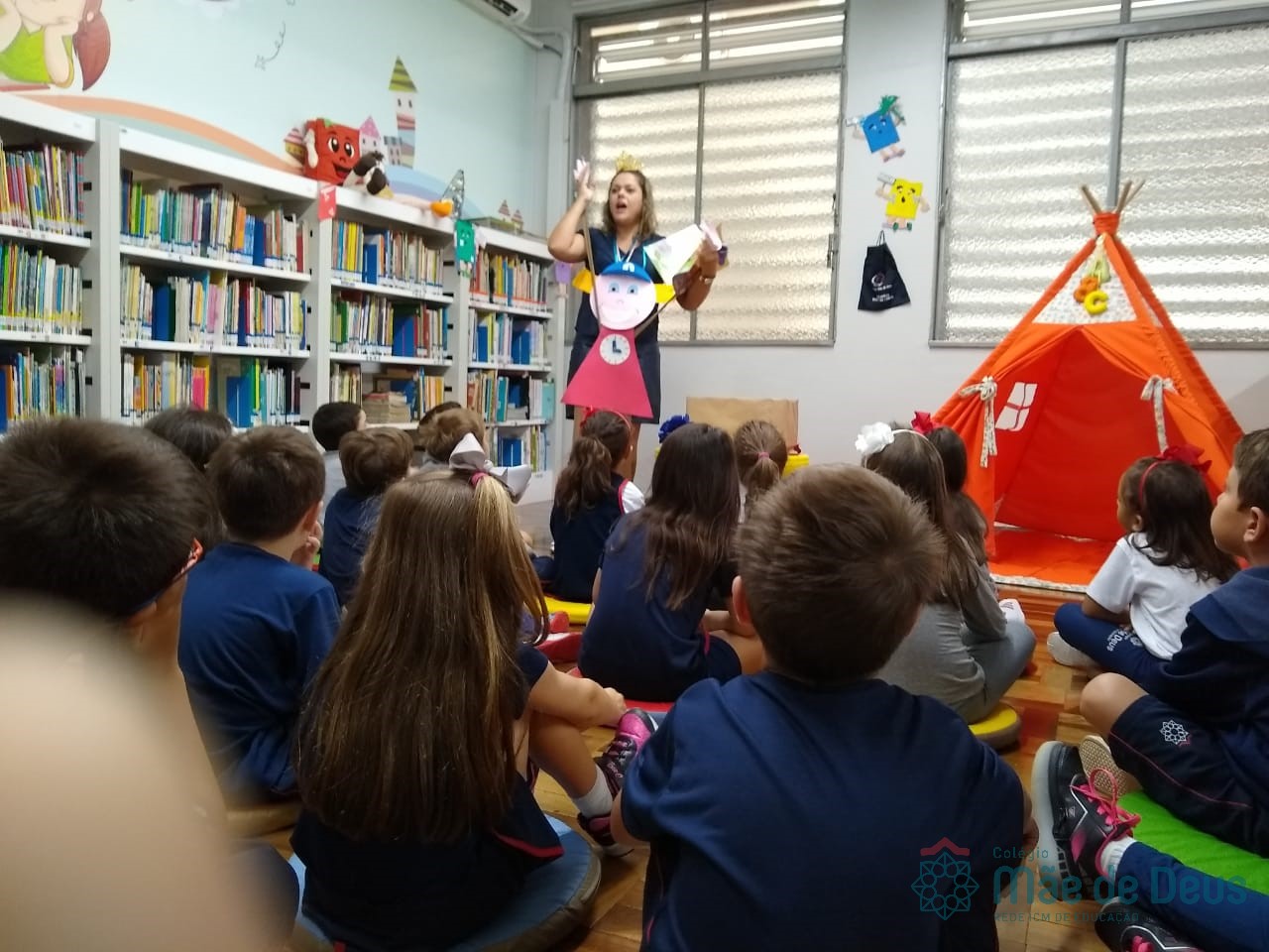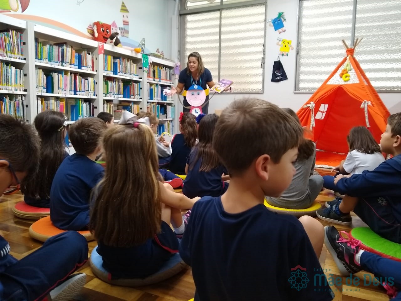A Biblioteca Monteiro Lobato recebeu os alunos em 2019 com muitas novidades. O ambiente está mais colorido e acolhedor. No setor infantil, ganhamos um adesivo decorando a parede, deixando o espaço ainda mais lúdico e inspirador. Compondo o ambiente, foi montada uma linda barraca onde os pequenos podem interagir e brincar. O acervo recebe constante atualização: novas literaturas, lançamentos, curiosidades, novas revistas e também livros que contemplam o tema da Campanha da Fraternidade deste ano. O mascote da biblioteca, “Leiturino”, representado por um fantoche de pano, recebeu as crianças com muita alegria, participando da contação de histórias do livro “Julinha relógio na biblioteca”. Julinha conta suas descobertas em sua visita à biblioteca, vivendo com o amigo Murilo as incríveis e mágicas aventuras que só os livros podem proporcionar, ensinando as crianças que sempre é hora de aprender e se divertir quando se tem o hábito da leitura.