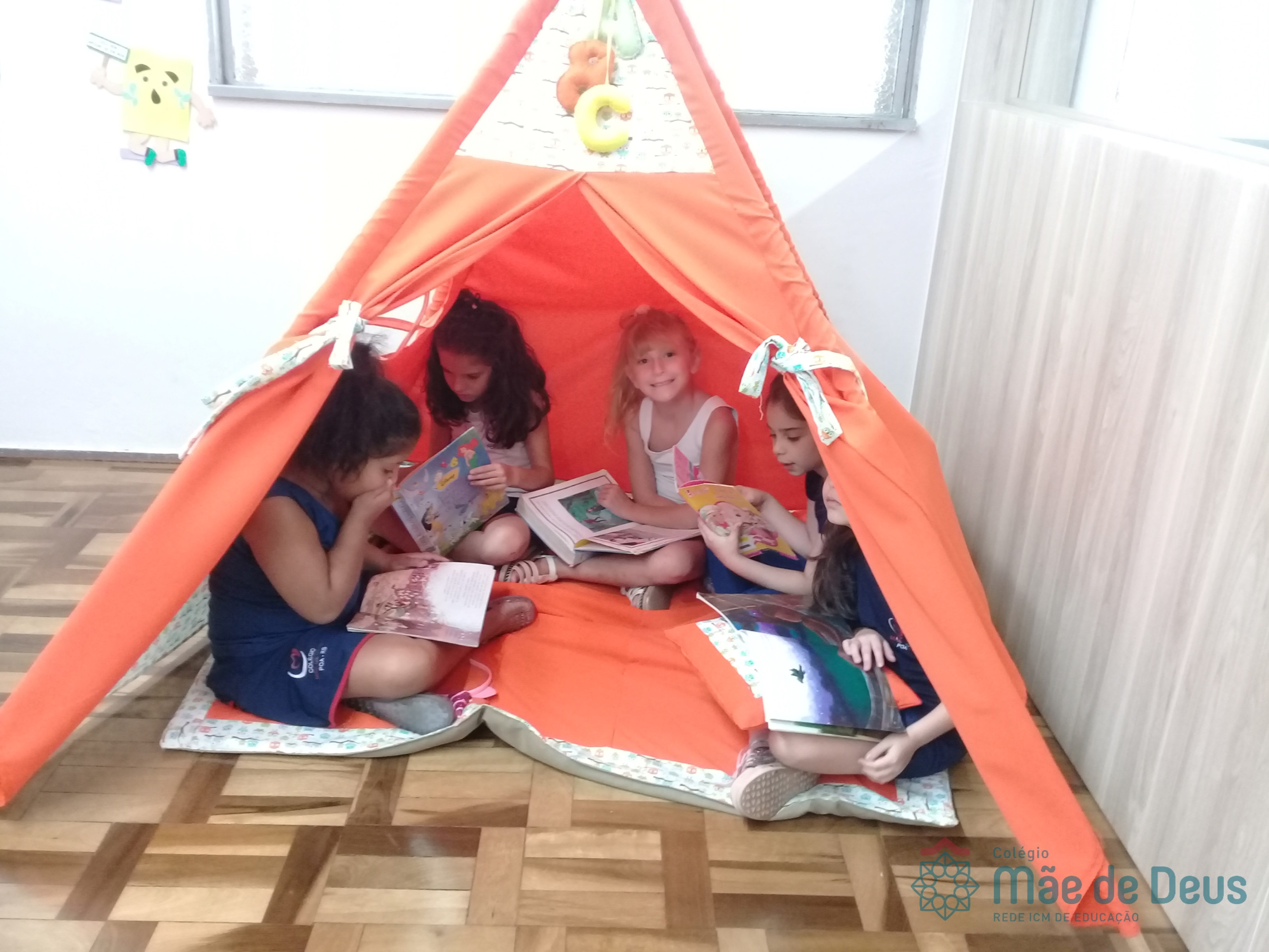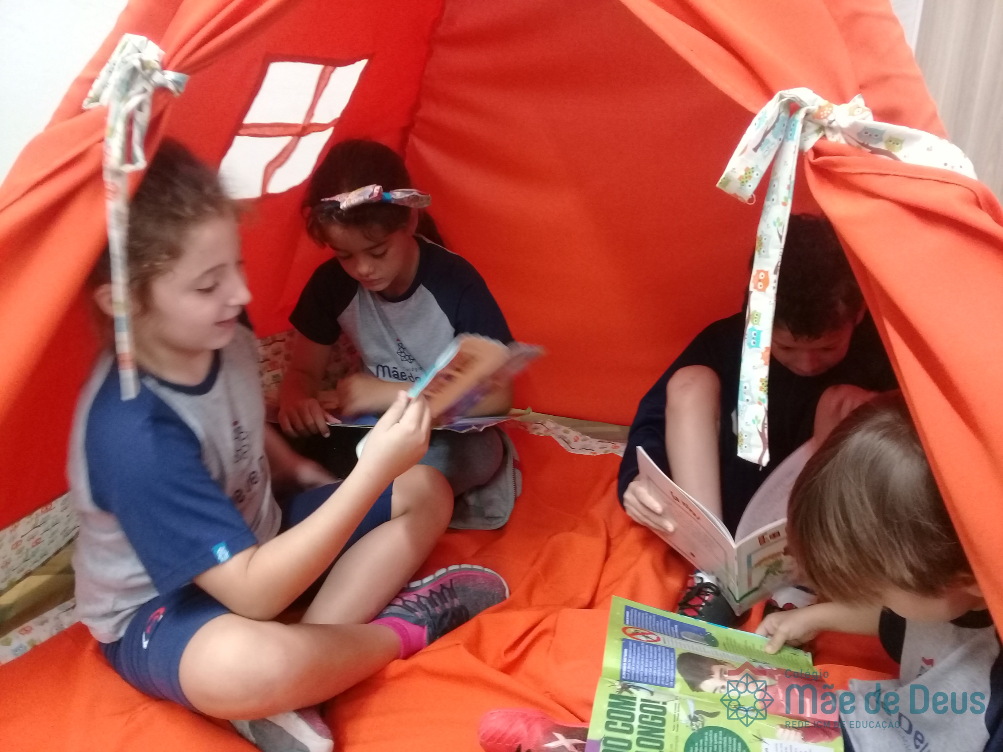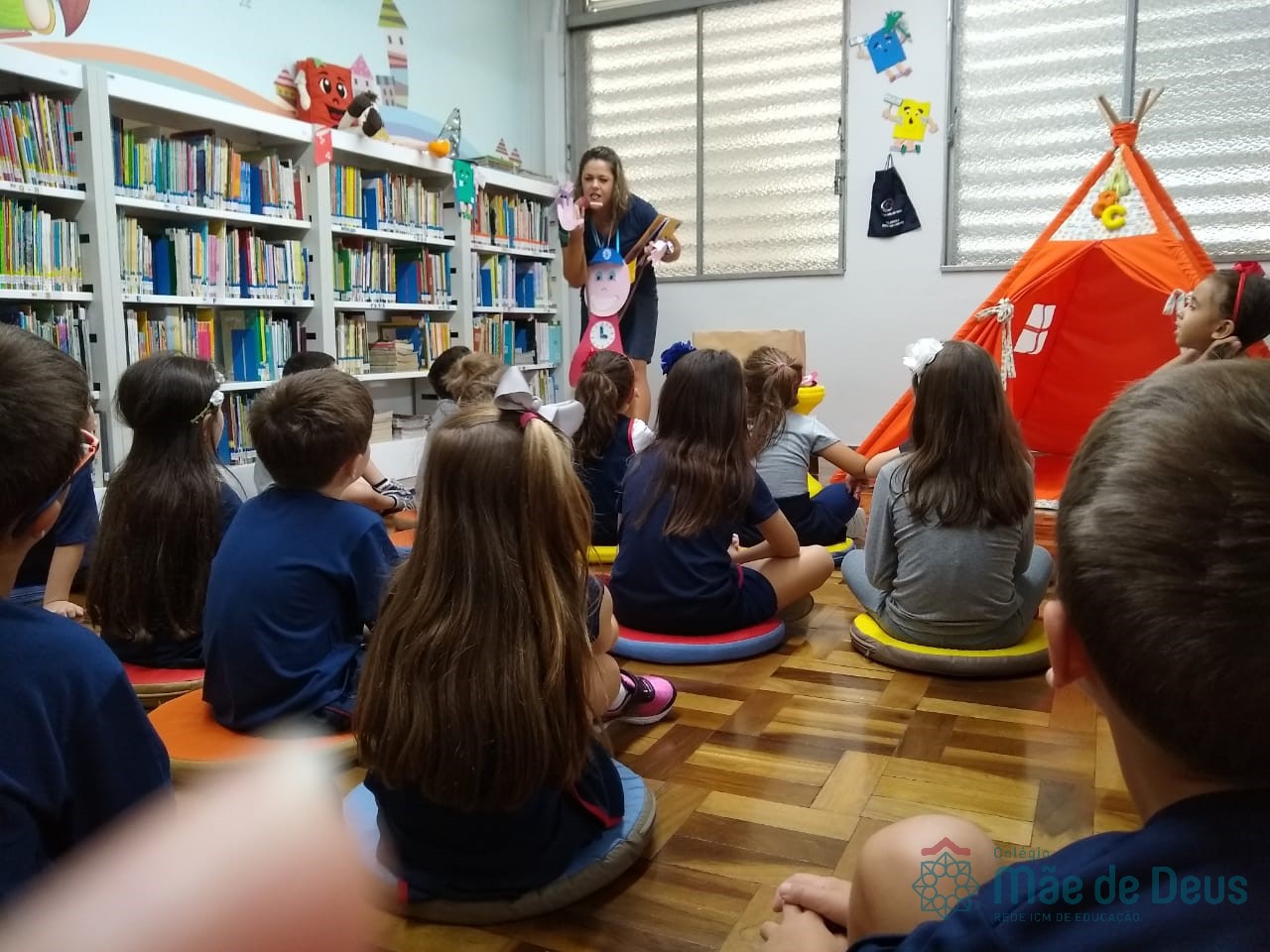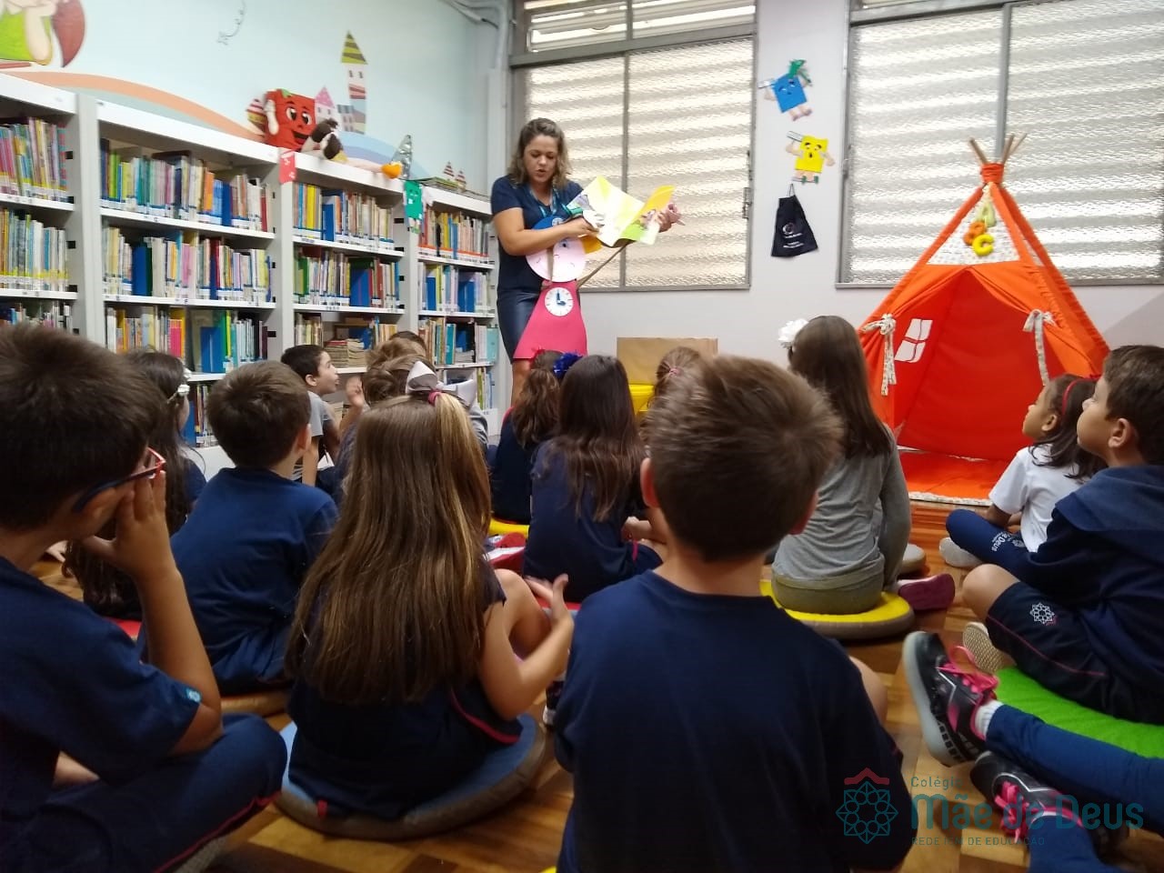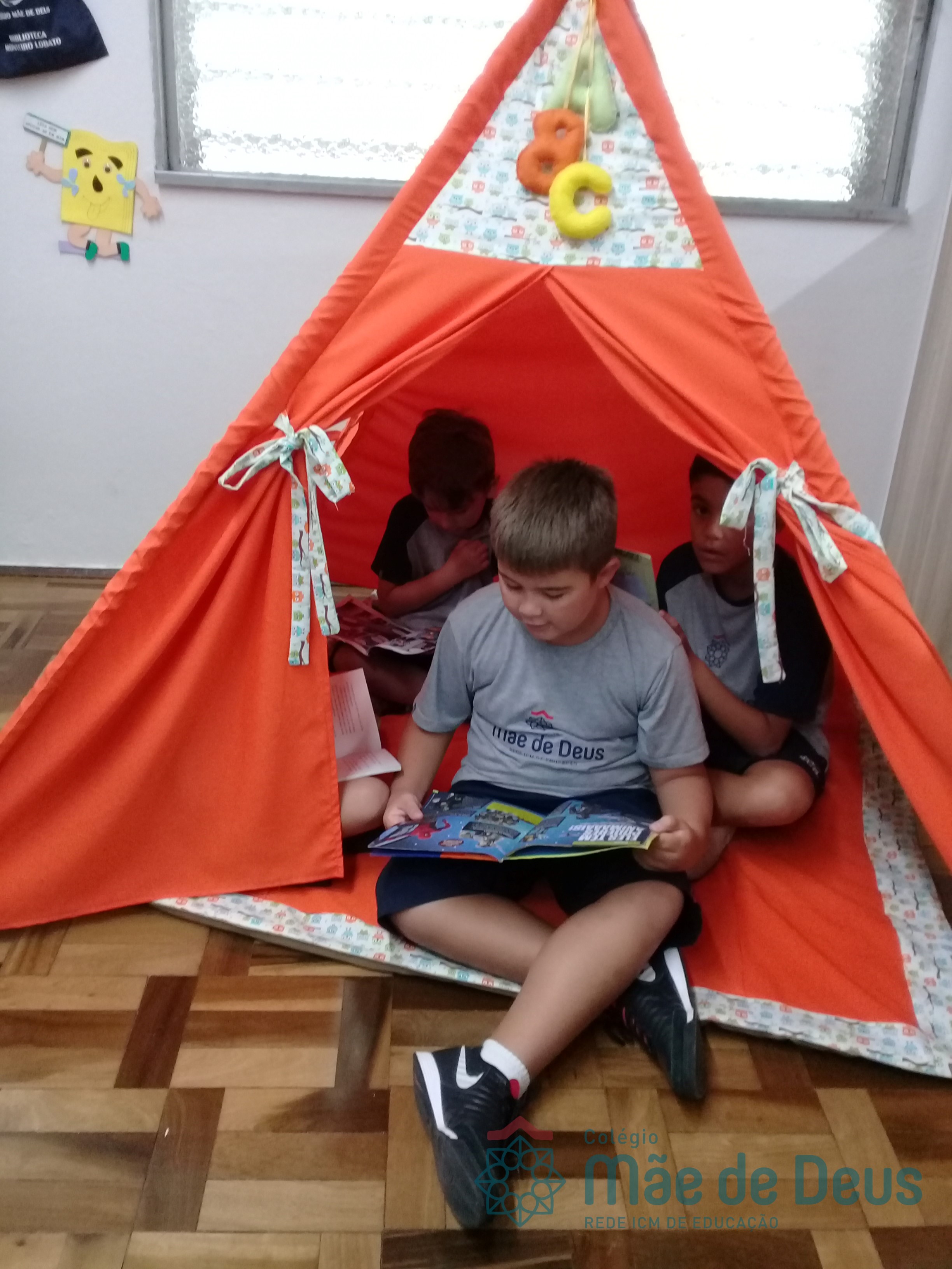 A Biblioteca Monteiro Lobato recebeu os alunos em 2019 com muitas novidades. O ambiente está mais colorido e acolhedor. No setor infantil, ganhamos um adesivo decorando a parede, deixando o espaço ainda mais lúdico e inspirador. Compondo o ambiente, foi montada uma linda barraca onde os pequenos podem interagir e brincar. O acervo recebe constante atualização: novas literaturas, lançamentos, curiosidades, novas revistas e também livros que contemplam o tema da Campanha da Fraternidade deste ano. O mascote da biblioteca, “Leiturino”, representado por um fantoche de pano, recebeu as crianças com muita alegria, participando da contação de histórias do livro “Julinha relógio na biblioteca”. Julinha conta suas descobertas em sua visita à biblioteca, vivendo com o amigo Murilo as incríveis e mágicas aventuras que só os livros podem proporcionar, ensinando as crianças que sempre é hora de aprender e se divertir quando se tem o hábito da leitura.