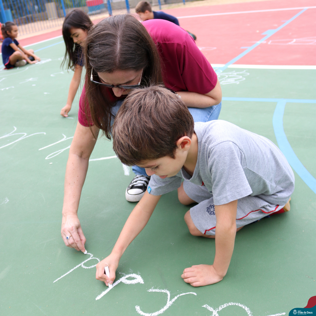 O traçado da letra cursiva é um dos desafios para o grupo do 2º Ano do Ensino Fundamental.