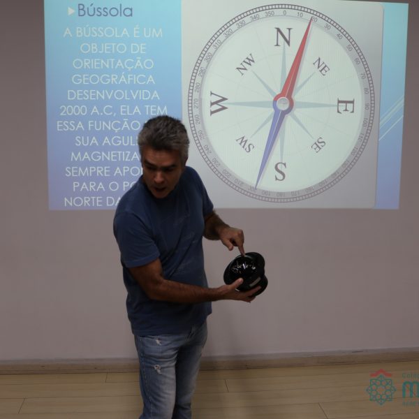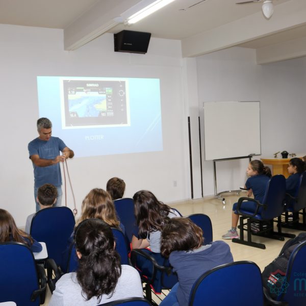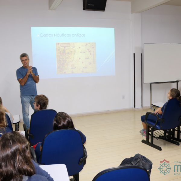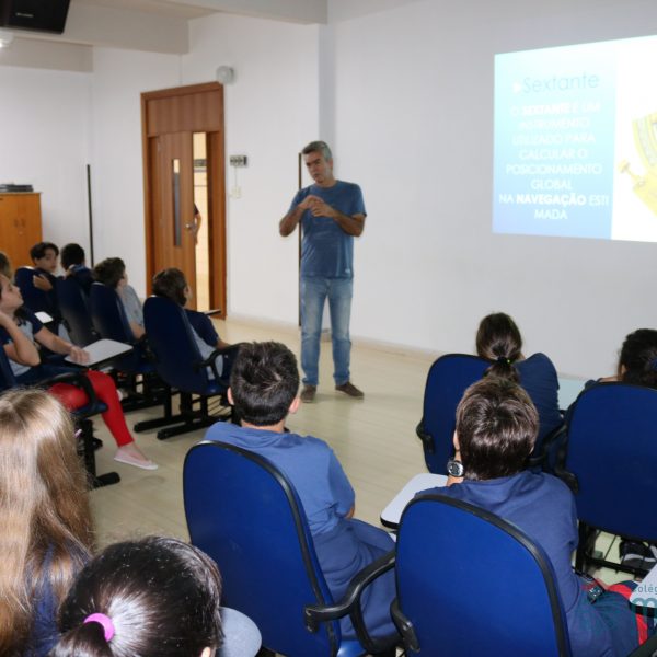 No dia 17 de abril, os alunos do 5º ano receberam a visita do mestre amador Márcio Lima que veio conversar sobre navegações. Os estudantes puderam conhecer os instrumentos utilizados desde os tempos das Grandes Navegações, período histórico estudado pelas turmas. Todos puderam perceber a História e a Geografia saindo do papel e tendo maior significado. Foi um dia de muita aventura e conhecimento. Nossos aventureiros adoraram!