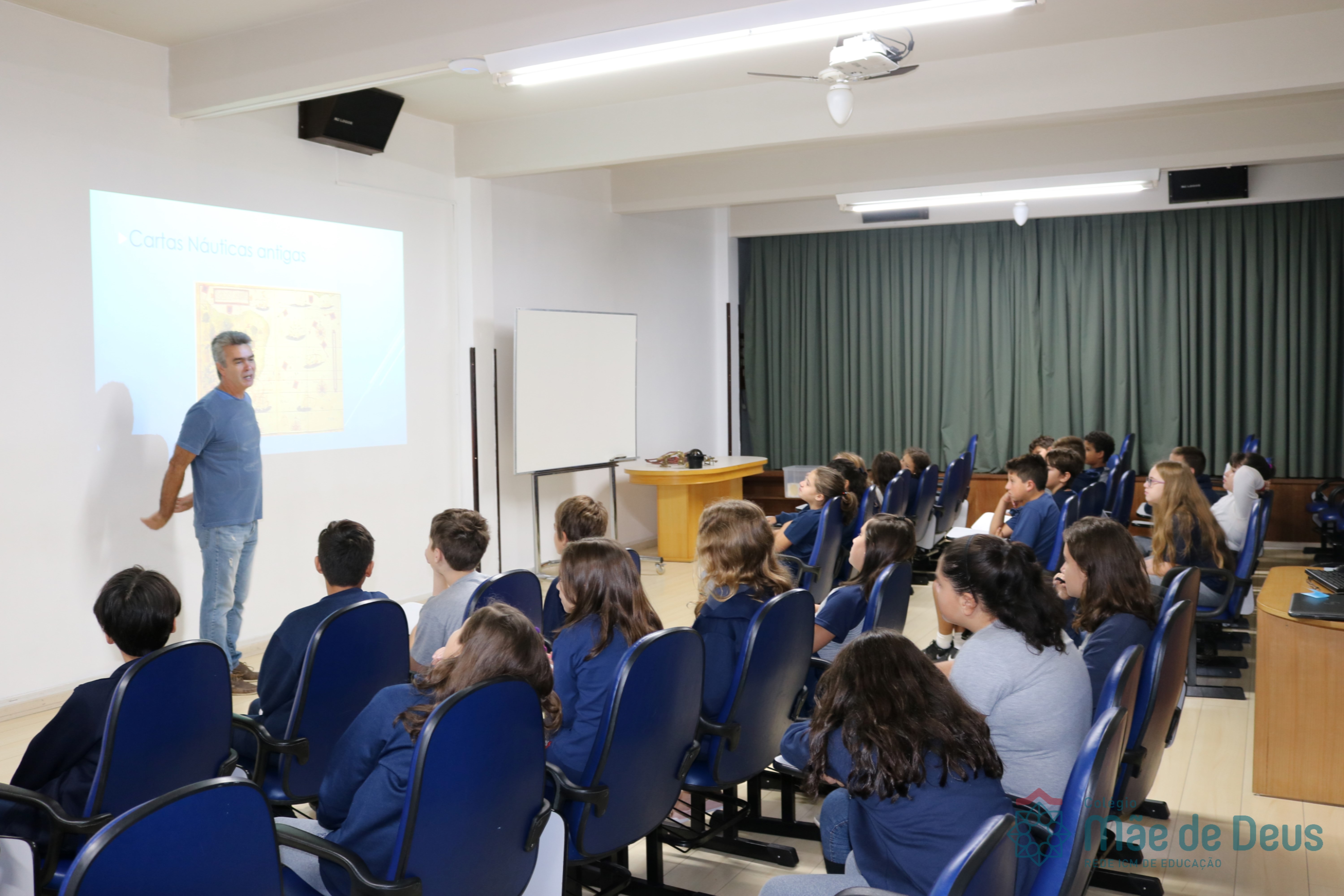 No dia 17 de abril, os alunos do 5º ano receberam a visita do mestre amador Márcio Lima que veio conversar sobre navegações. Os estudantes puderam conhecer os instrumentos utilizados desde os tempos das Grandes Navegações, período histórico estudado pelas turmas. Todos puderam perceber a História e a Geografia saindo do papel e tendo maior significado. Foi um dia de muita aventura e conhecimento. Nossos aventureiros adoraram!