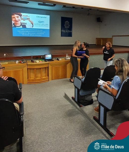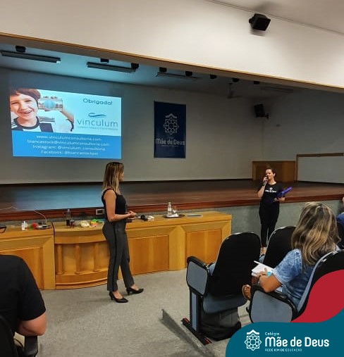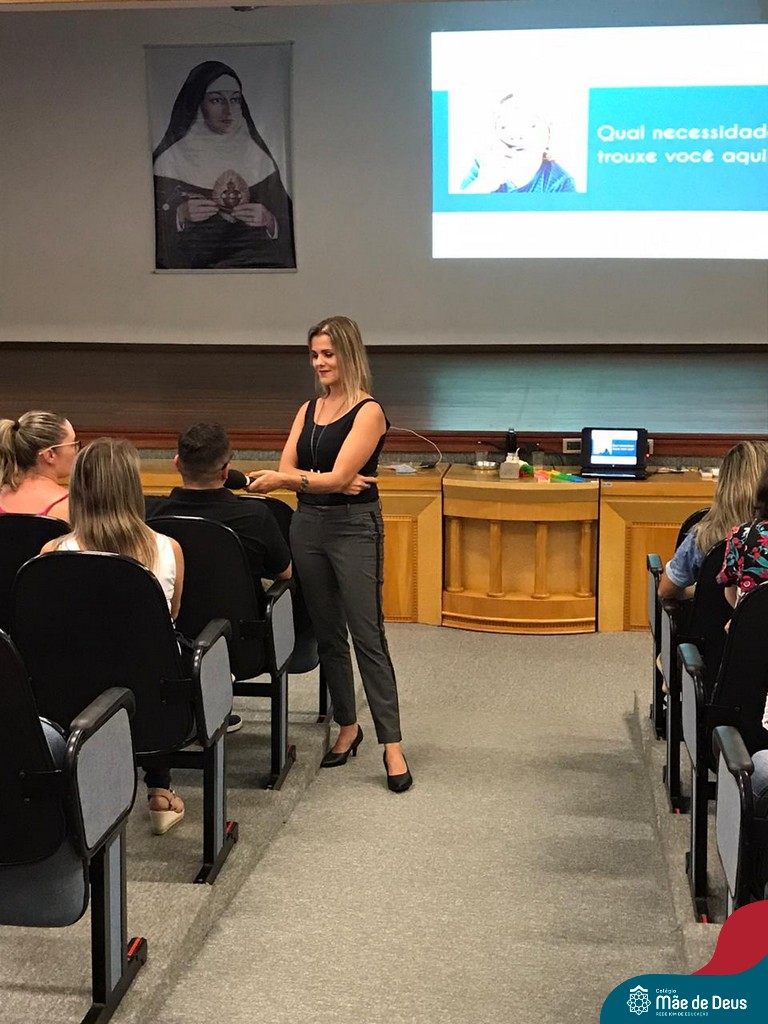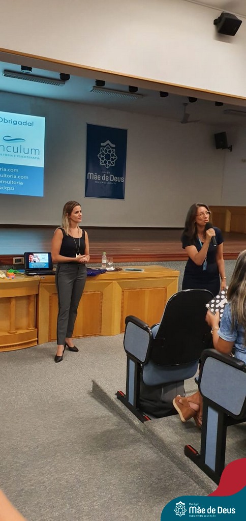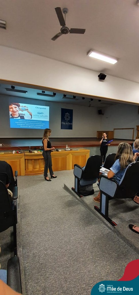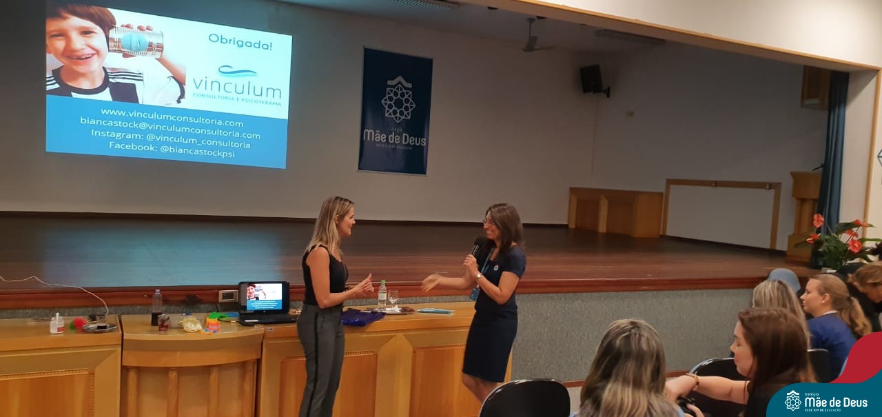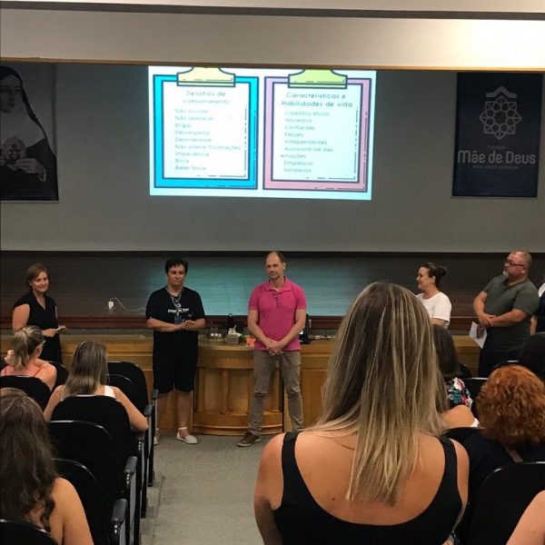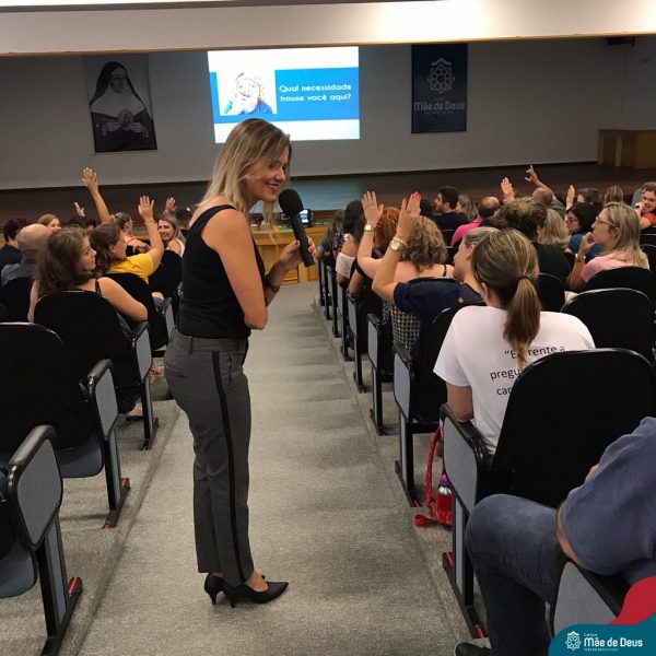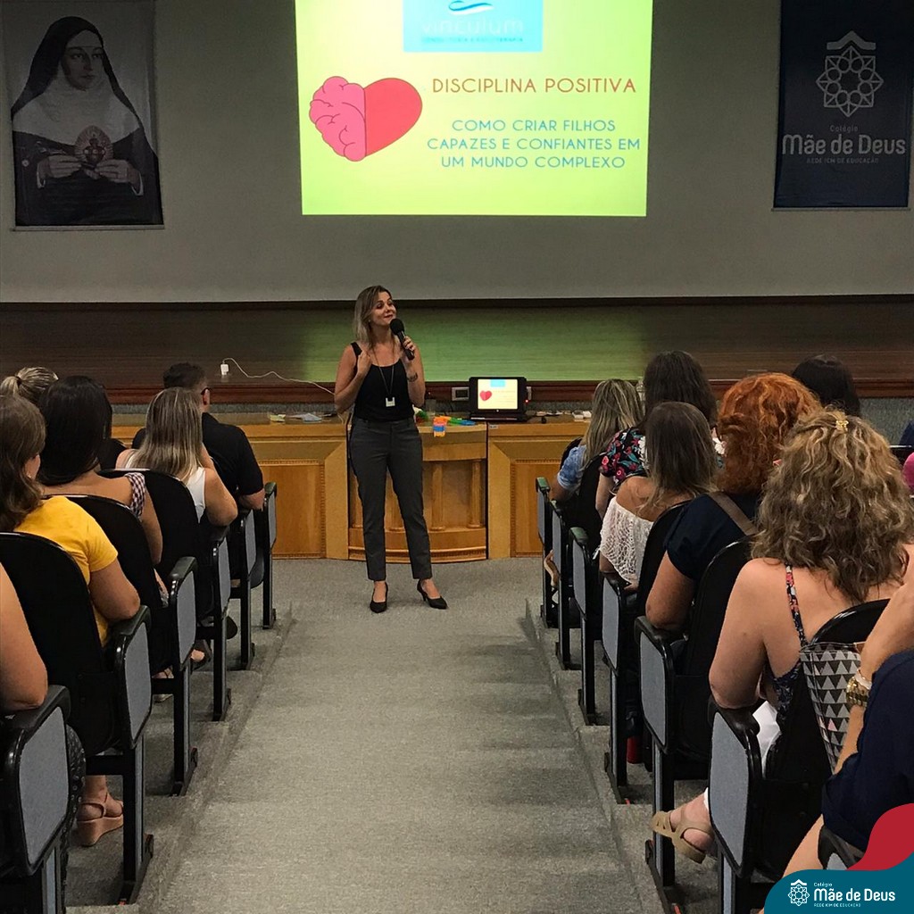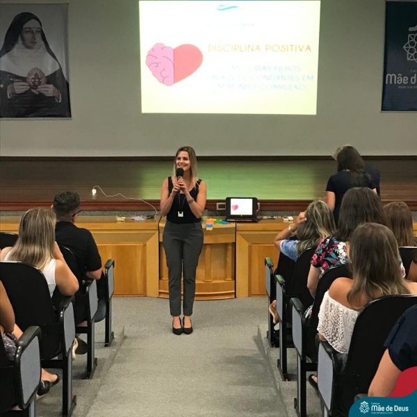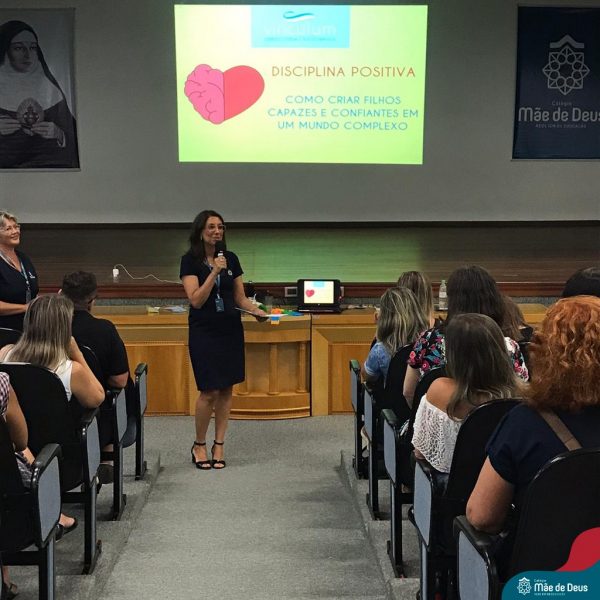 A palestra ”Abordagens Assertivas na Educação dos Filhos: Famílias e Escola em Consonância”, assessorada pela professora Bianca Stock, aconteceu no dia 20 de fevereiro, no auditório do Colégio Mãe de Deus. Foi uma oportunidade muito significativa e trouxe elementos teóricos e práticos do cotidiano da vida a serem gerenciados com os filhos. Bianca enfatizou a importância de um agir firme e gentil, conduzindo os filhos e alunos a construírem atitudes de vida, assumindo suas responsabilidades e as consequências de seus comportamentos e decisões, sem ser necessário, no entanto, a humilhação dos mesmos.