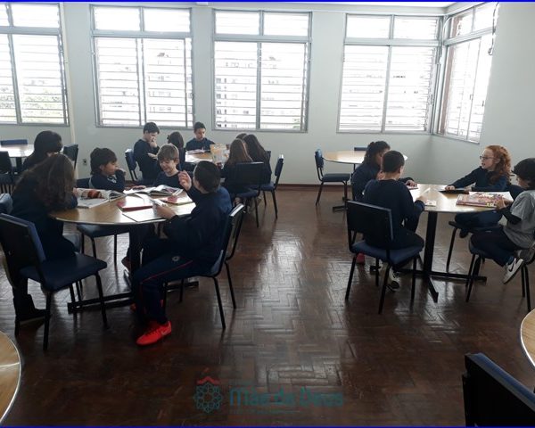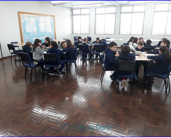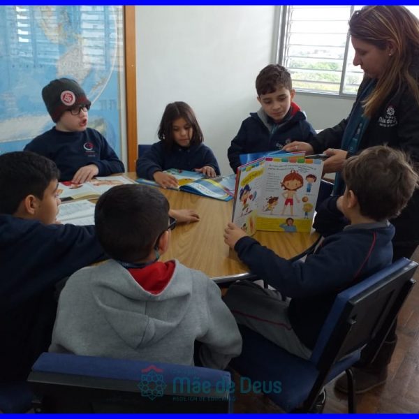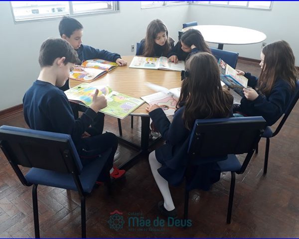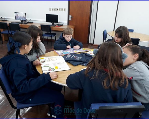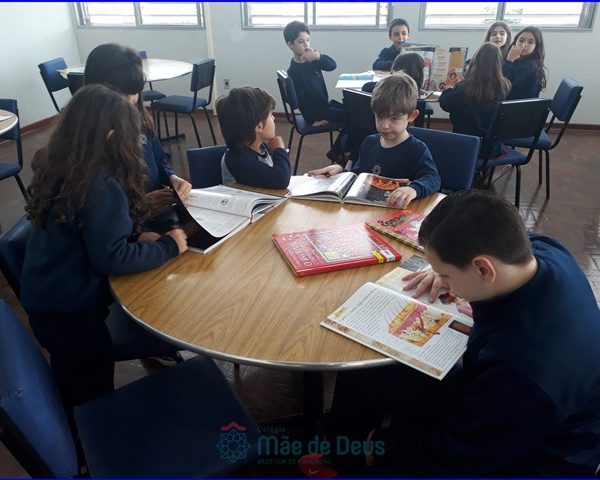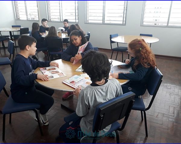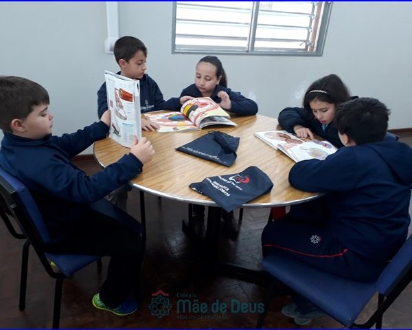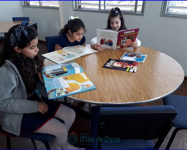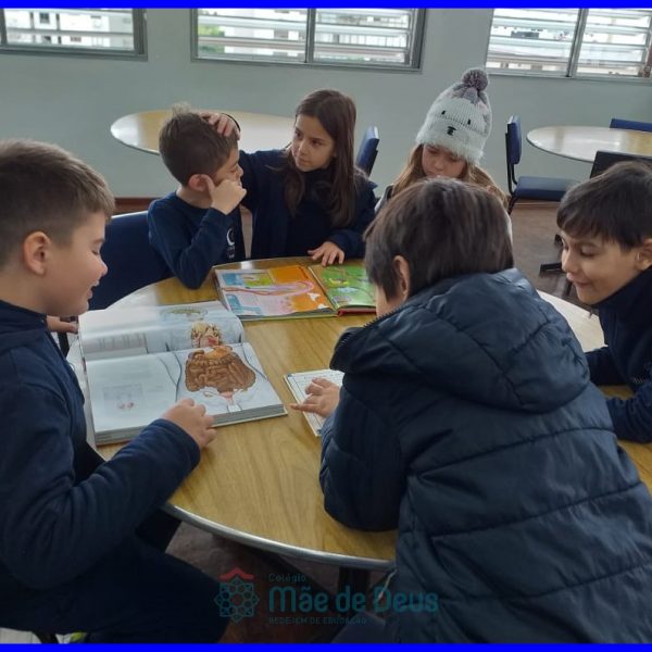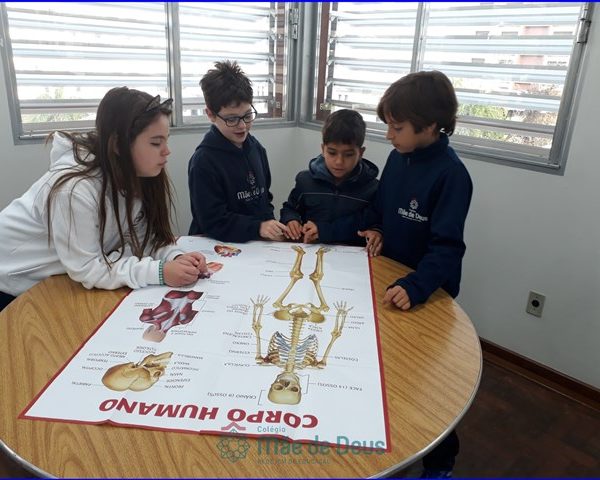 Um dos conceitos trabalhados pelo 3º ano do Ensino Fundamental é o corpo humano. Entre as atividades planejadas pelas professoras, destacamos a pesquisa realizada na biblioteca. Foram disponibilizados vários livros referentes ao assunto para que os estudantes aprofundassem seus conhecimentos, compartilhando assim suas descobertas com os colegas.