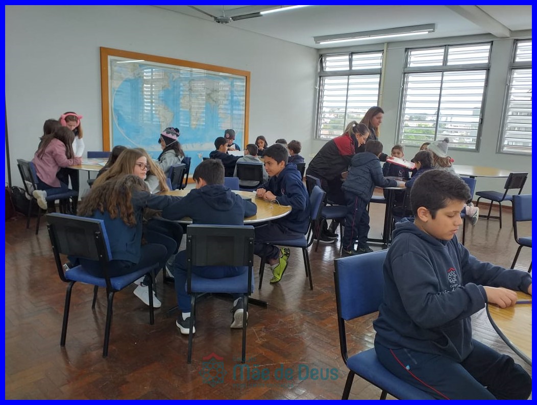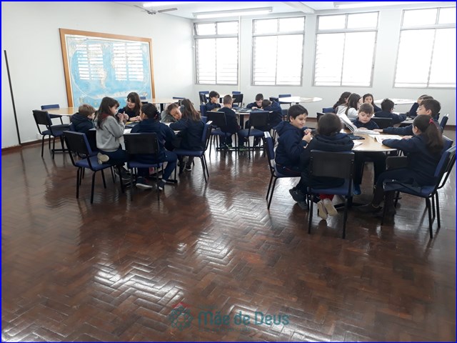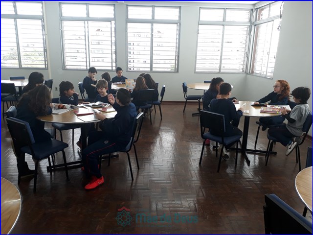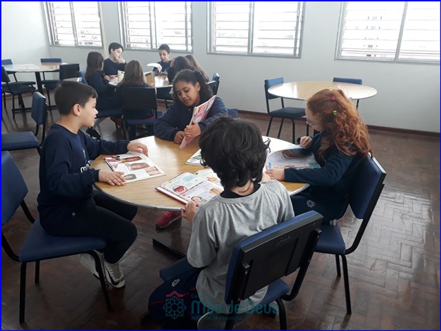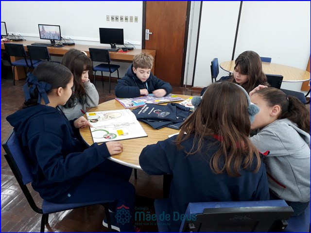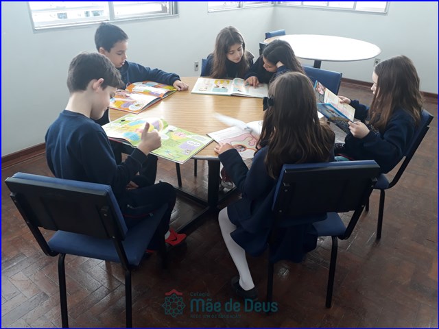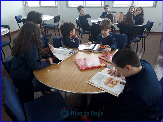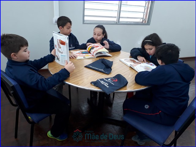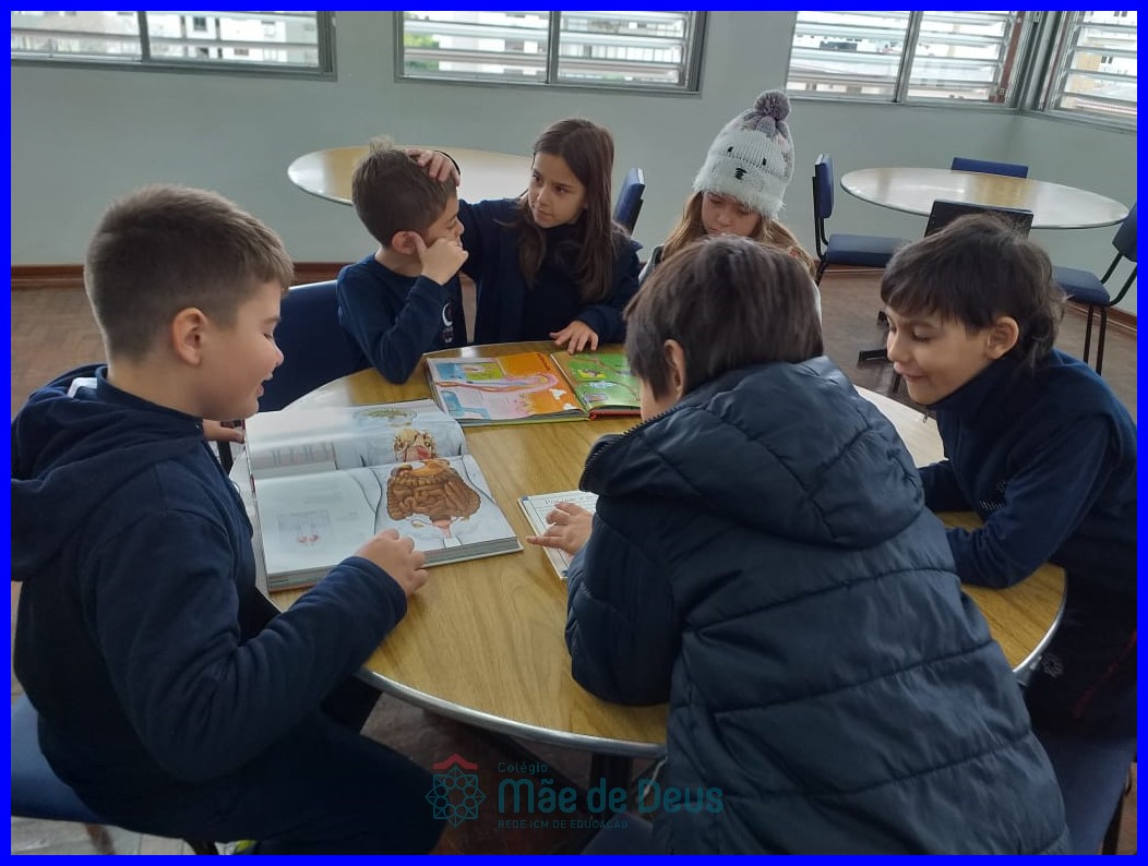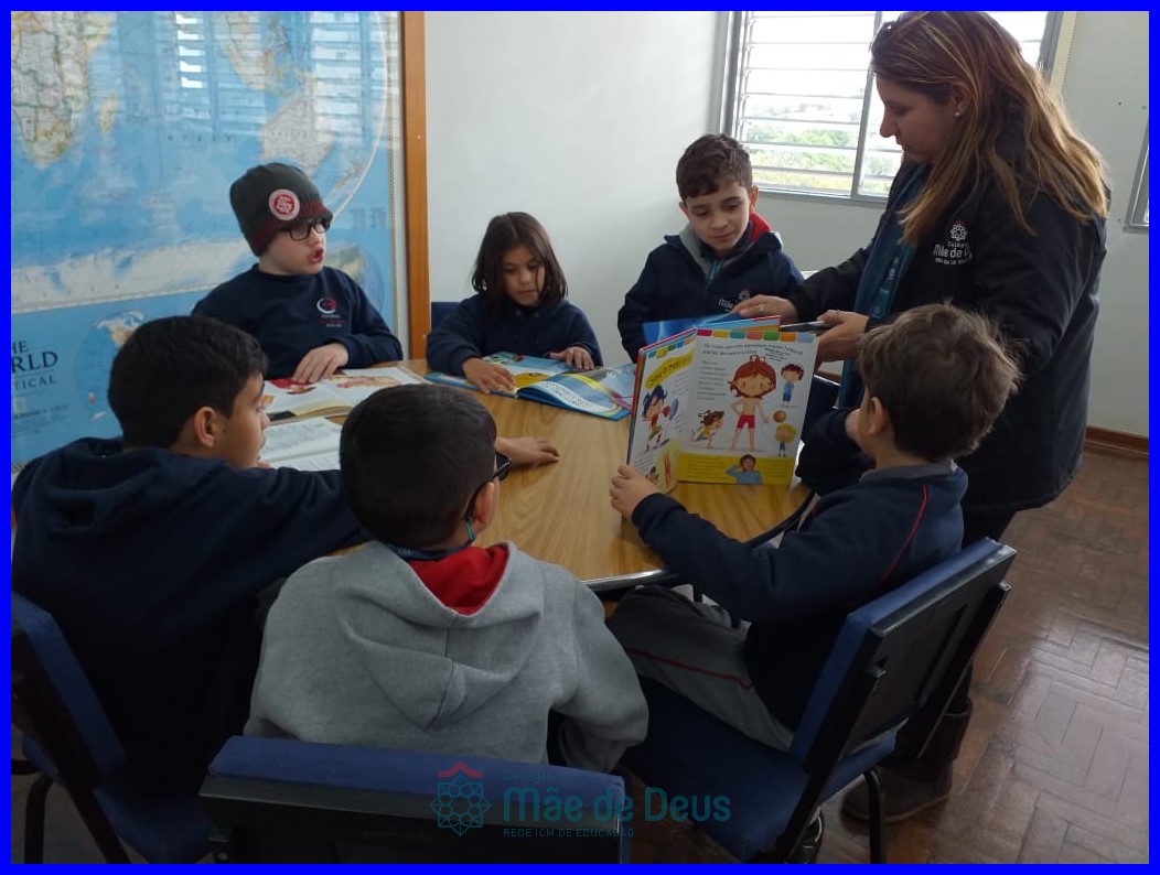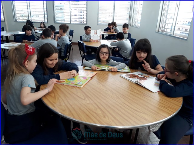 Um dos conceitos trabalhados pelo 3º ano do Ensino Fundamental é o corpo humano. Entre as atividades planejadas pelas professoras, destacamos a pesquisa realizada na biblioteca. Foram disponibilizados vários livros referentes ao assunto para que os estudantes aprofundassem seus conhecimentos, compartilhando assim suas descobertas com os colegas.