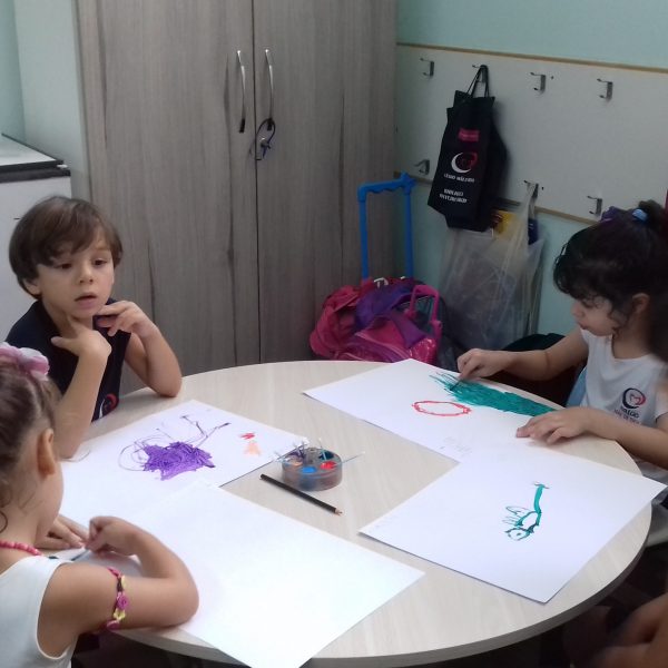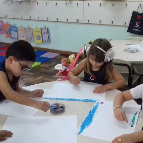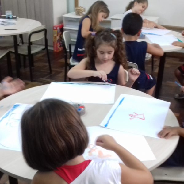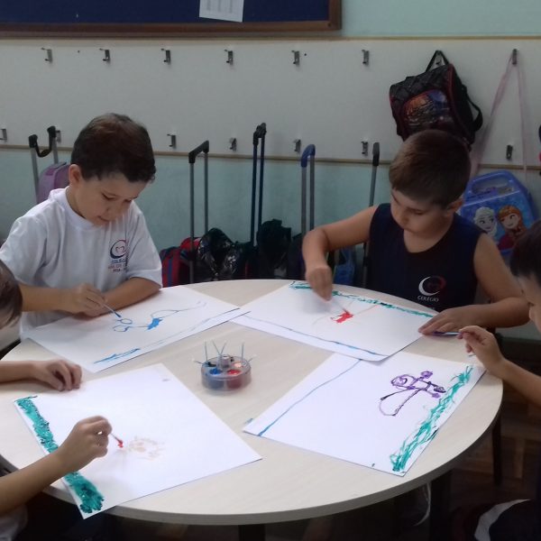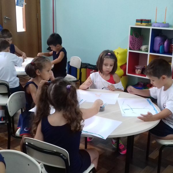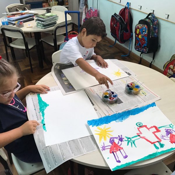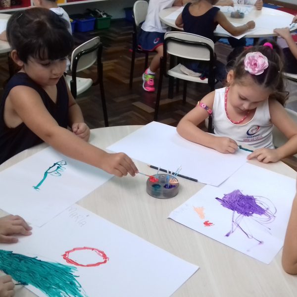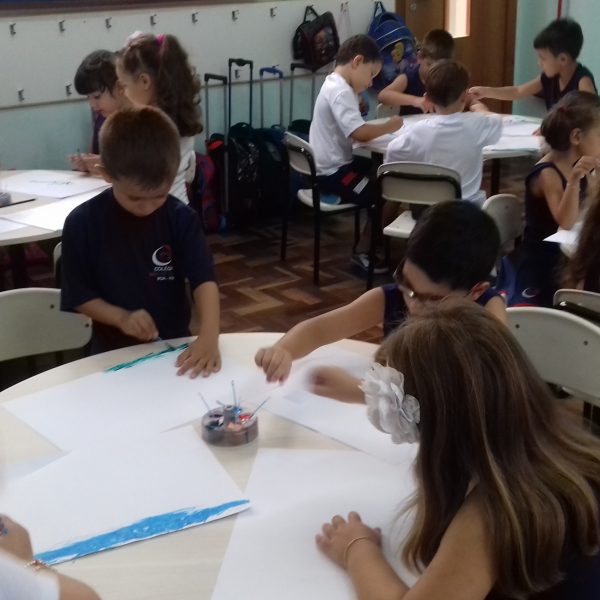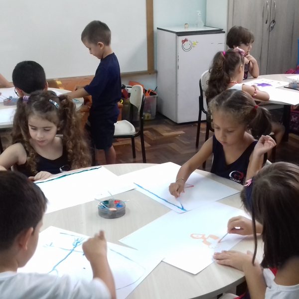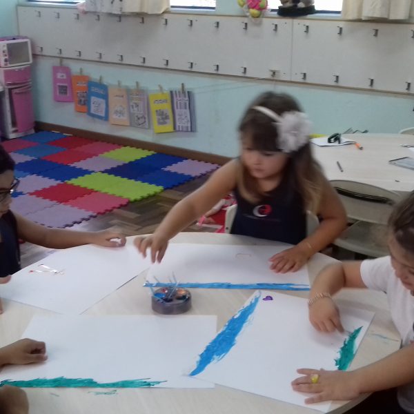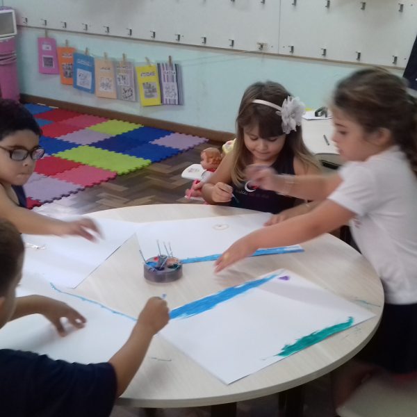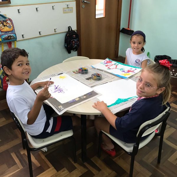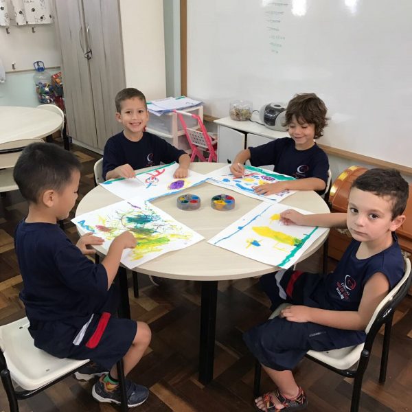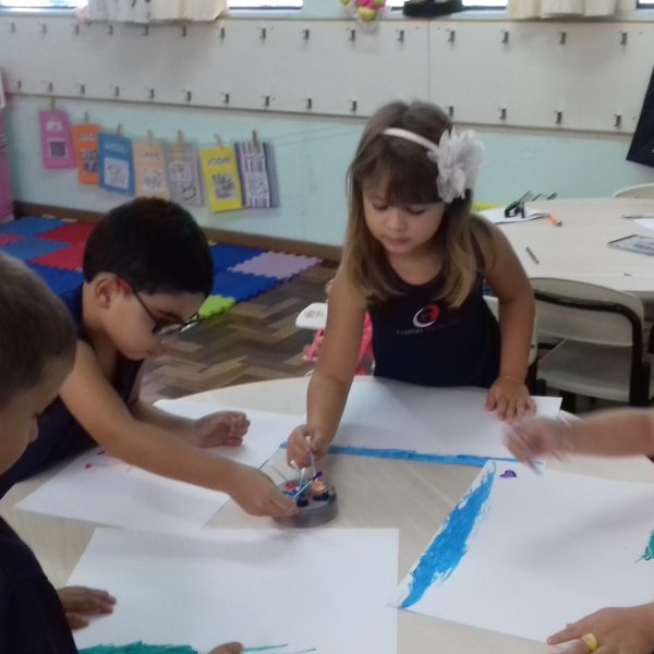 Pensando que a Educação Infantil possui o ambiente mais adequado para o desenvolvimento da expressão, as crianças do Nível 3 trabalharam com pintura já nestes primeiros dias de aula. A pintura na Educação Infantil possibilita a criança conhecer e aprimorar a sua coordenação motora, conhecer novas cores, desenvolver novas formas através da imaginação, dentre tantas outras aprendizagens.
