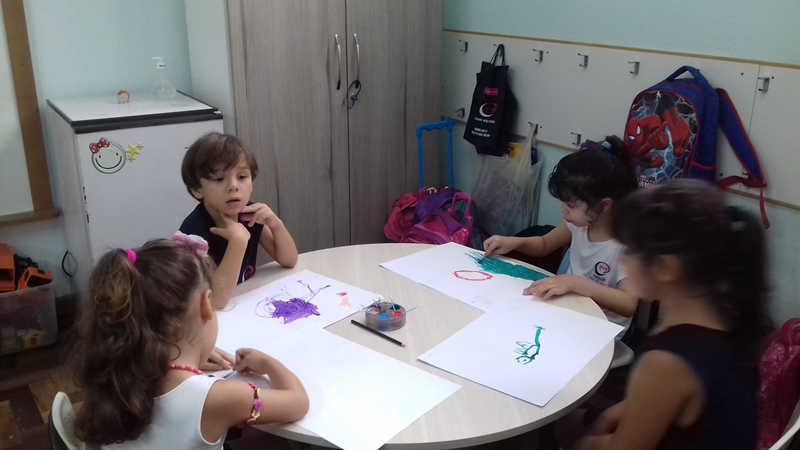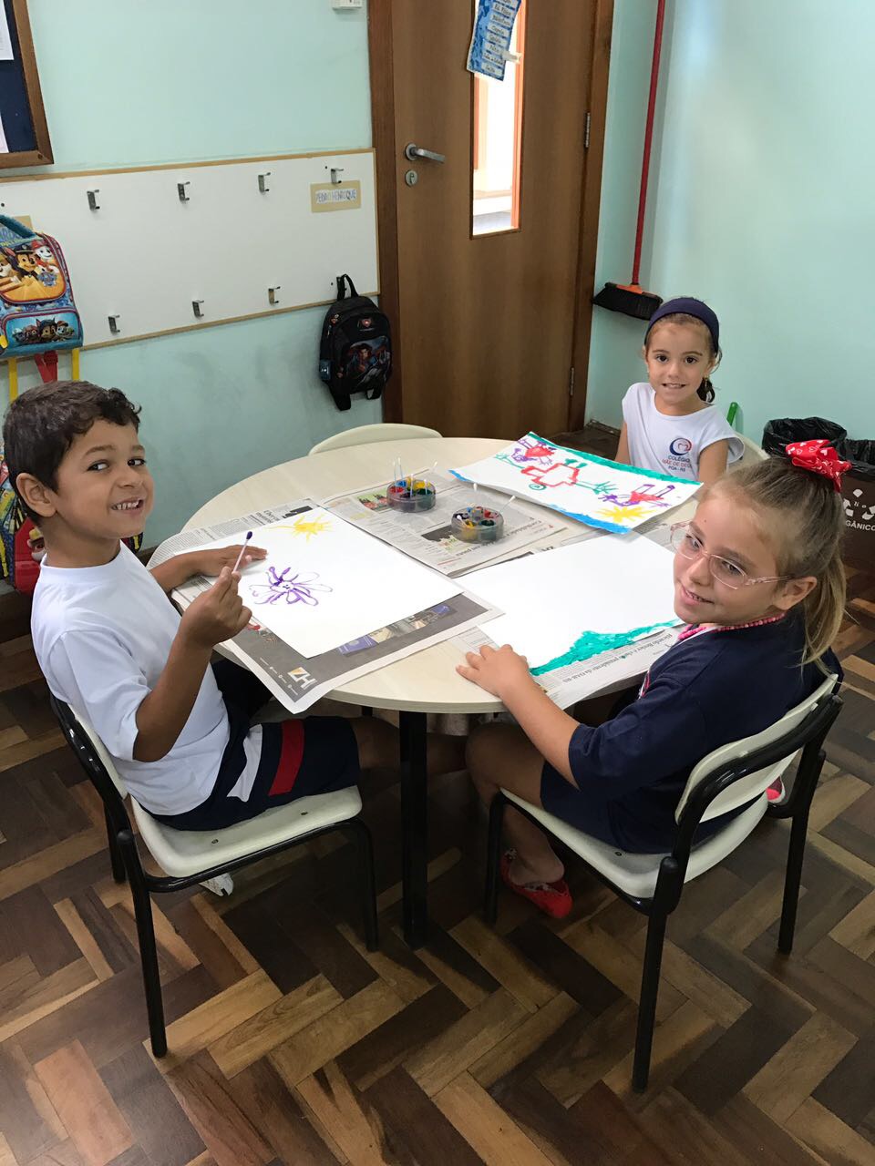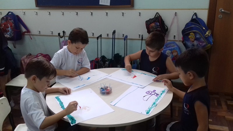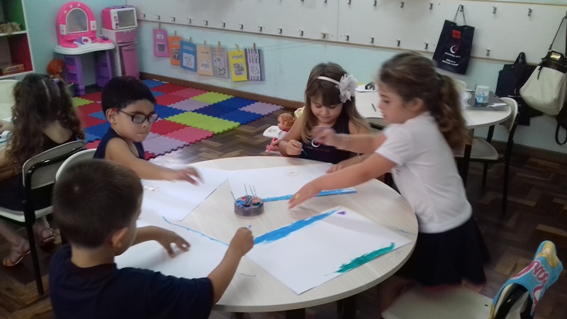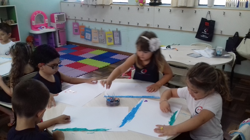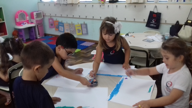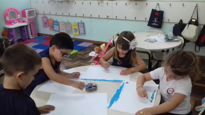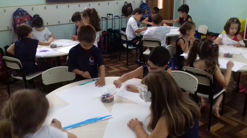 Pensando que a Educação Infantil possui o ambiente mais adequado para o desenvolvimento da expressão, as crianças do Nível 3 trabalharam com pintura já nestes primeiros dias de aula. A pintura na Educação Infantil possibilita a criança conhecer e aprimorar a sua coordenação motora, conhecer novas cores, desenvolver novas formas através da imaginação, dentre tantas outras aprendizagens.