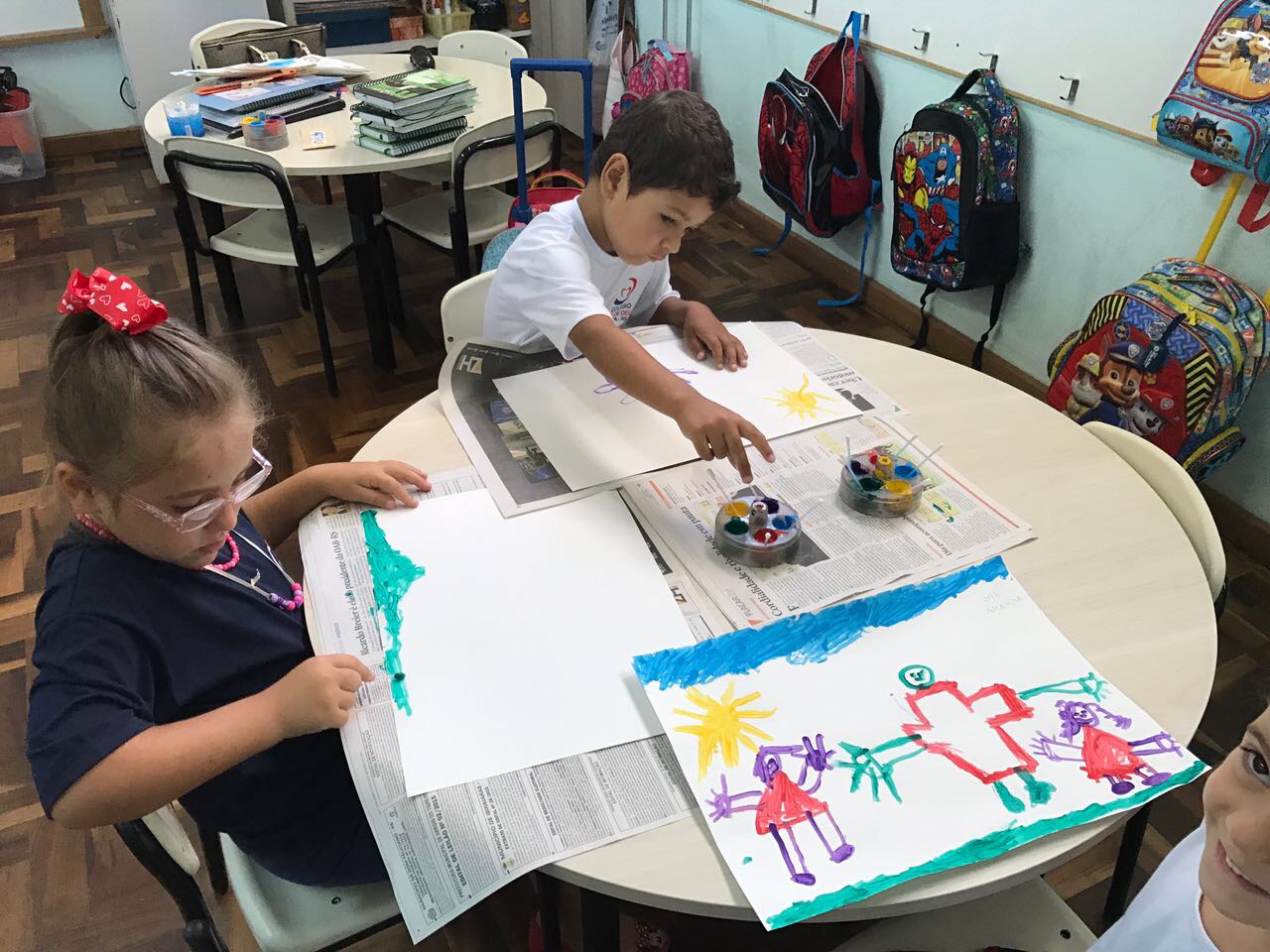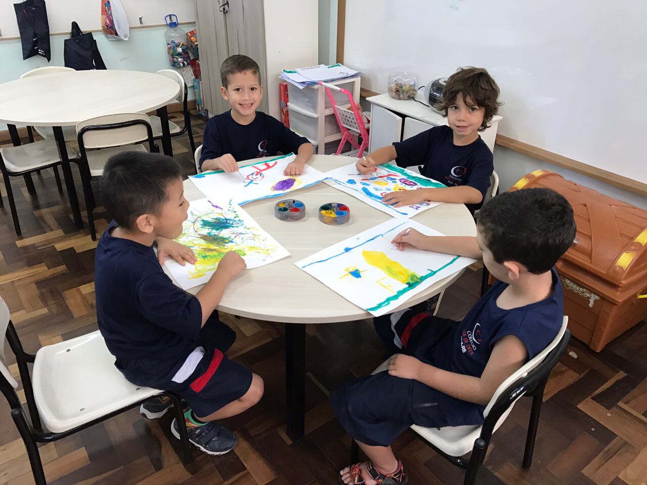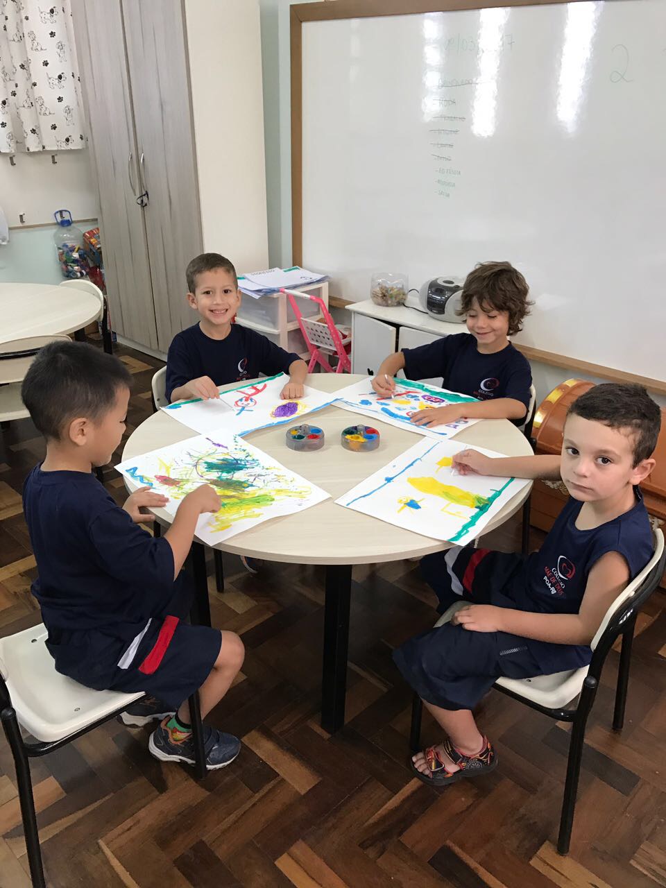 Pensando que a Educação Infantil possui o ambiente mais adequado para o desenvolvimento da expressão, as crianças do Nível 3 trabalharam com pintura já nestes primeiros dias de aula. A pintura na Educação Infantil possibilita a criança conhecer e aprimorar a sua coordenação motora, conhecer novas cores, desenvolver novas formas através da imaginação, dentre tantas outras aprendizagens.