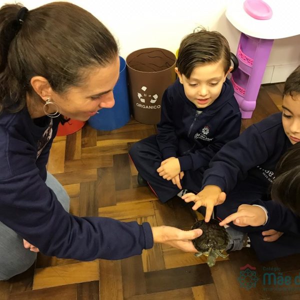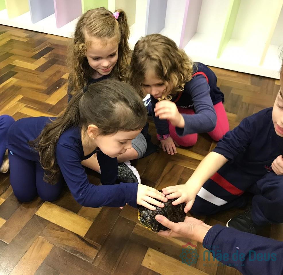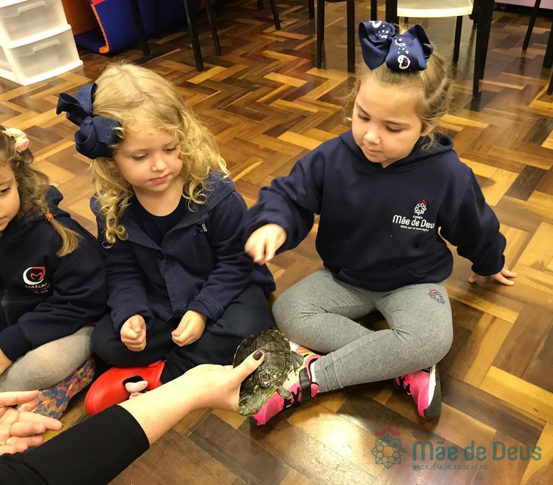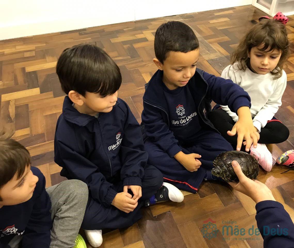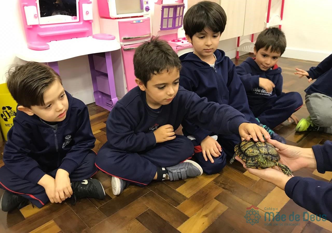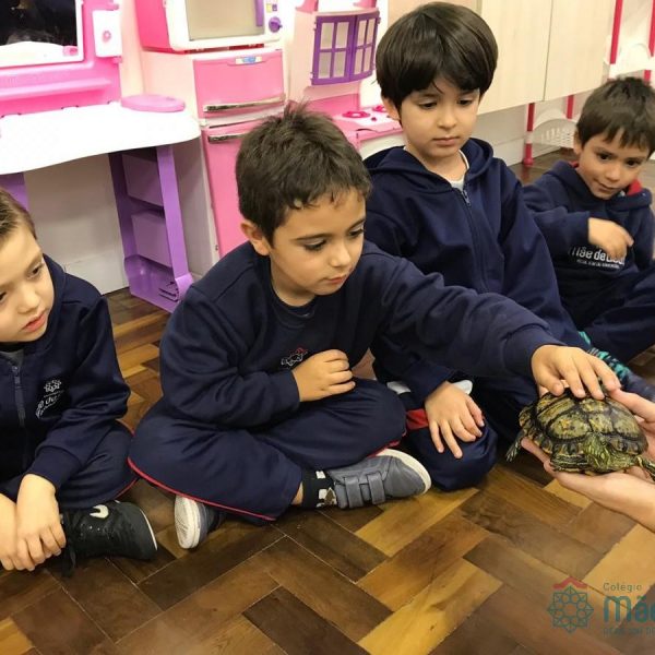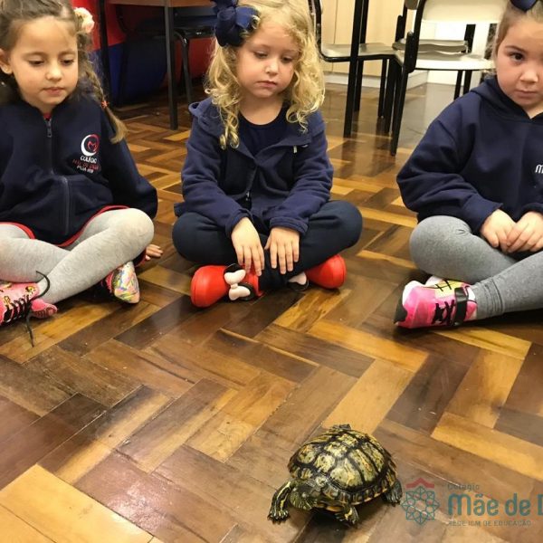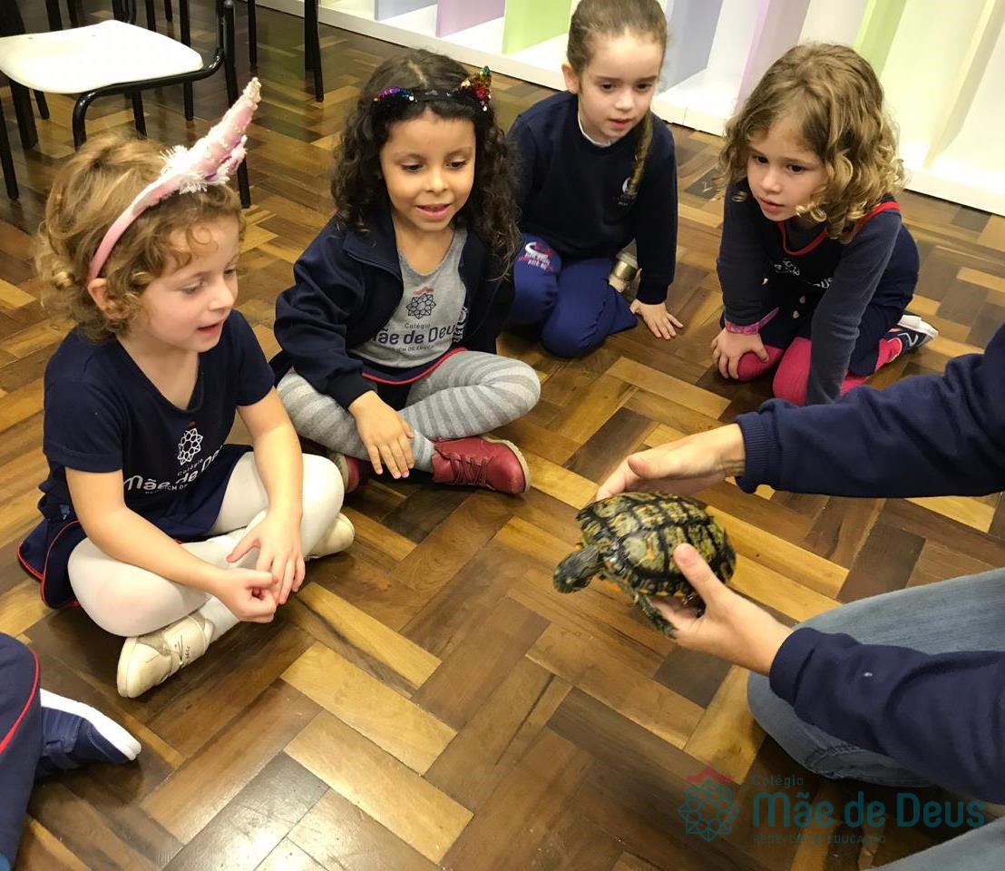 No dia 28 de maio, os alunos do Pré 1 do turno da tarde, receberam uma visita muito especial da veterinária Fabiana Severo e suas 3 tartarugas.