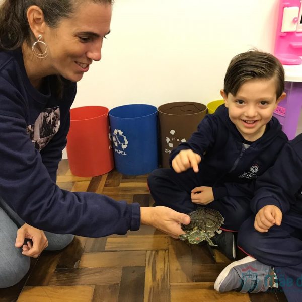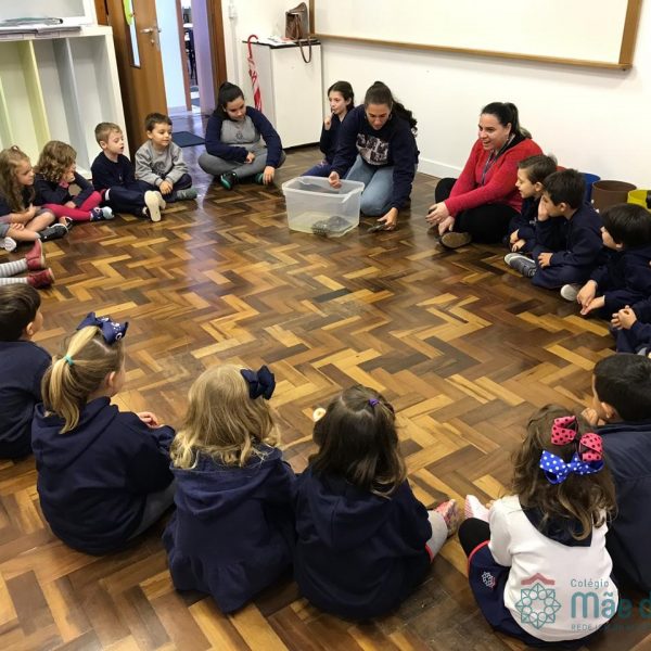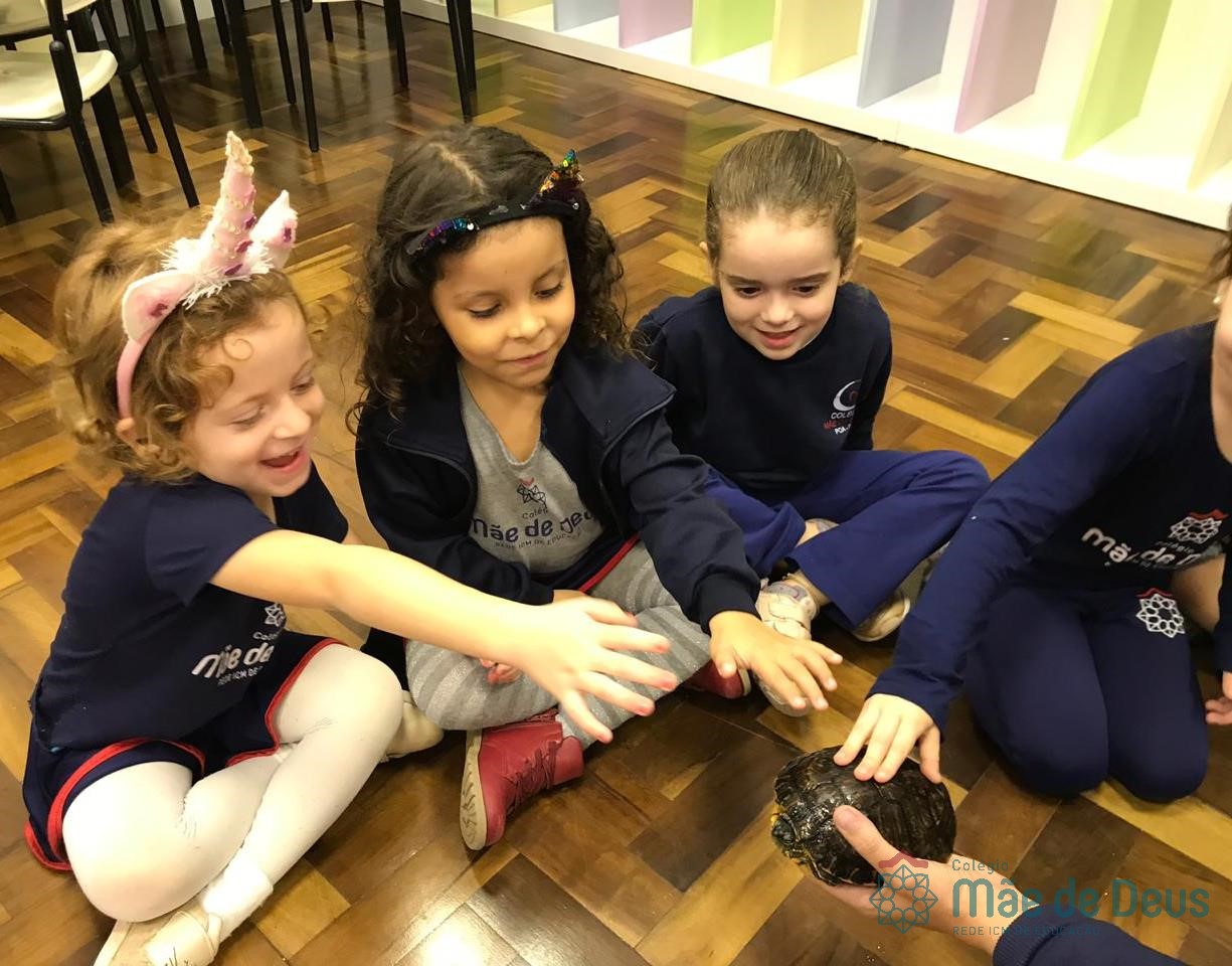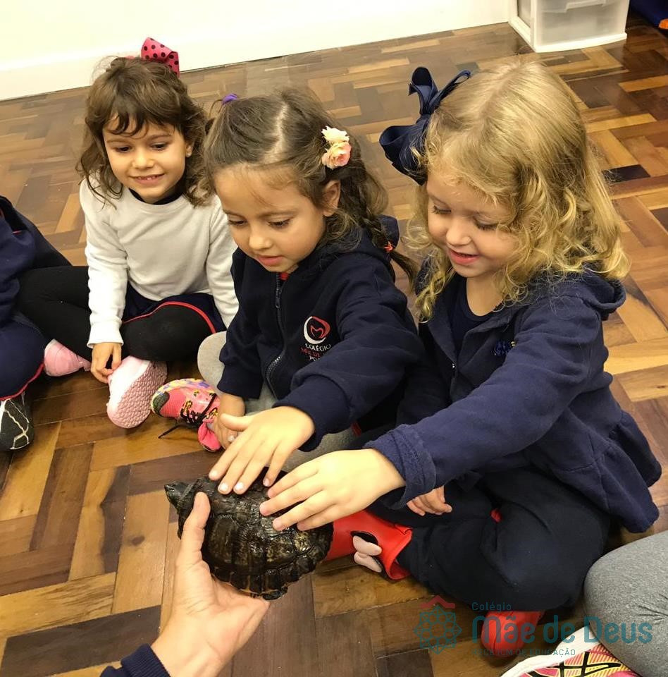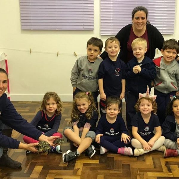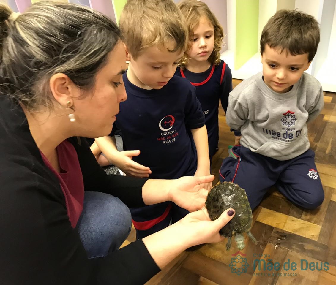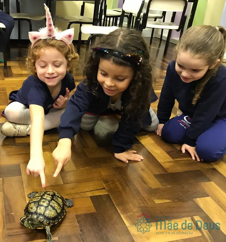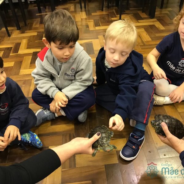 No dia 28 de maio, os alunos do Pré 1 do turno da tarde, receberam uma visita muito especial da veterinária Fabiana Severo e suas 3 tartarugas.