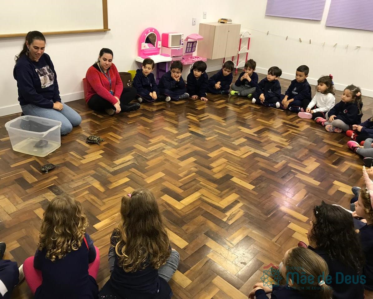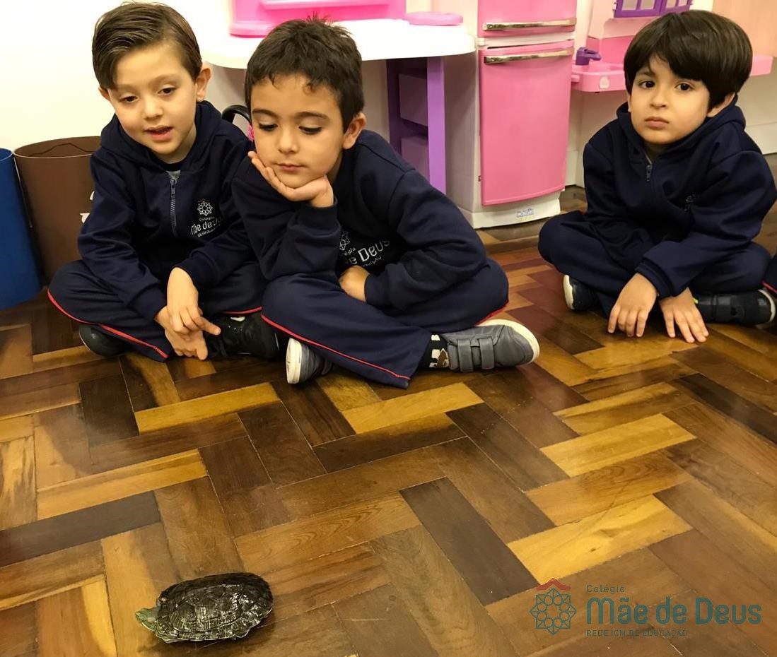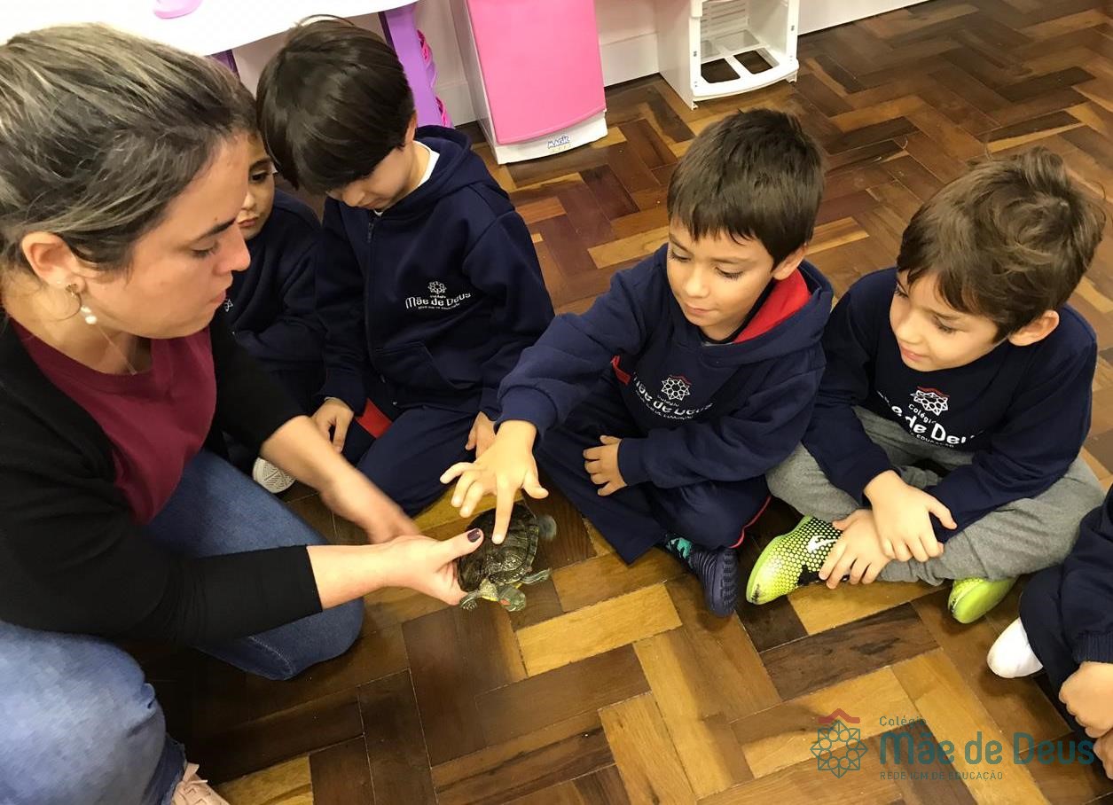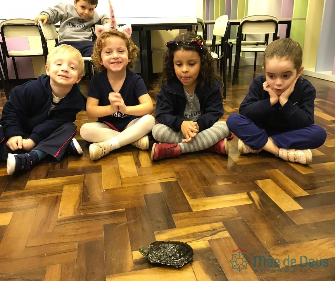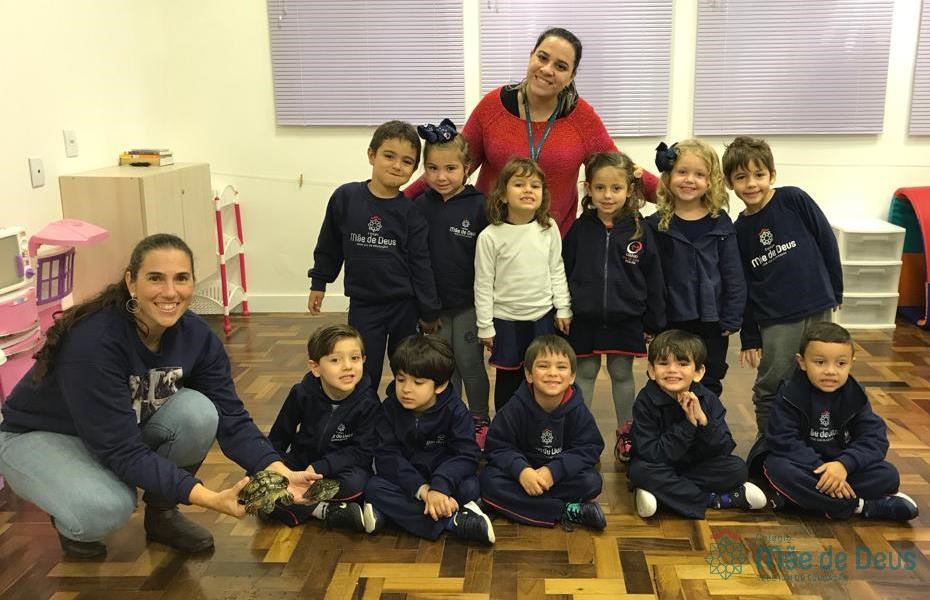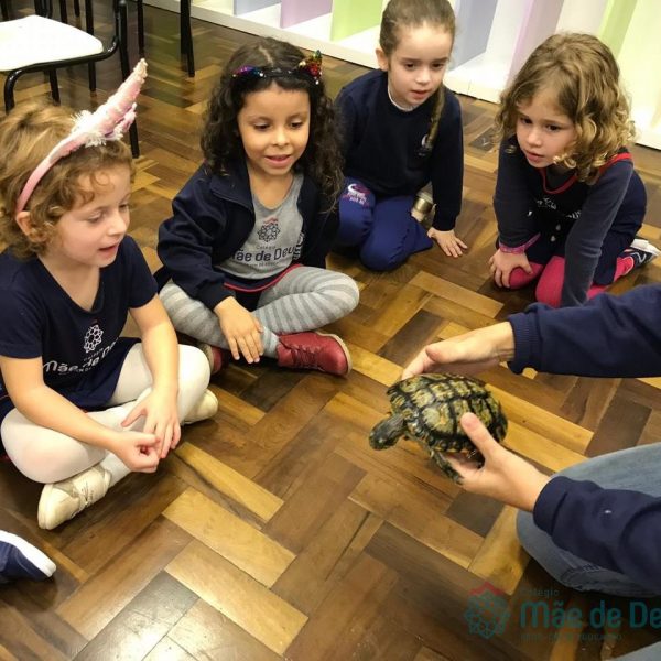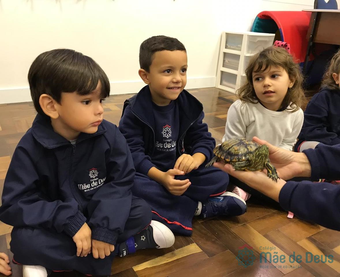 No dia 28 de maio, os alunos do Pré 1 do turno da tarde, receberam uma visita muito especial da veterinária Fabiana Severo e suas 3 tartarugas.