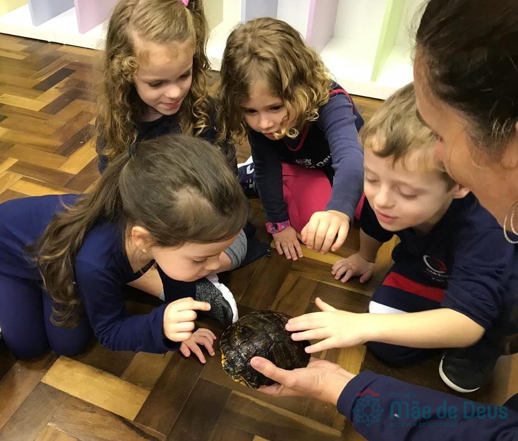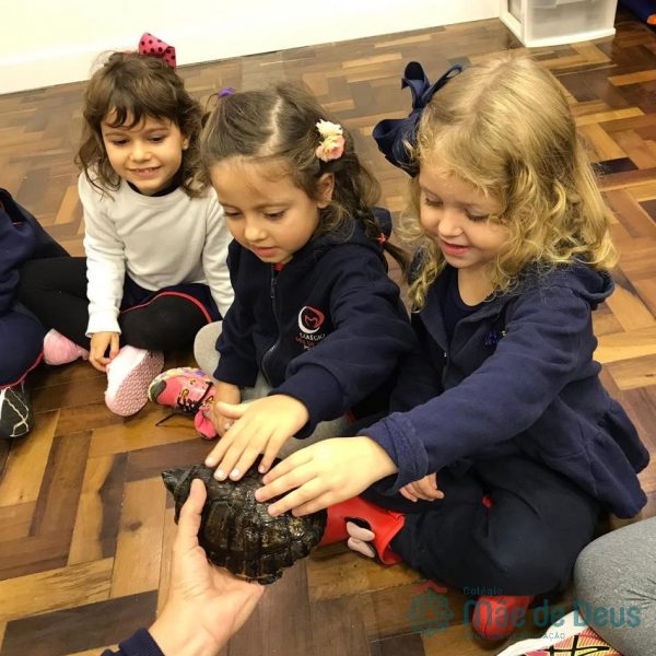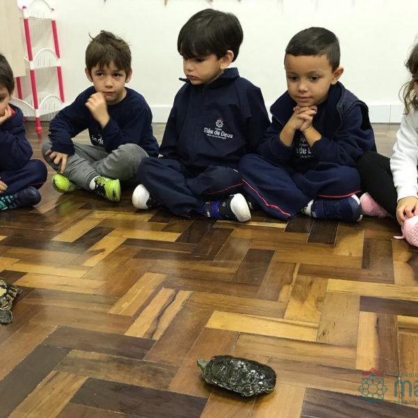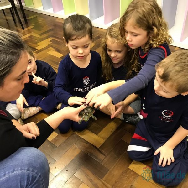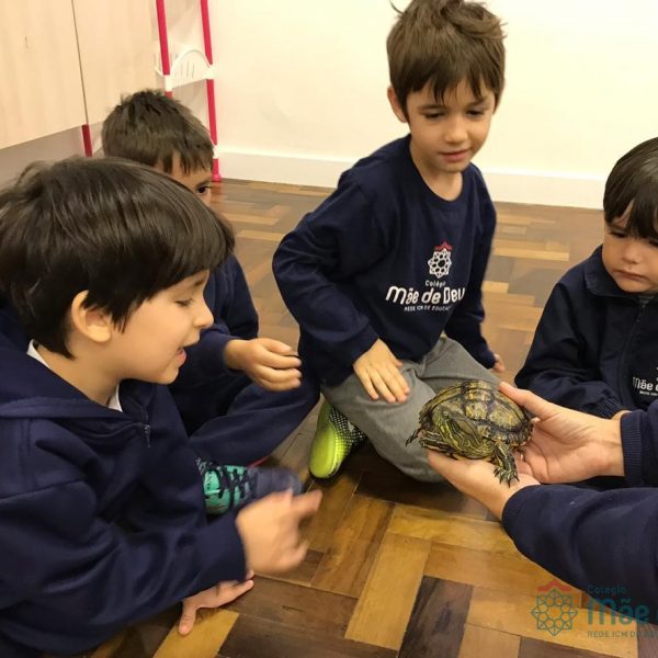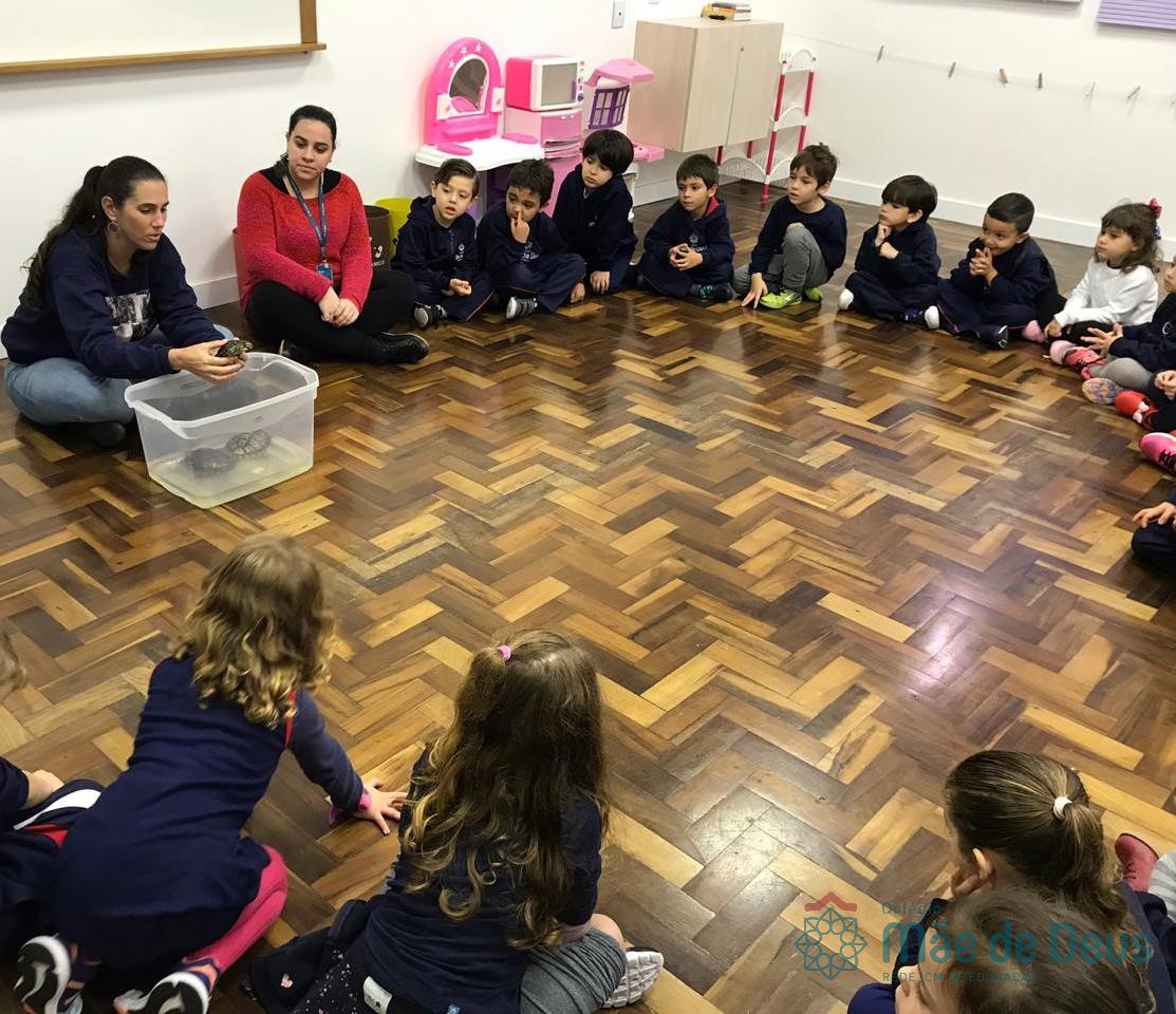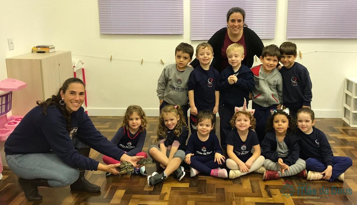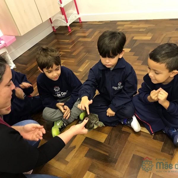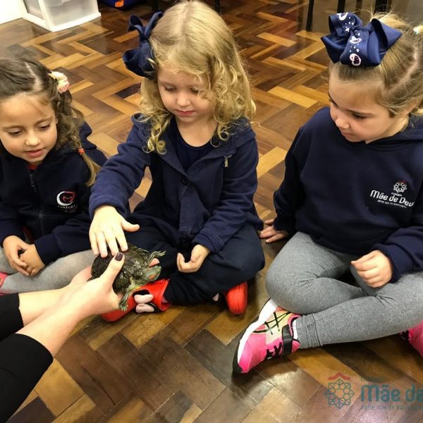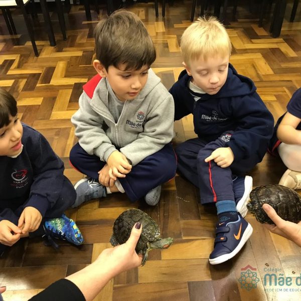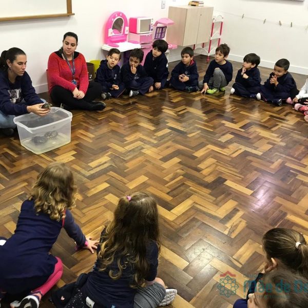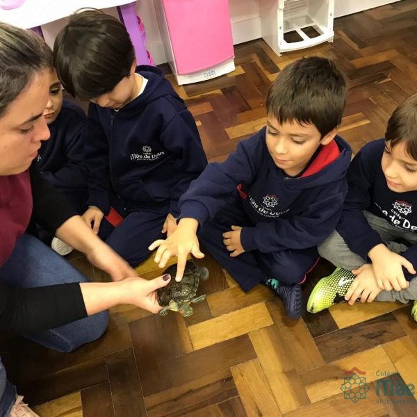 No dia 28 de maio, os alunos do Pré 1 do turno da tarde, receberam uma visita muito especial da veterinária Fabiana Severo e suas 3 tartarugas.