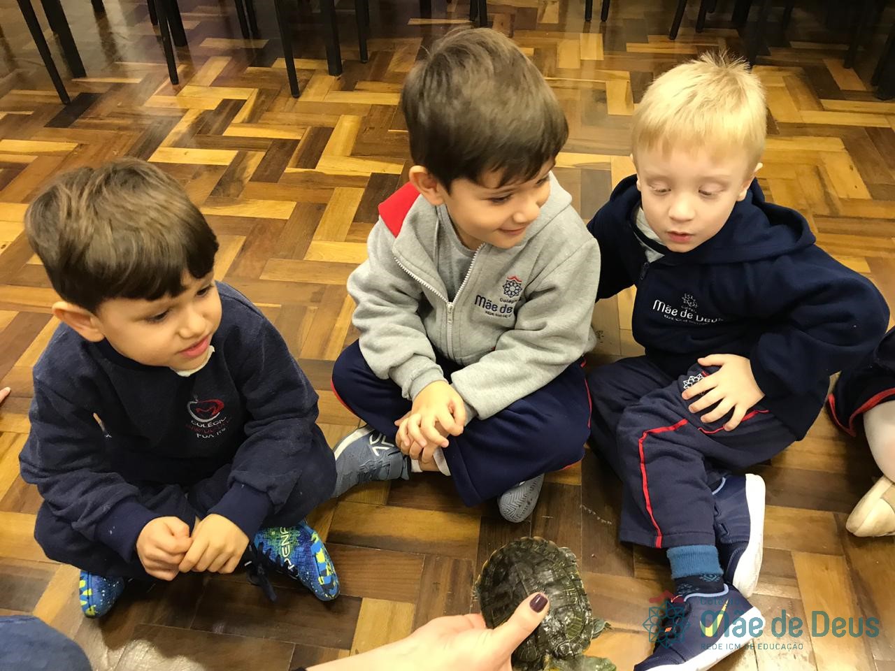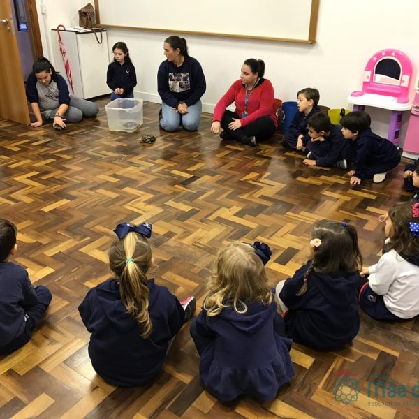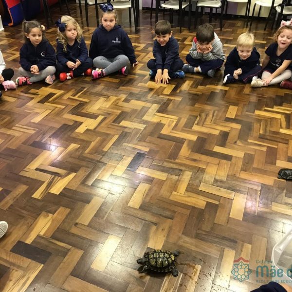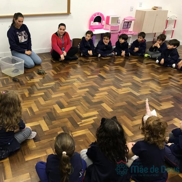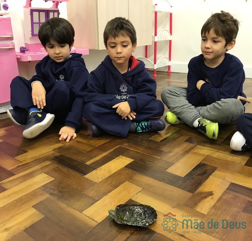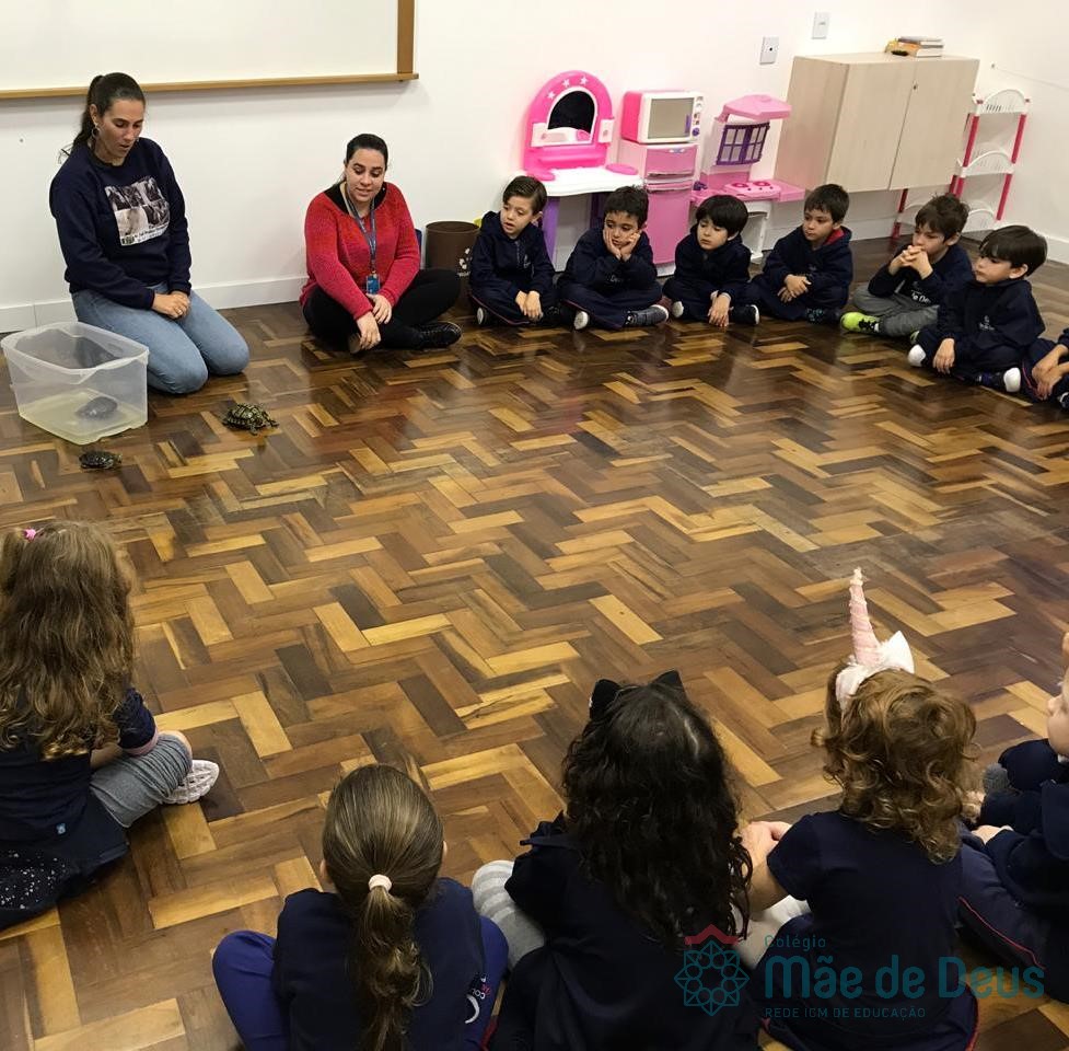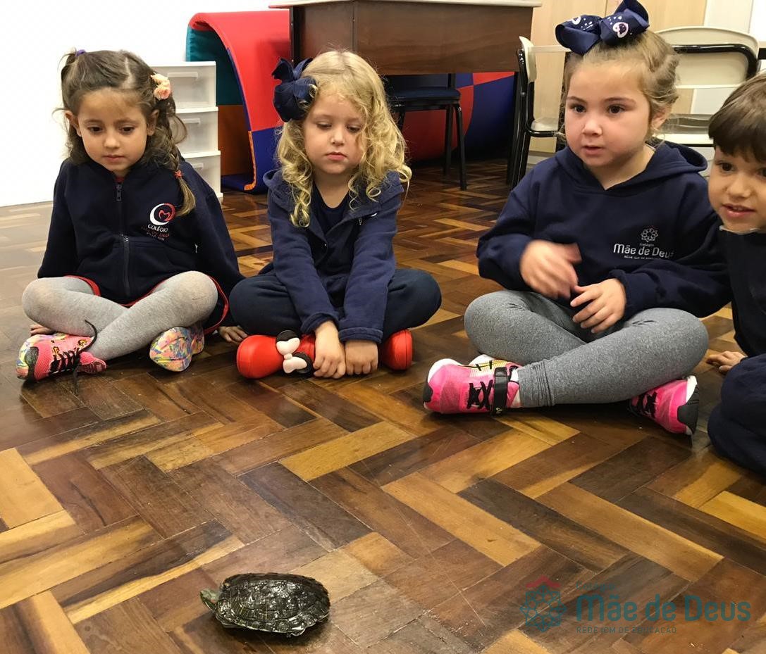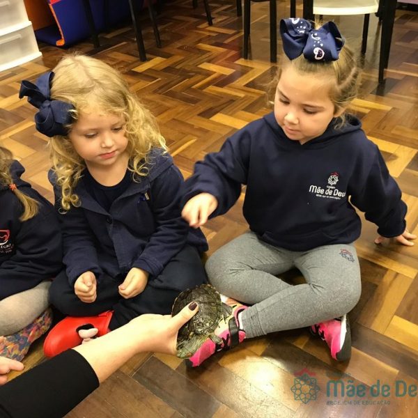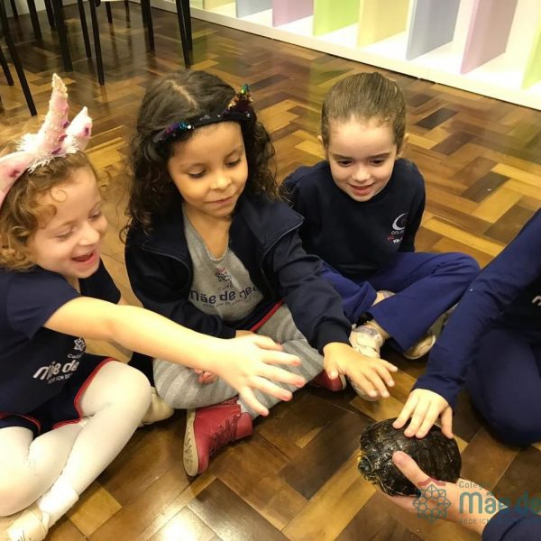 No dia 28 de maio, os alunos do Pré 1 do turno da tarde, receberam uma visita muito especial da veterinária Fabiana Severo e suas 3 tartarugas.