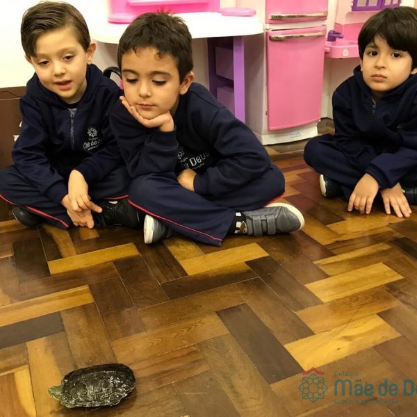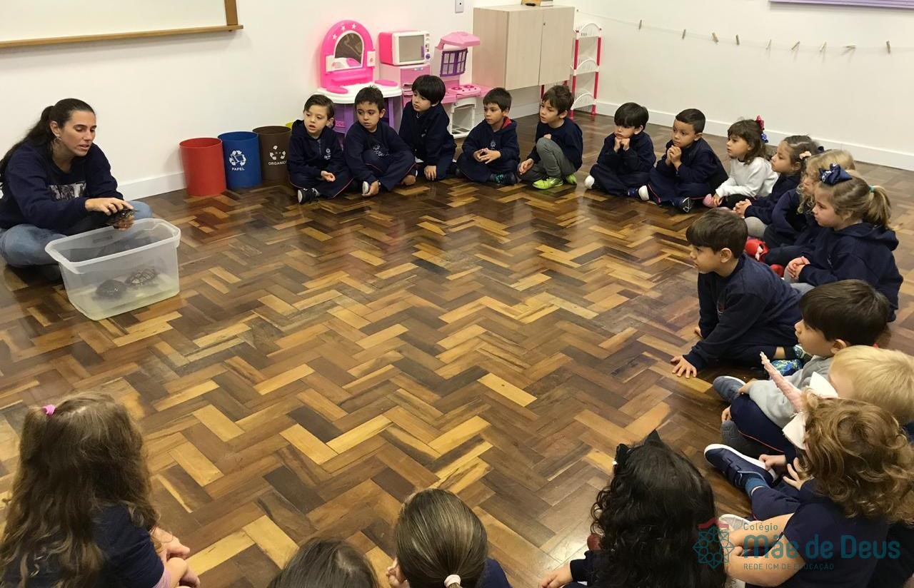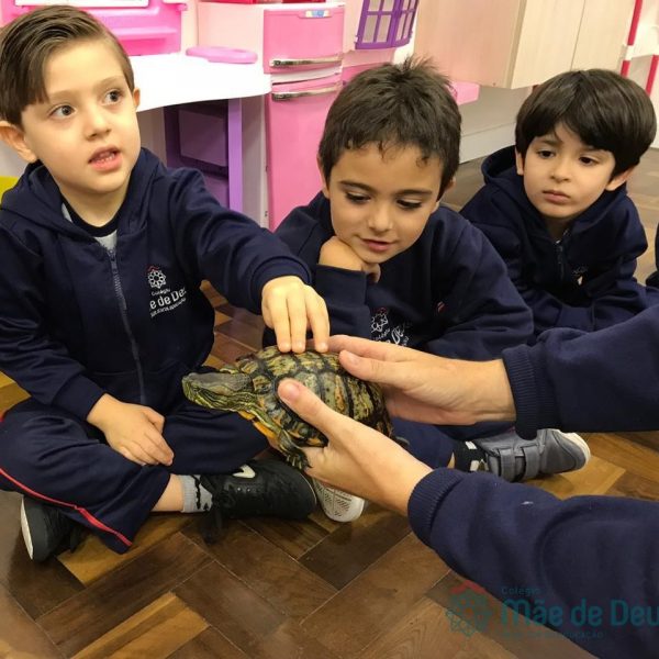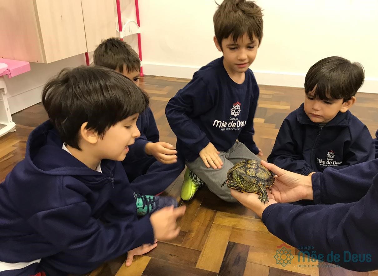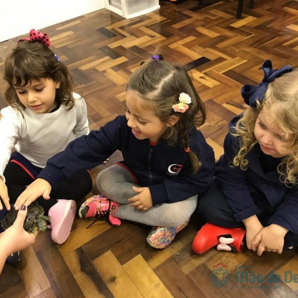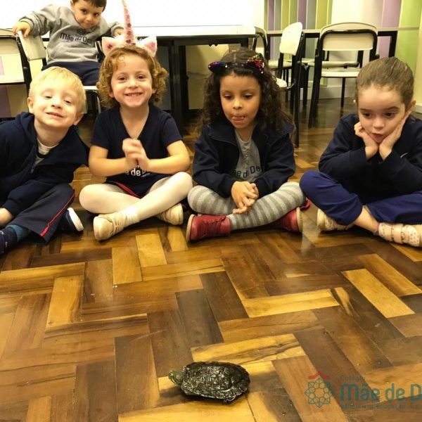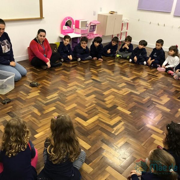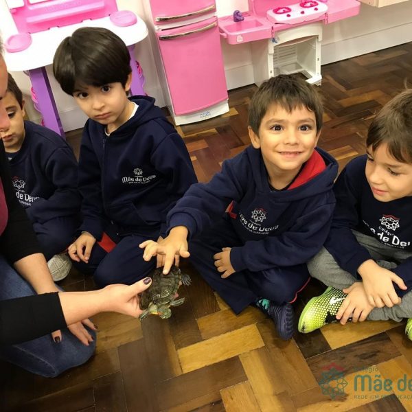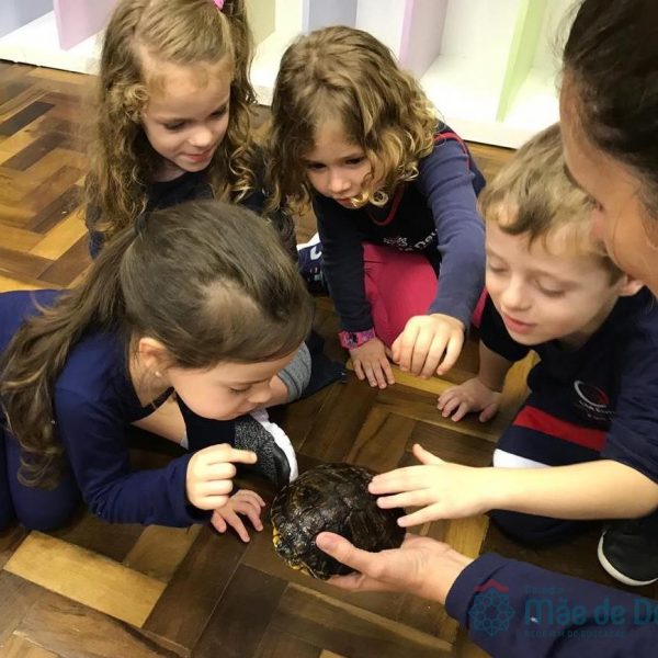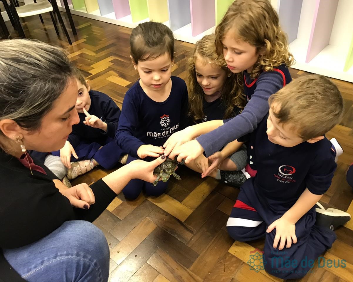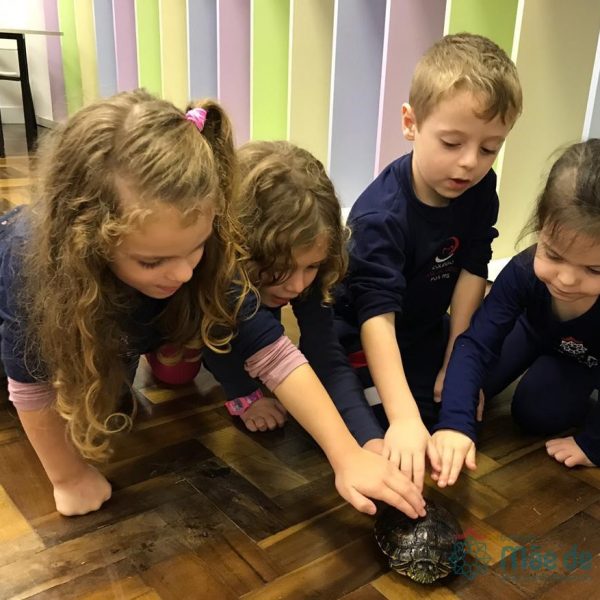 No dia 28 de maio, os alunos do Pré 1 do turno da tarde, receberam uma visita muito especial da veterinária Fabiana Severo e suas 3 tartarugas.