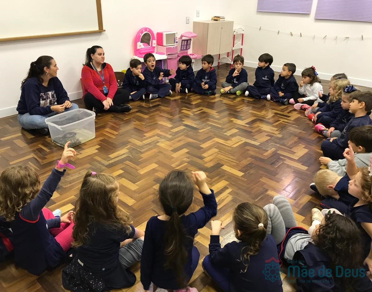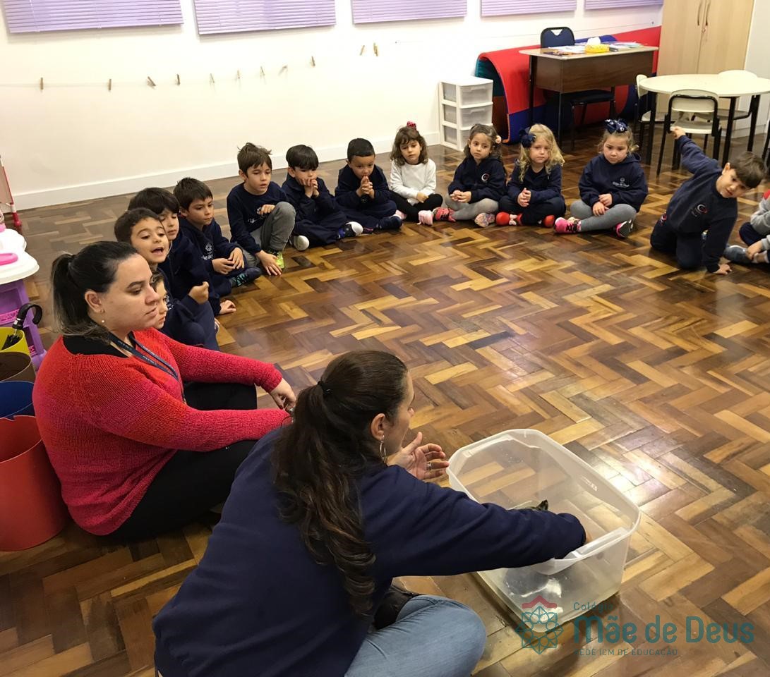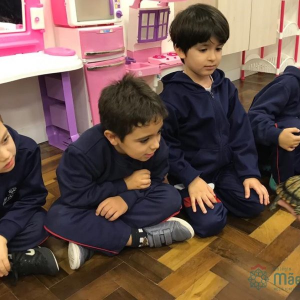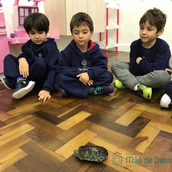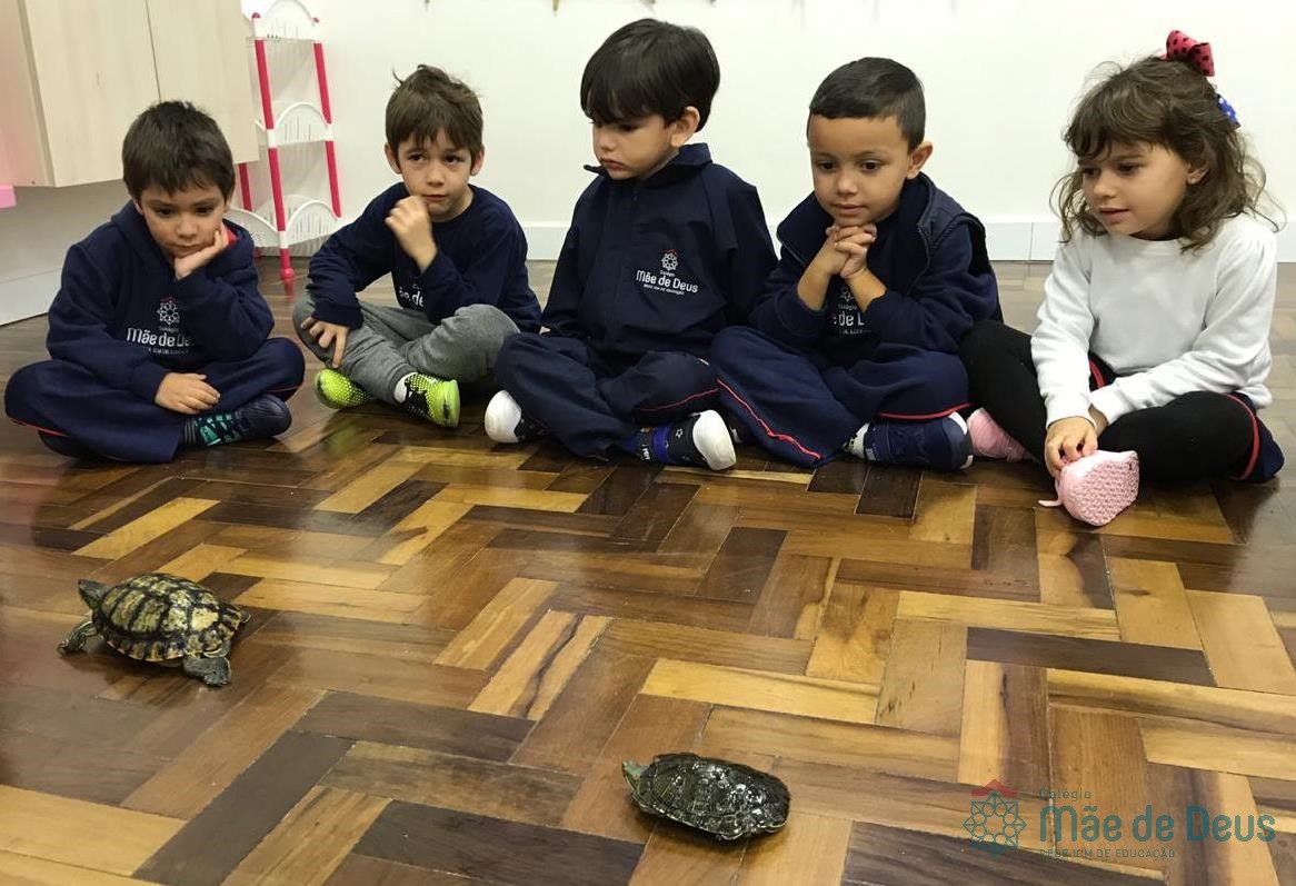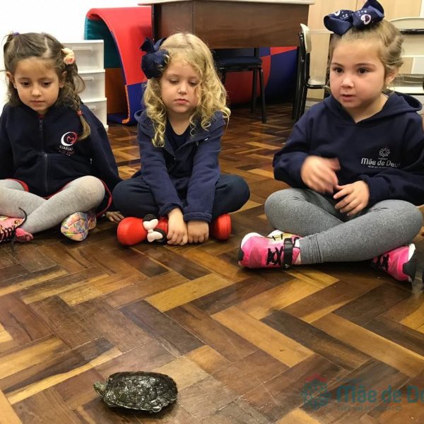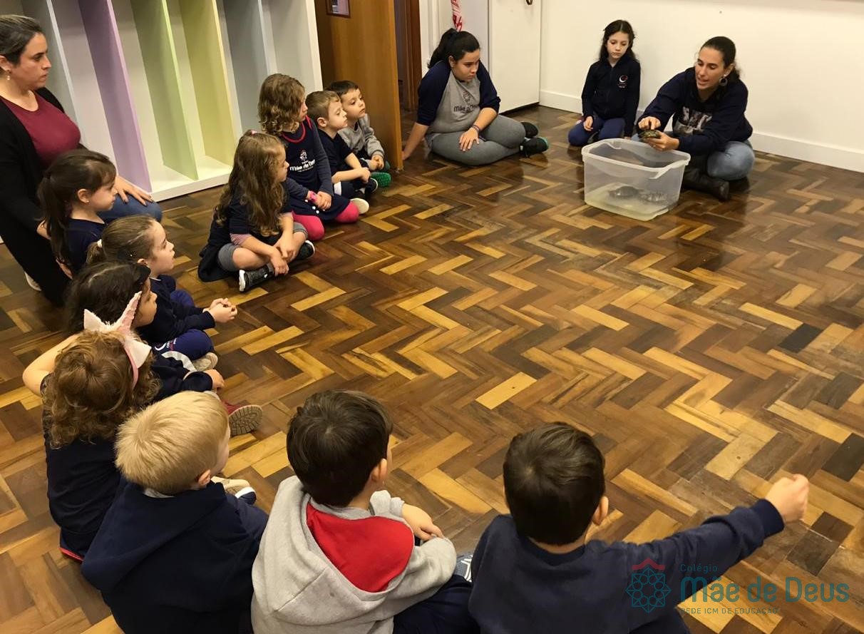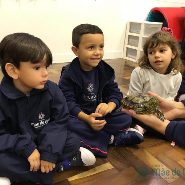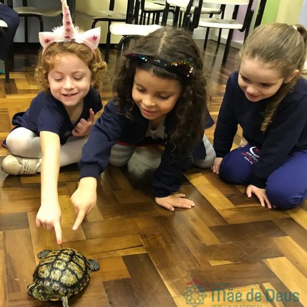 No dia 28 de maio, os alunos do Pré 1 do turno da tarde, receberam uma visita muito especial da veterinária Fabiana Severo e suas 3 tartarugas.