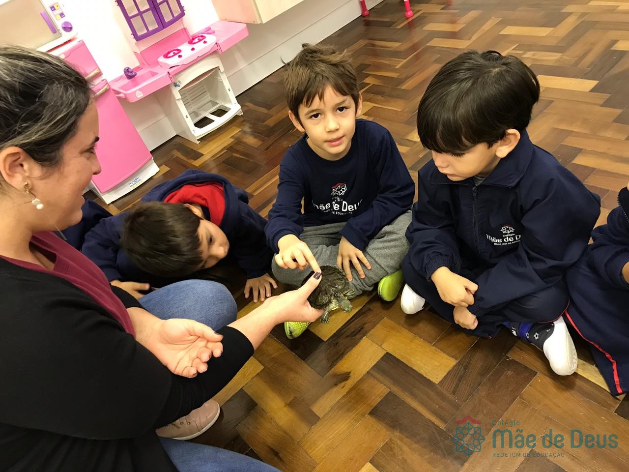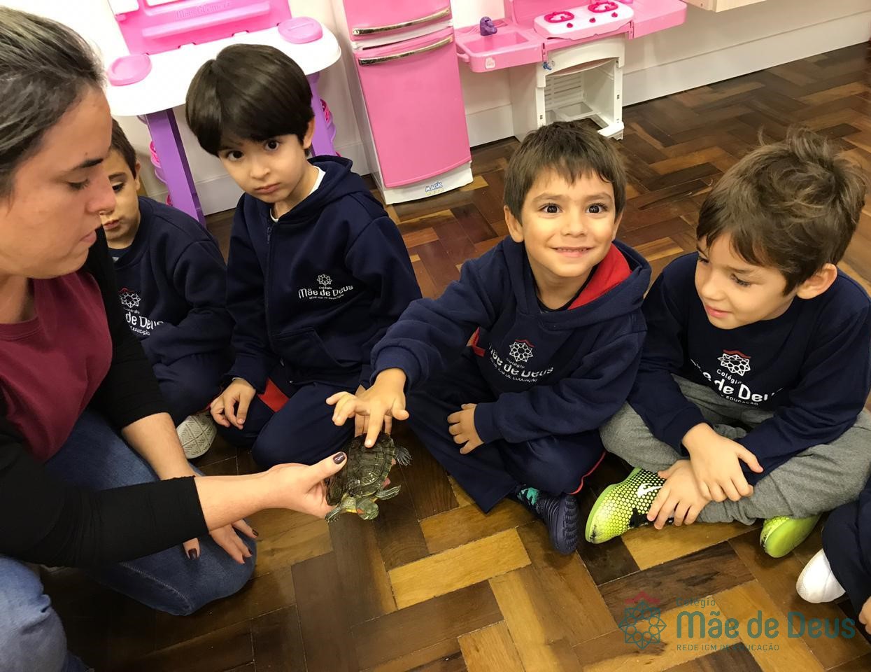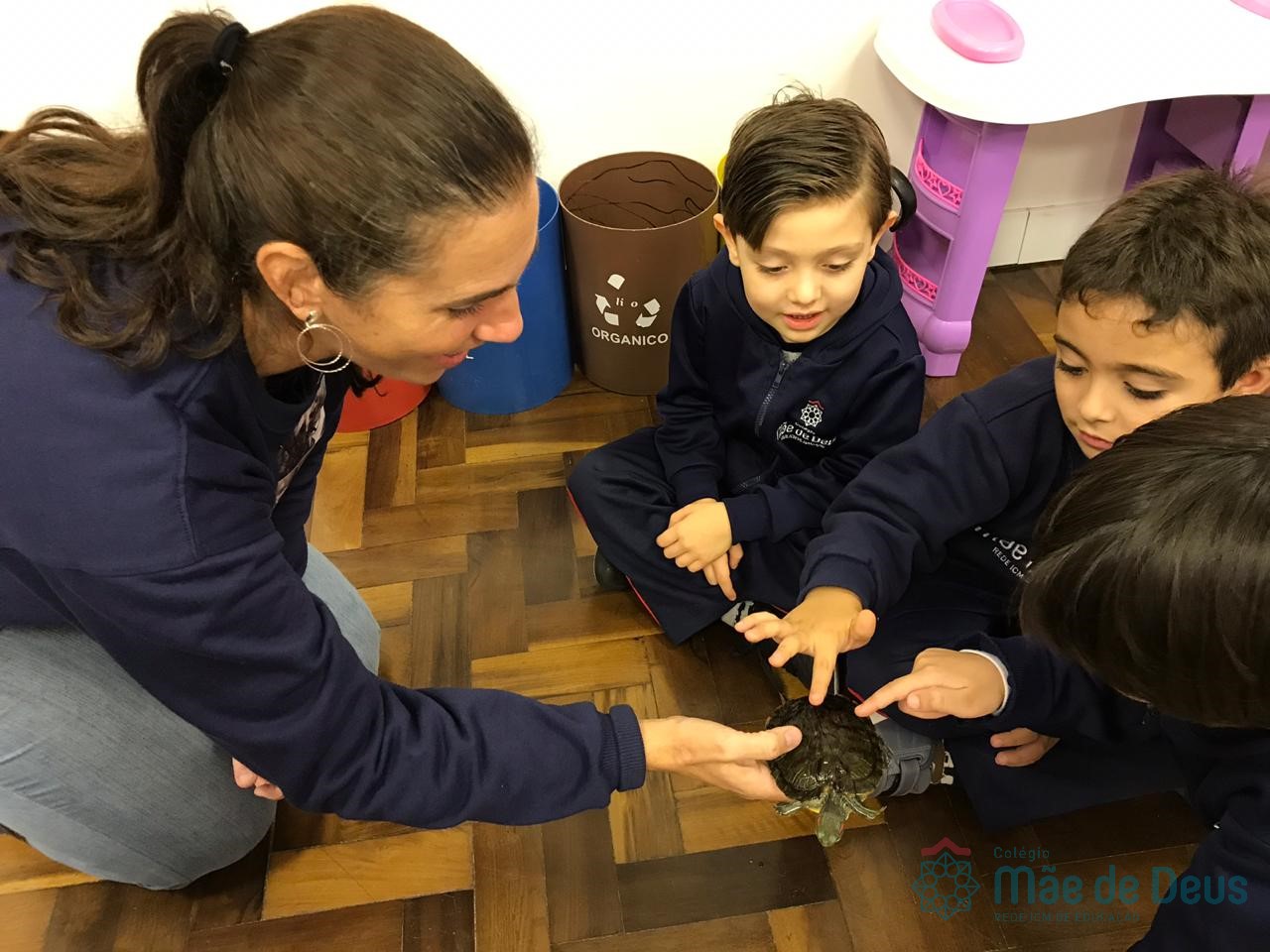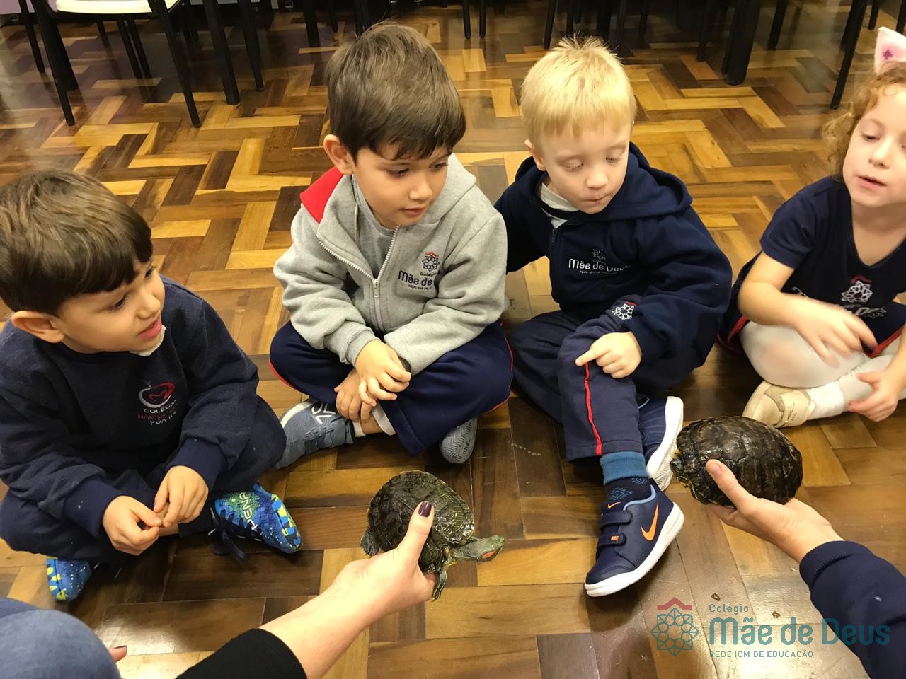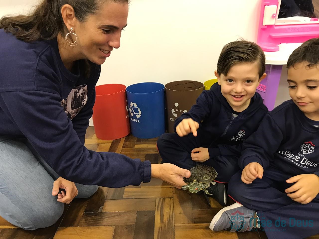 No dia 28 de maio, os alunos do Pré 1 do turno da tarde, receberam uma visita muito especial da veterinária Fabiana Severo e suas 3 tartarugas.
