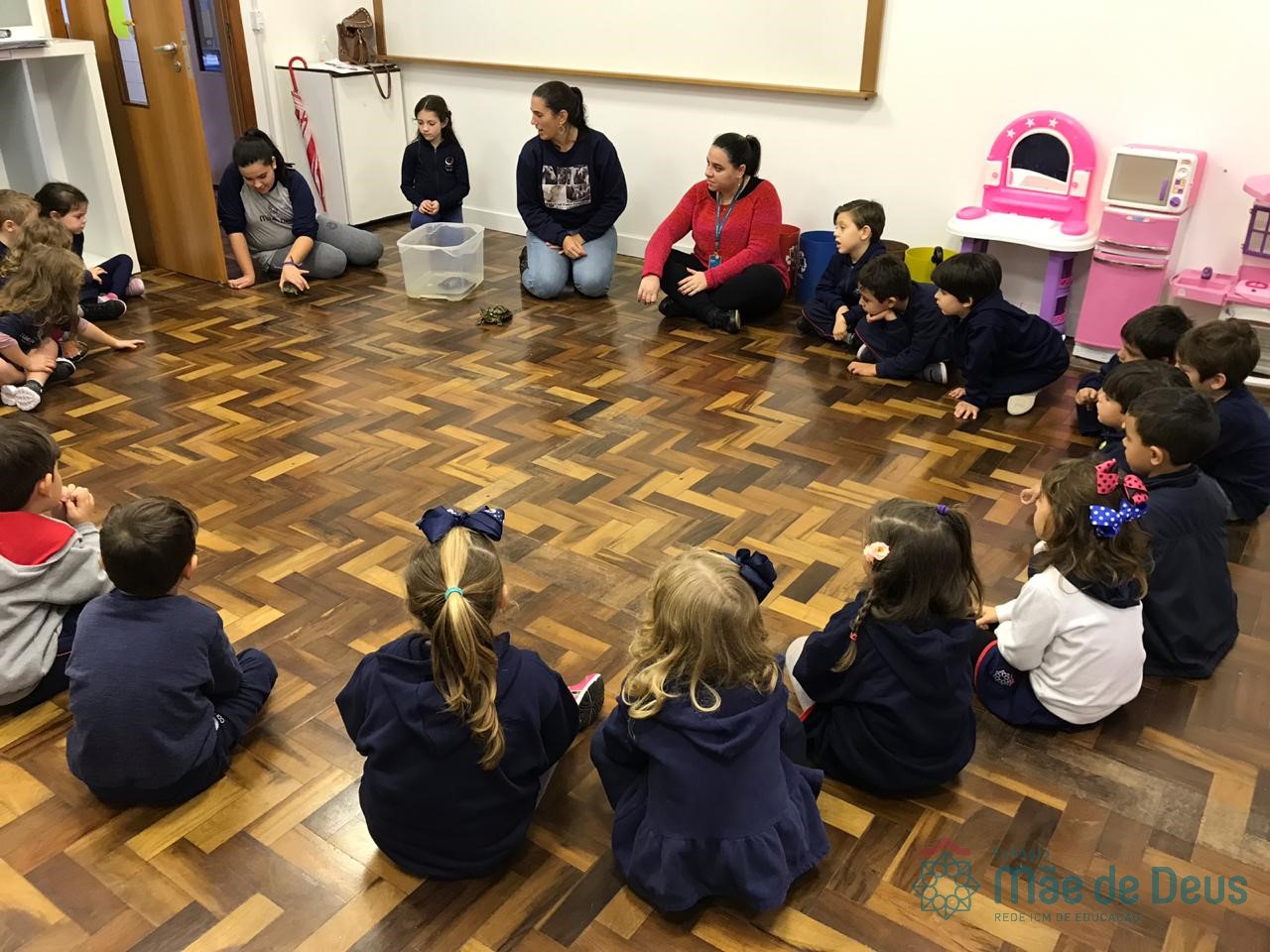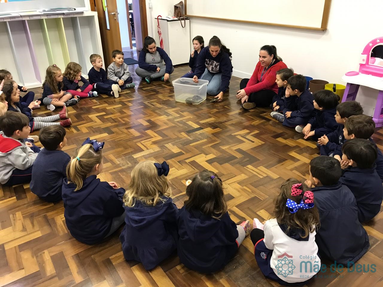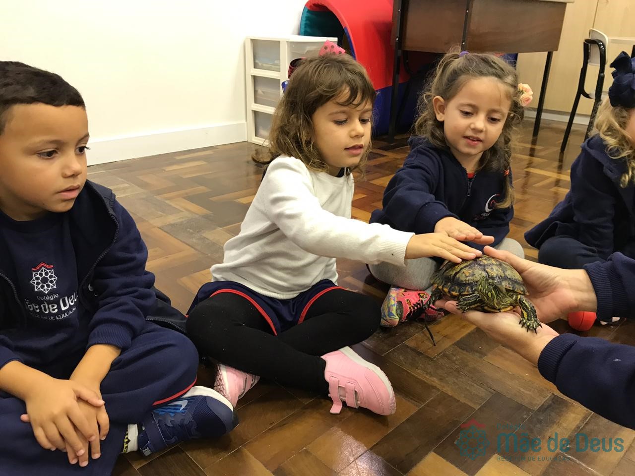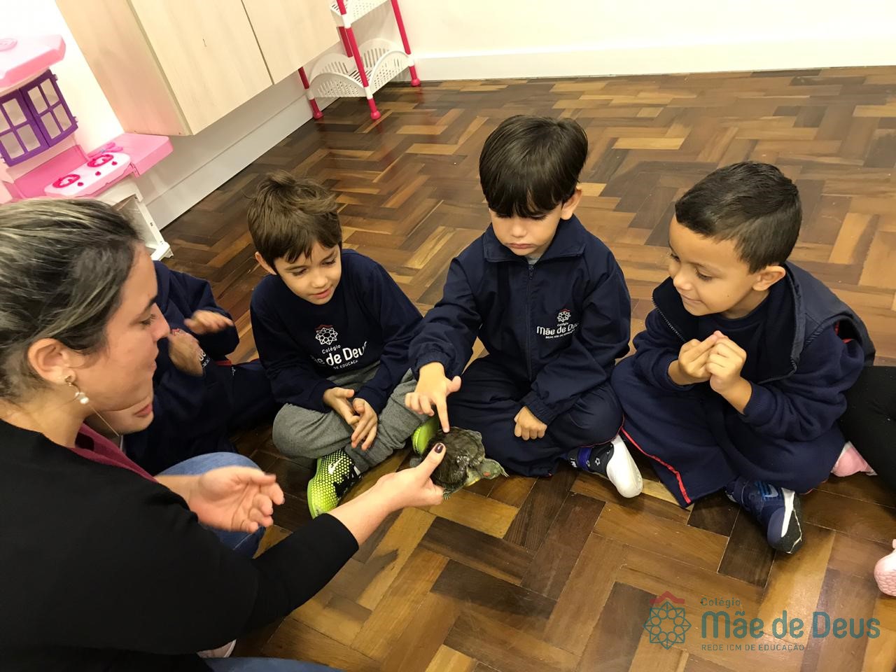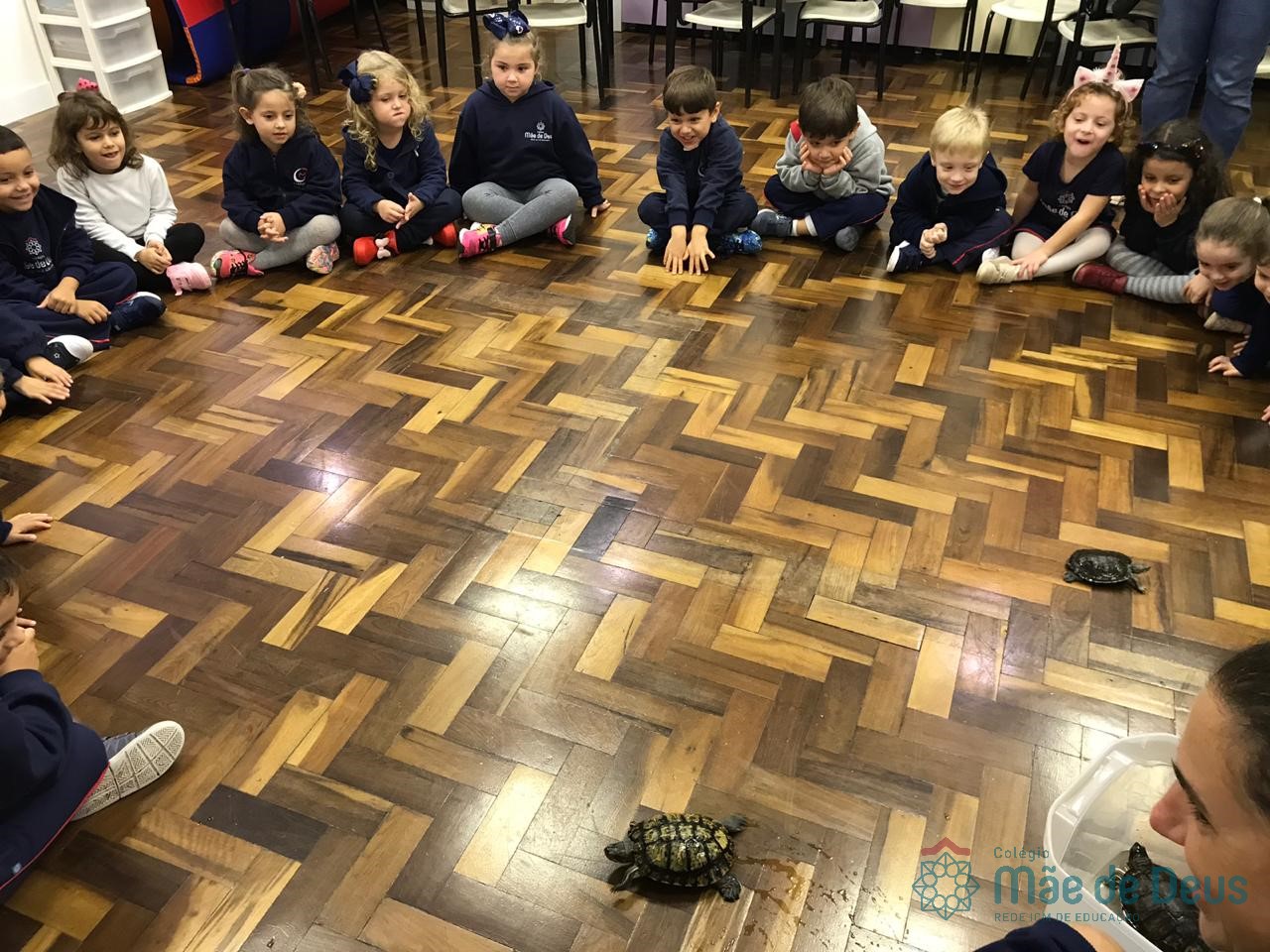 No dia 28 de maio, os alunos do Pré 1 do turno da tarde, receberam uma visita muito especial da veterinária Fabiana Severo e suas 3 tartarugas.