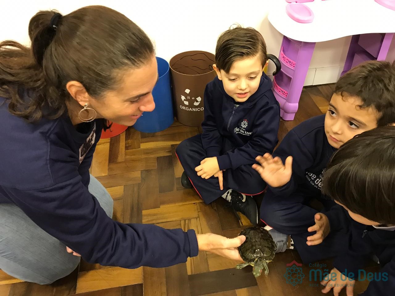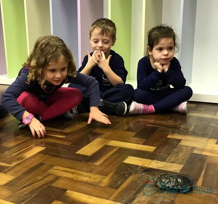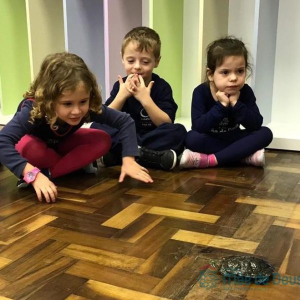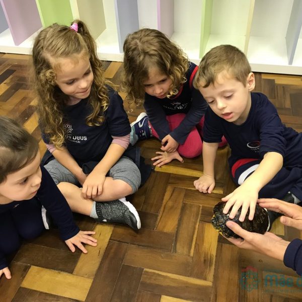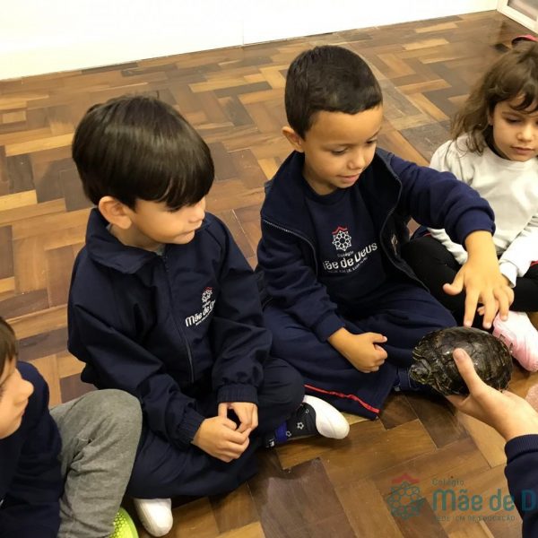 Durante esse momento, as crianças puderam aprender mais sobre esses animais, tirar as dúvidas e também interagir com as tartaruguinhas.