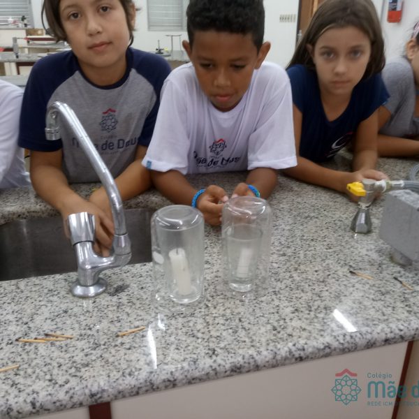 No dia 15 de abril, a turma 41 realizou sua primeira aula no laboratório de Química e Física. Foram feitos experimentos relacionados aos conteúdos trabalhados em Ciências da Natureza.