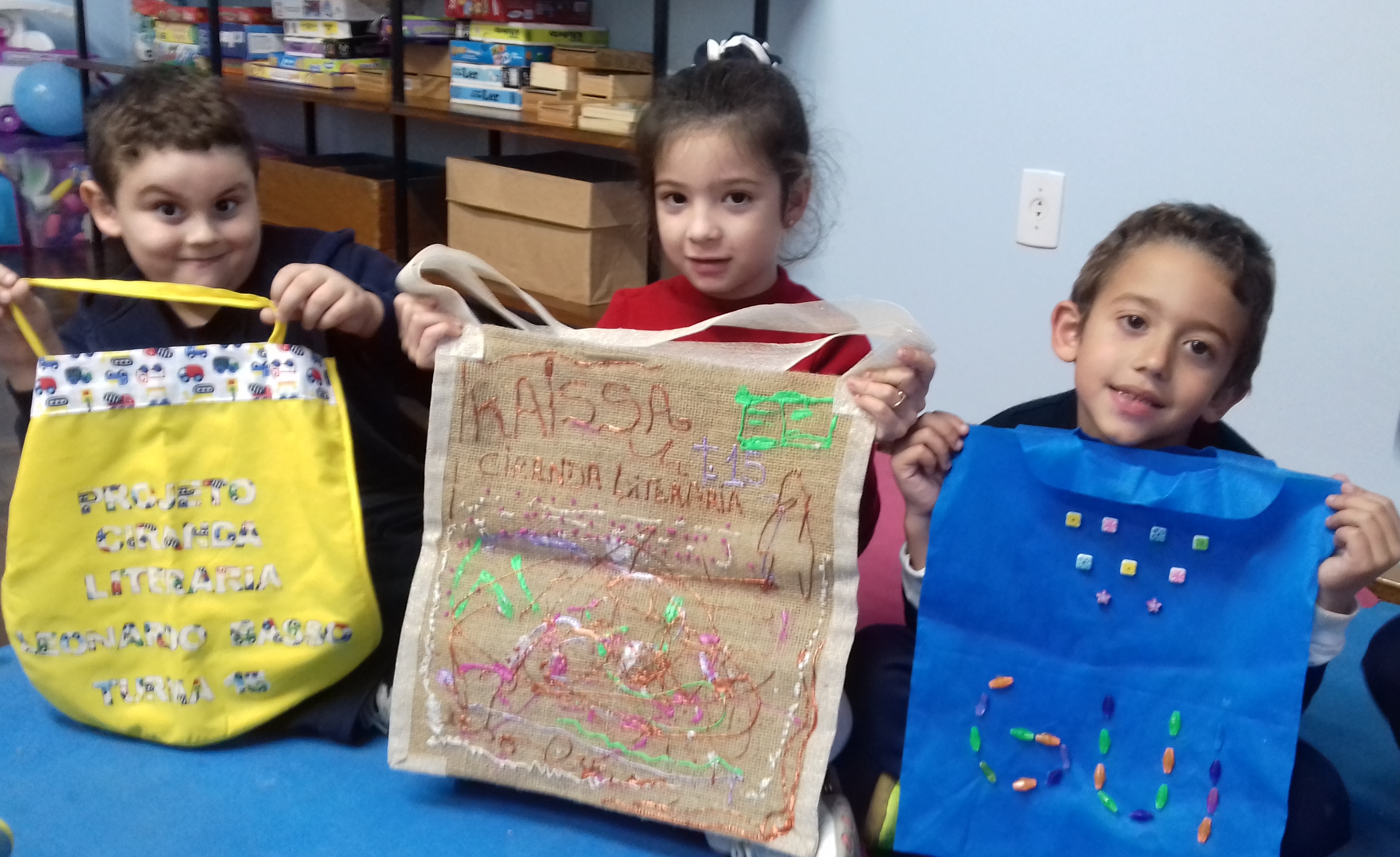 As sacolas literárias foram confeccionadas e customizadas com a participação das famílias, fortalecendo a personalidade de cada criança. Vamos ler, vamos criar, vamos cirandar!