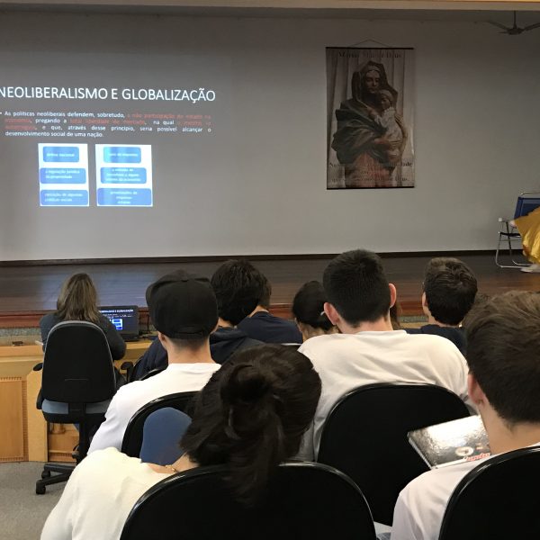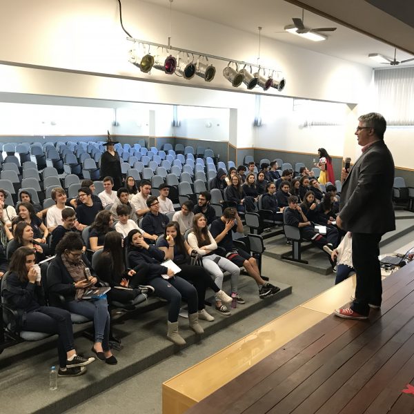 Com a disposição de oferecer aos estudantes ainda mais oportunidades de construção de conhecimentos significativos para a vida, realizou-se em nossa Escola, na sexta-feira, dia 20/10, o primeiro Aulão ENEM 2017, no qual os professores Alexandre Rosa, de Geografia; Carolina Bossle, de Biologia; Betina Rubin, de Redação; Andressa Geiser, de Matemática; e Alexandre Martins, de Língua Portuguesa, revisitaram habilidades e competências previamente desenvolvidas a fim de associar os conteúdos das diversas áreas do conhecimento requeridos nas provas do Exame Nacional do Ensino Médio.
