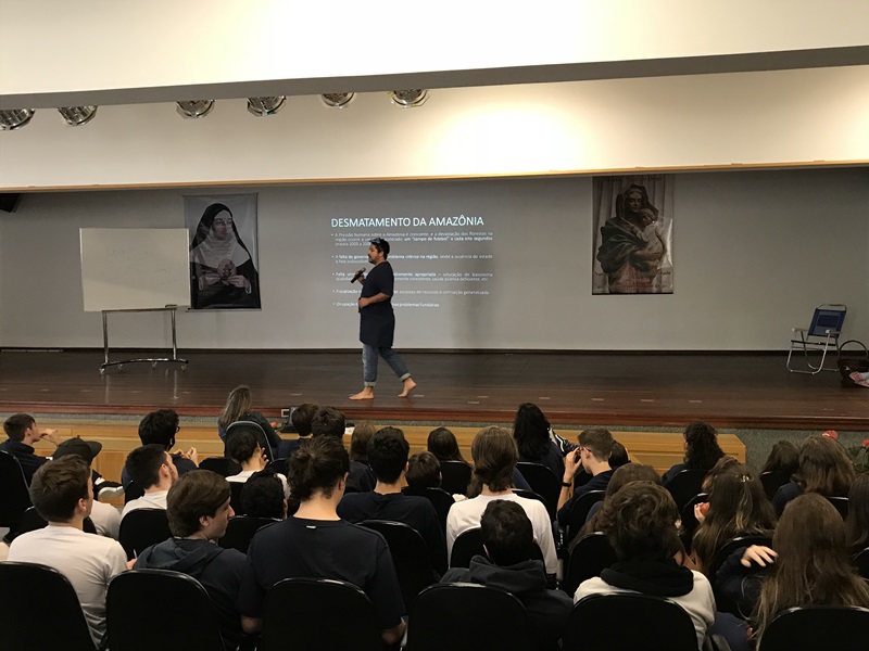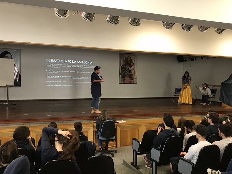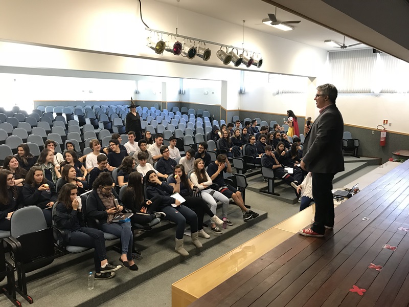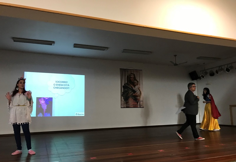 Com a disposição de oferecer aos estudantes ainda mais oportunidades de construção de conhecimentos significativos para a vida, realizou-se em nossa Escola, na sexta-feira, dia 20/10, o primeiro Aulão ENEM 2017, no qual os professores Alexandre Rosa, de Geografia; Carolina Bossle, de Biologia; Betina Rubin, de Redação; Andressa Geiser, de Matemática; e Alexandre Martins, de Língua Portuguesa, revisitaram habilidades e competências previamente desenvolvidas a fim de associar os conteúdos das diversas áreas do conhecimento requeridos nas provas do Exame Nacional do Ensino Médio.