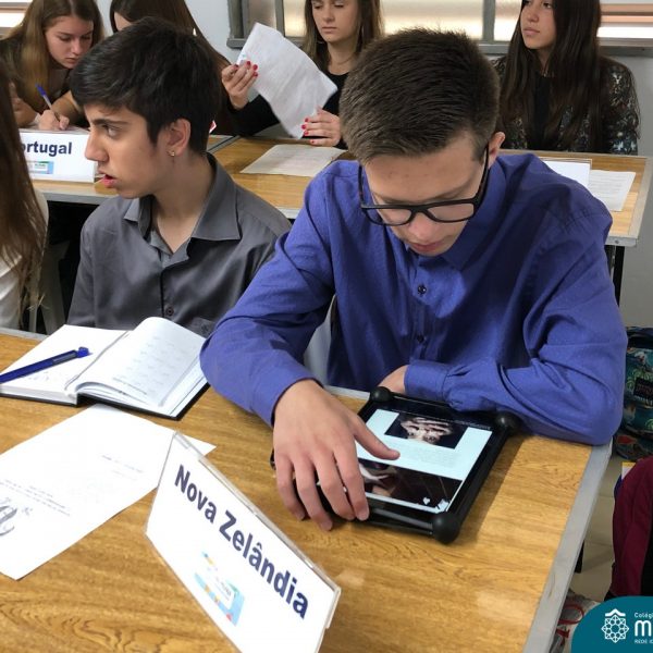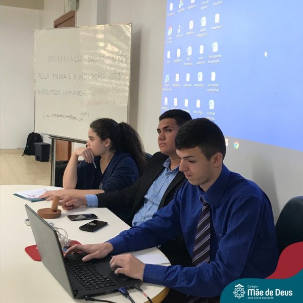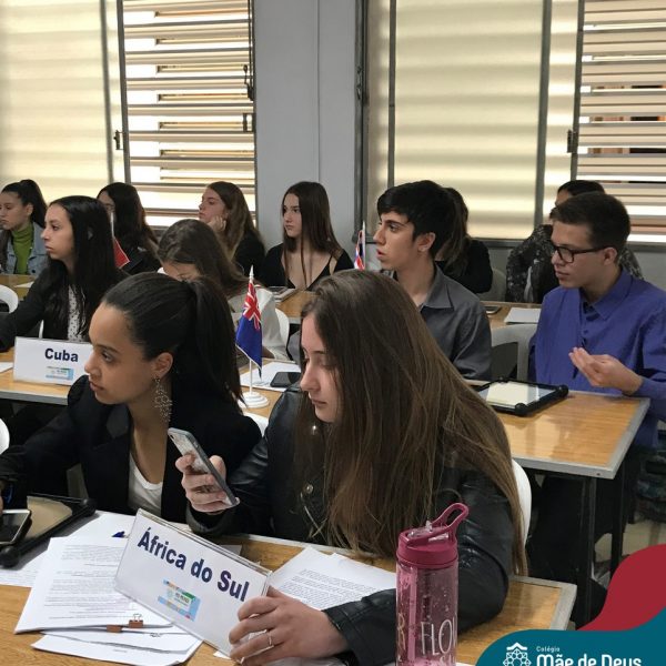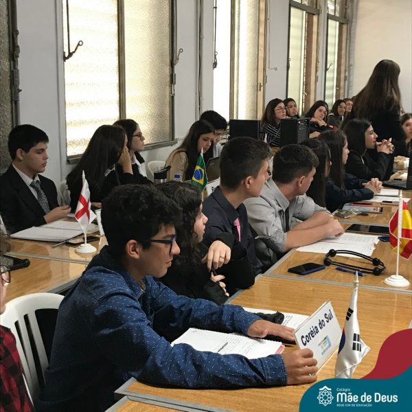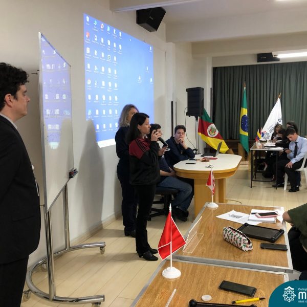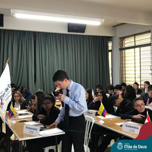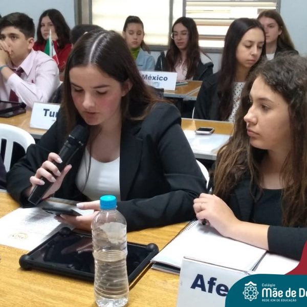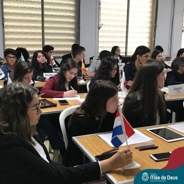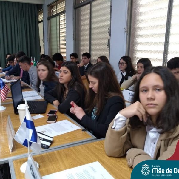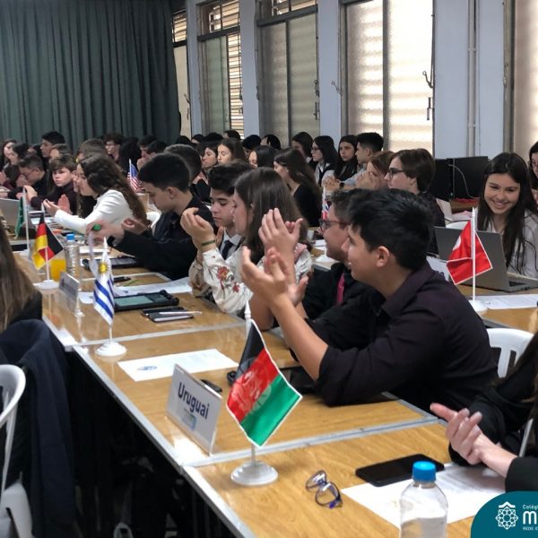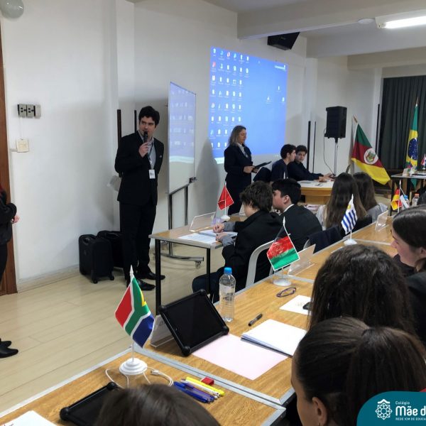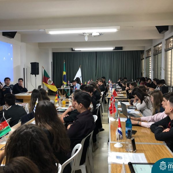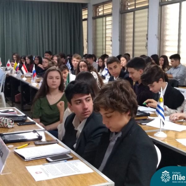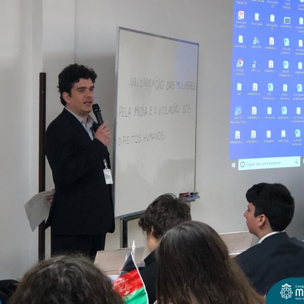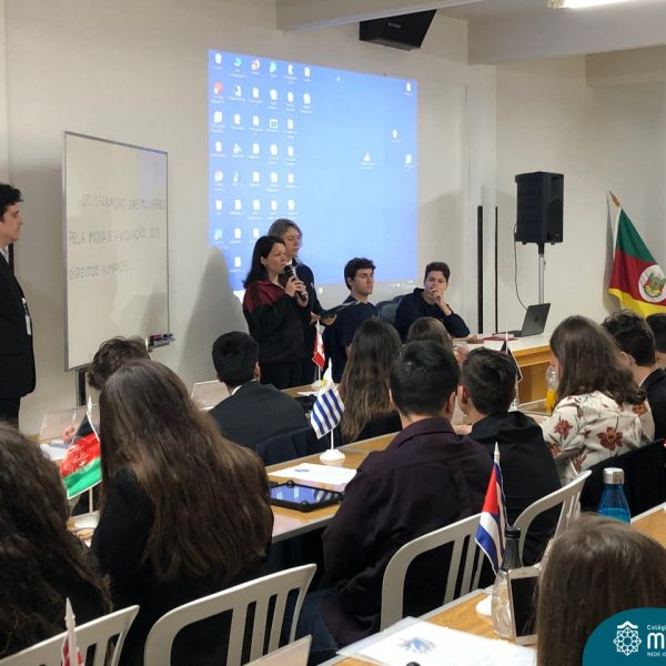 No dia 23 de outubro aconteceu o Primeiro MD MUNDI TEENAGER – Conferências Internacionais. Neste ano simulando o Comitê ONU MULHERES que discutiu a temática “A objetificação das Mulheres pela mídia e a violação dos direitos básicos.” Os alunos do 9º e do 8º ano tiveram a oportunidade de uma imersão no estudo e de serem protagonistas na proposição de alternativas de enfrentamento as problemáticas apresentadas com a orientação dos professores, Henry Juchem e Alexandre dos Santos Rosa, assessorados pelos alunos do NEA RI, e apoiados pelos demais professores, pela direção e pelos serviços de nosso Colégio.