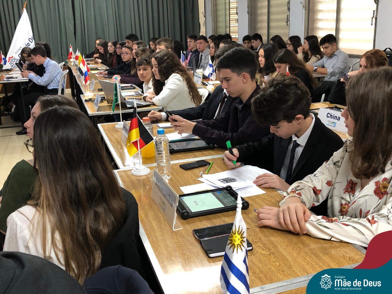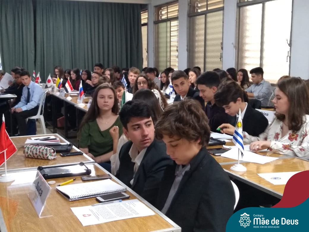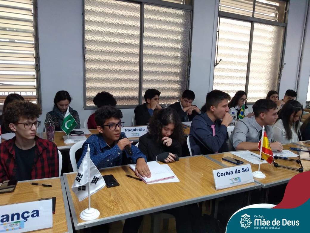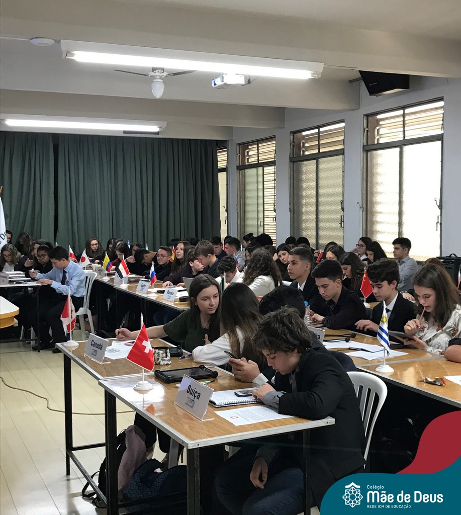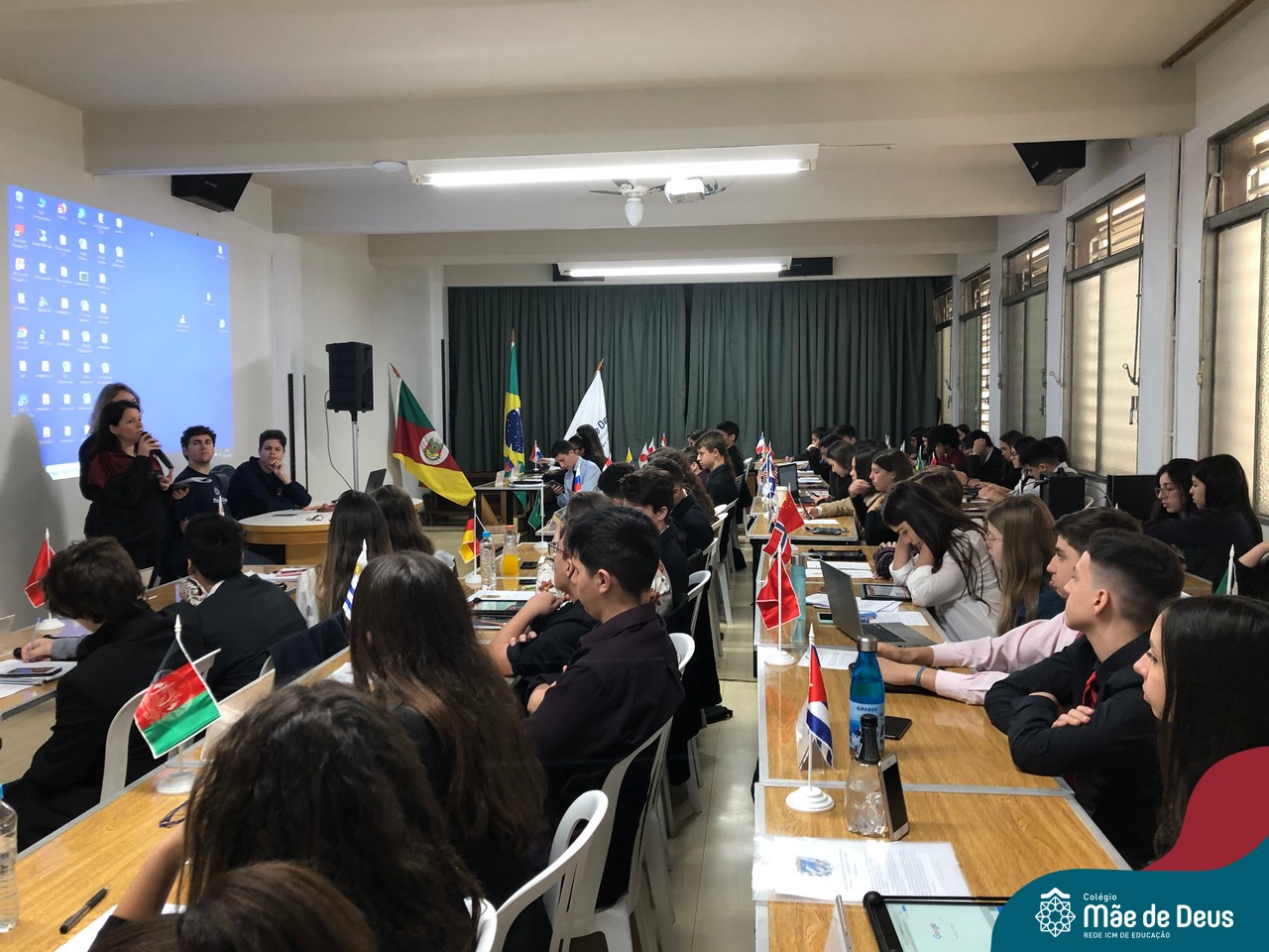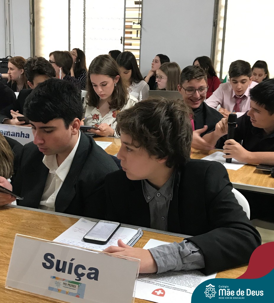No dia 23 de outubro aconteceu o Primeiro MD MUNDI TEENAGER – Conferências Internacionais. Neste ano simulando o Comitê ONU MULHERES que discutiu a temática “A objetificação das Mulheres pela mídia e a violação dos direitos básicos.” Os alunos do 9º e do 8º ano tiveram a oportunidade de uma imersão no estudo e de serem protagonistas na proposição de alternativas de enfrentamento as problemáticas apresentadas com a orientação dos professores, Henry Juchem e Alexandre dos Santos Rosa, assessorados pelos alunos do NEA RI, e apoiados pelos demais professores, pela direção e pelos serviços de nosso Colégio.