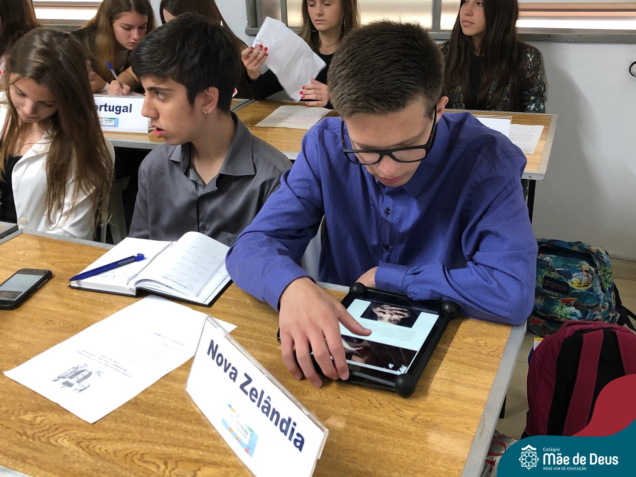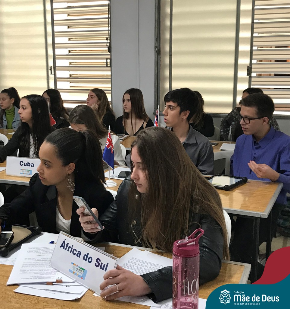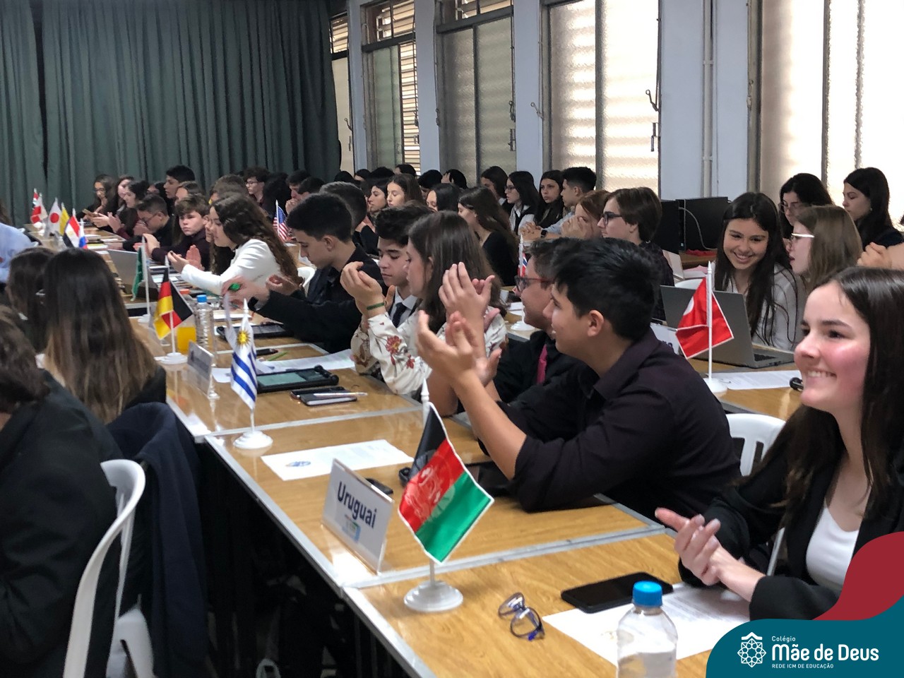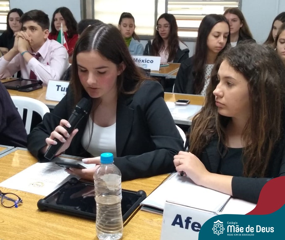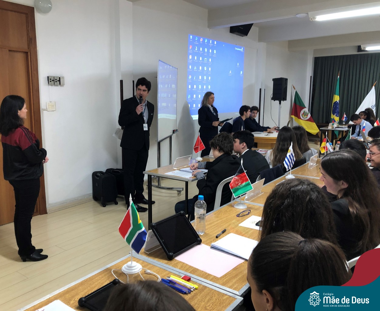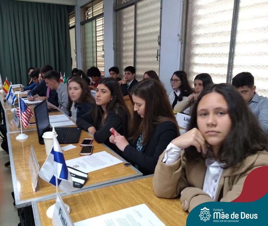 No dia 23 de outubro aconteceu o Primeiro MD MUNDI TEENAGER – Conferências Internacionais. Neste ano simulando o Comitê ONU MULHERES que discutiu a temática “A objetificação das Mulheres pela mídia e a violação dos direitos básicos.” Os alunos do 9º e do 8º ano tiveram a oportunidade de uma imersão no estudo e de serem protagonistas na proposição de alternativas de enfrentamento as problemáticas apresentadas com a orientação dos professores, Henry Juchem e Alexandre dos Santos Rosa, assessorados pelos alunos do NEA RI, e apoiados pelos demais professores, pela direção e pelos serviços de nosso Colégio.