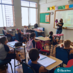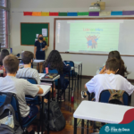 Os estudantes do 1º ao 5º ano, tiveram uma aula de forma lúdica, divertida, com recursos de vídeos e fantoches.