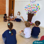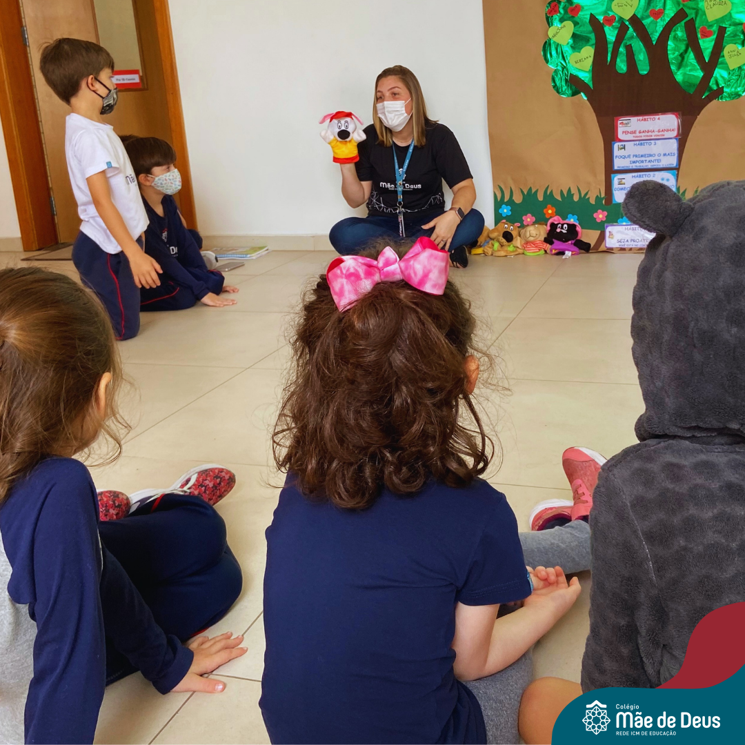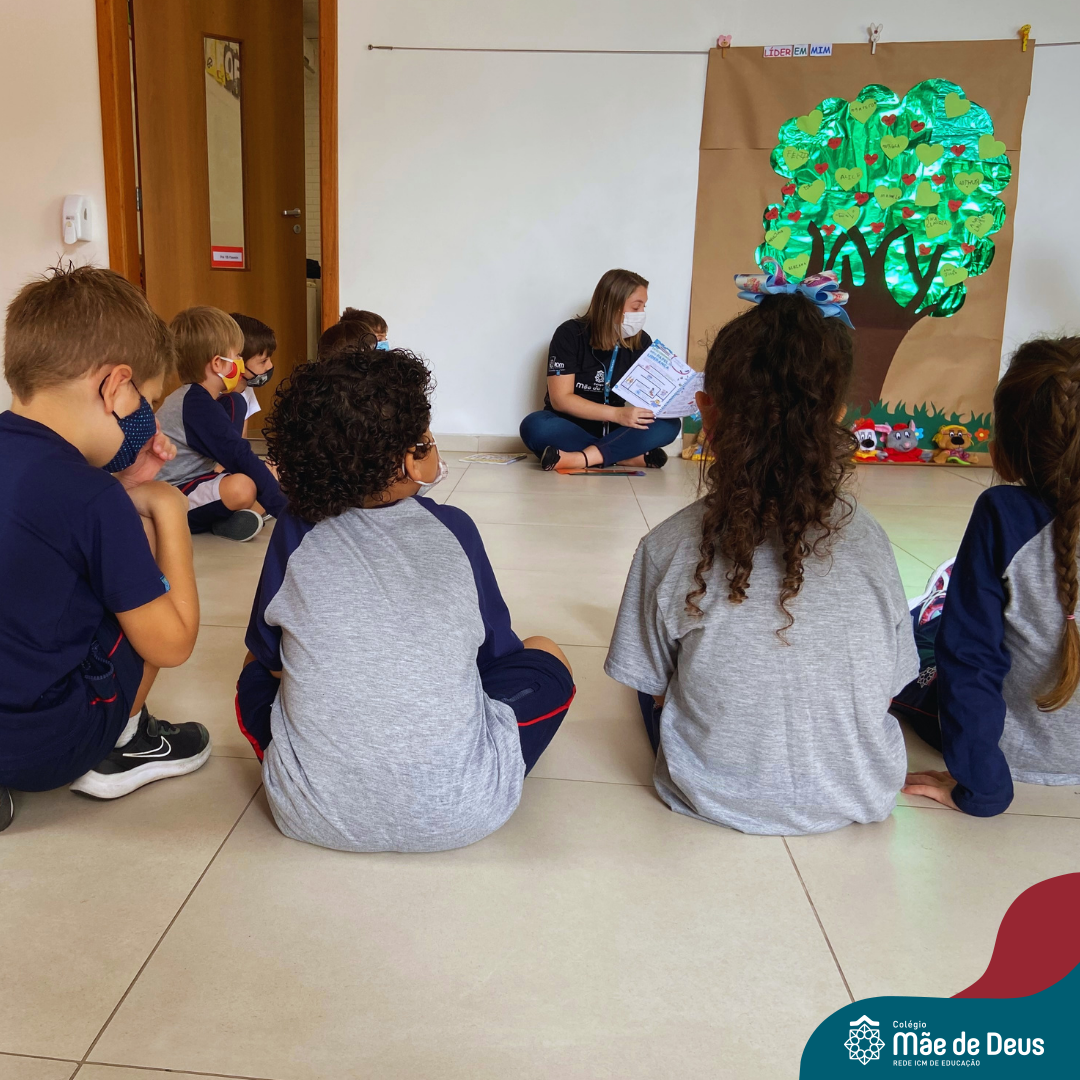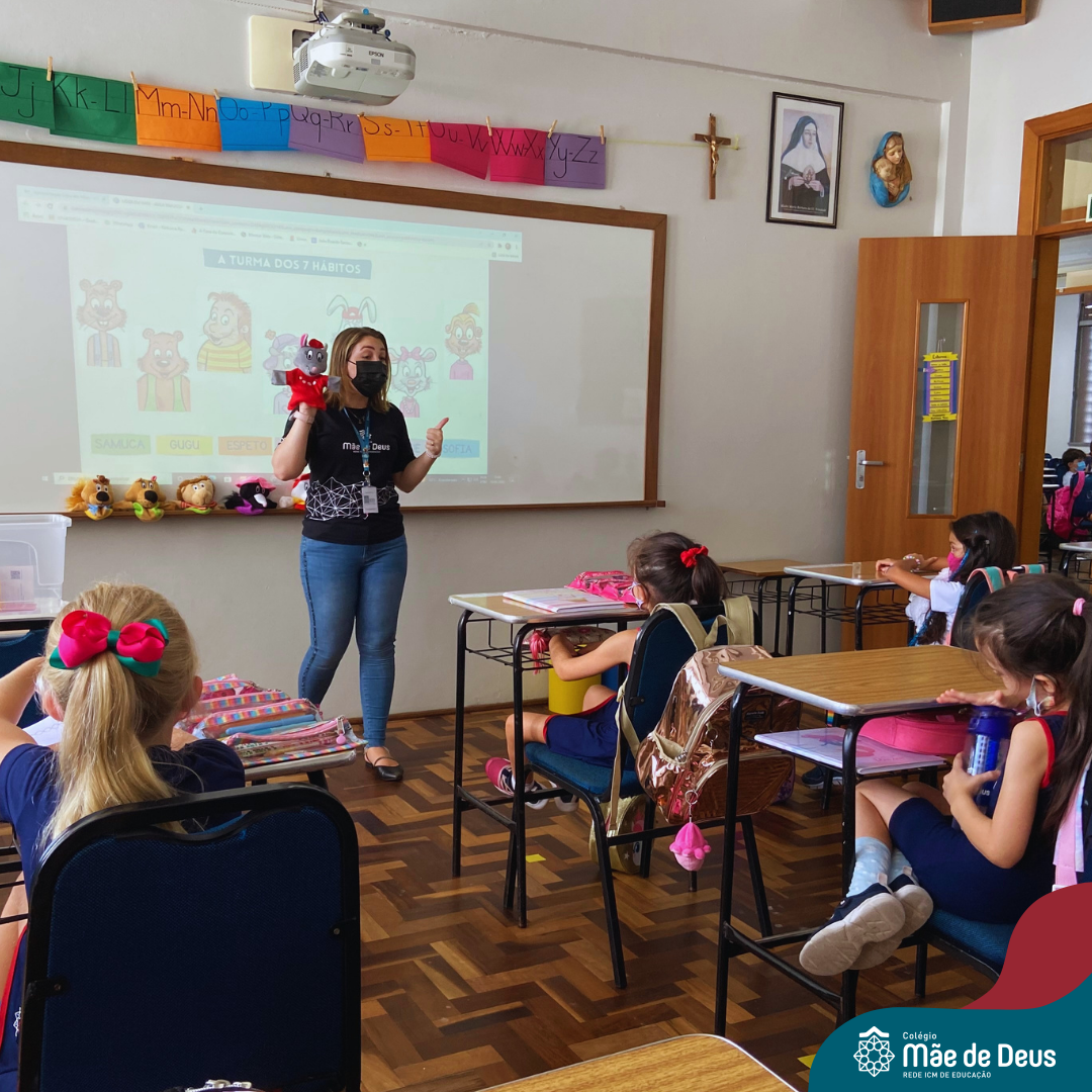Já os alunos do Pré, conheceram a Turminha dos 7 Hábitos através dos fantoches e construíram a árvore da turma com os novos hábitos, que será utilizada como ferramenta para o trabalho desenvolvido semanalmente.