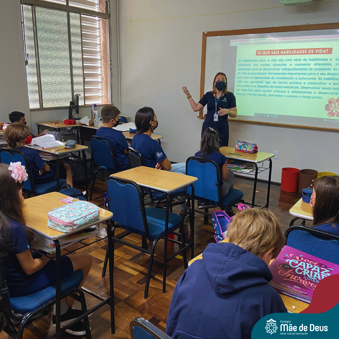 Com os alunos do 6º ao 8º ano foi realizado uma dinâmica da construção do painel das Habilidades de Vida. Desenvolver estas habilidades é um exercício para ajudar os adolescentes a construírem bons hábitos.