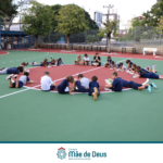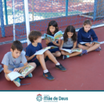 Além disso, os alunos puderam desfrutar dos espaços externos do Colégio, acompanhados de colegas e professoras para realizarem o primeiro contato com a obra.