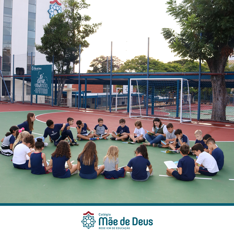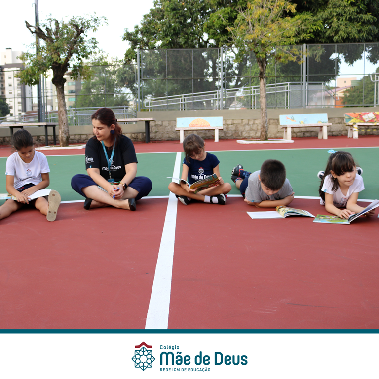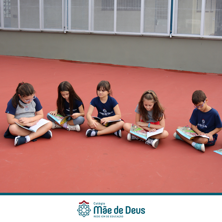 Além disso, os alunos puderam desfrutar dos espaços externos do Colégio, acompanhados de colegas e professoras para realizarem o primeiro contato com a obra.