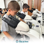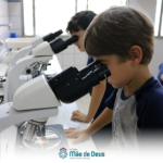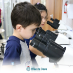 Para tirar essas dúvidas, os alunos realizaram a leitura complementar do livro “Tudo começa na semente”. Após isso, foram ao laboratório de Ciências observarem diferentes sementes, percebendo as diferenças entre olhá-las a olho nu e no microscópio.
