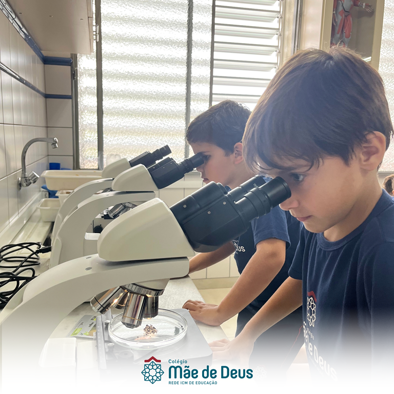 Para tirar essas dúvidas, os alunos realizaram a leitura complementar do livro “Tudo começa na semente”. Após isso, foram ao laboratório de Ciências observarem diferentes sementes, percebendo as diferenças entre olhá-las a olho nu e no microscópio.