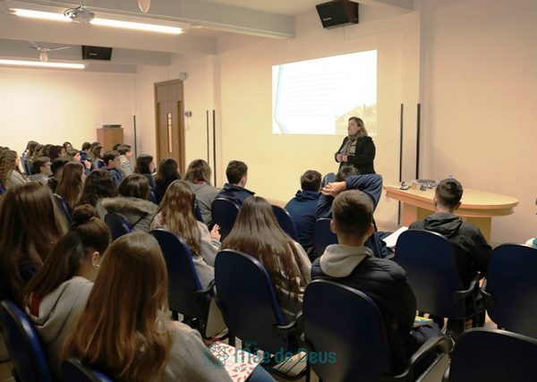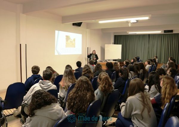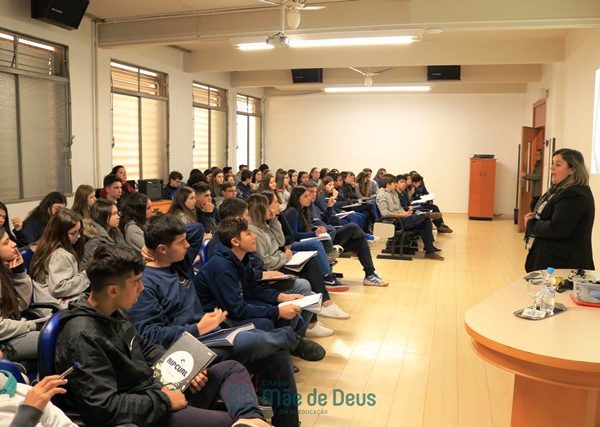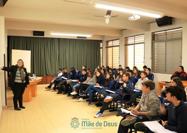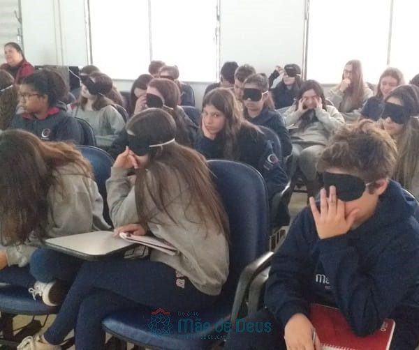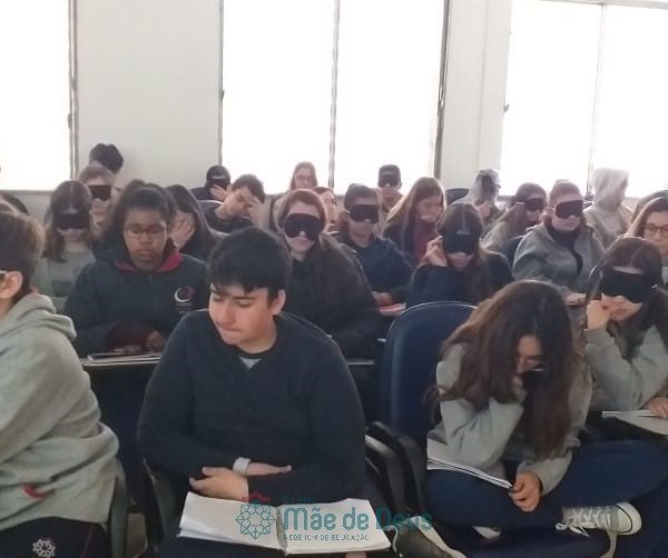 No dia 04 de setembro, em mais uma etapa do Projeto “Linguagens a muitas mãos”, os alunos do 9º ano, juntamente com a professora Letícia Gross, participaram de uma conversa com a professora Ozélia Vassoler sobre Braille. Os alunos puderam, de forma lúdica, compreender mais sobre a deficiência visual, simulando situações reais enfrentadas cotidianamente, bem como sobre a transcrição da Língua Portuguesa para o Braille.