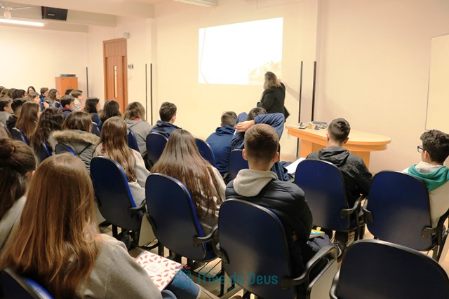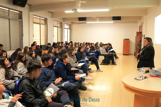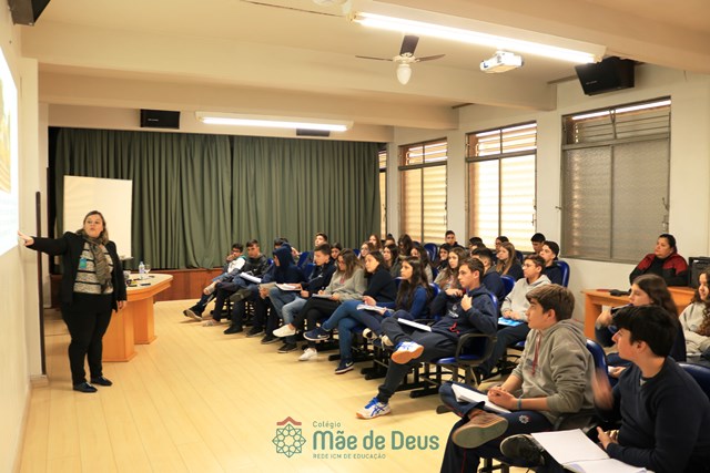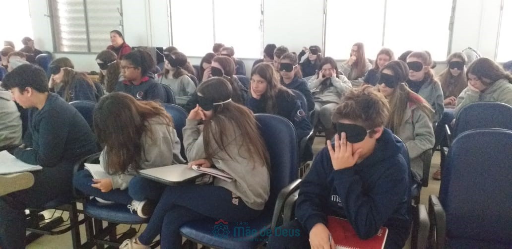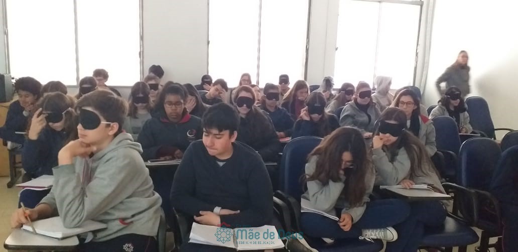 No dia 04 de setembro, em mais uma etapa do Projeto “Linguagens a muitas mãos”, os alunos do 9º ano, juntamente com a professora Letícia Gross, participaram de uma conversa com a professora Ozélia Vassoler sobre Braille. Os alunos puderam, de forma lúdica, compreender mais sobre a deficiência visual, simulando situações reais enfrentadas cotidianamente, bem como sobre a transcrição da Língua Portuguesa para o Braille.
