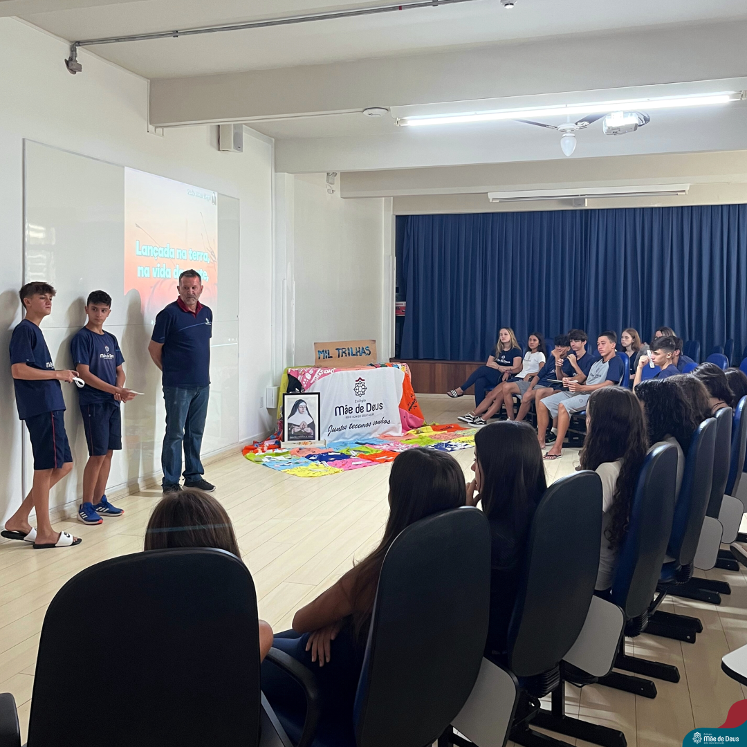 No dia 13 de março, foi realizada a abertura do Projeto Mil Trilhas, com as turmas do 9º Ano do Ensino Fundamental. Este projeto visa desenvolver um processo de autoconhecimento dos estudantes, a partir do conhecimento do outro e de contextos diversificados.